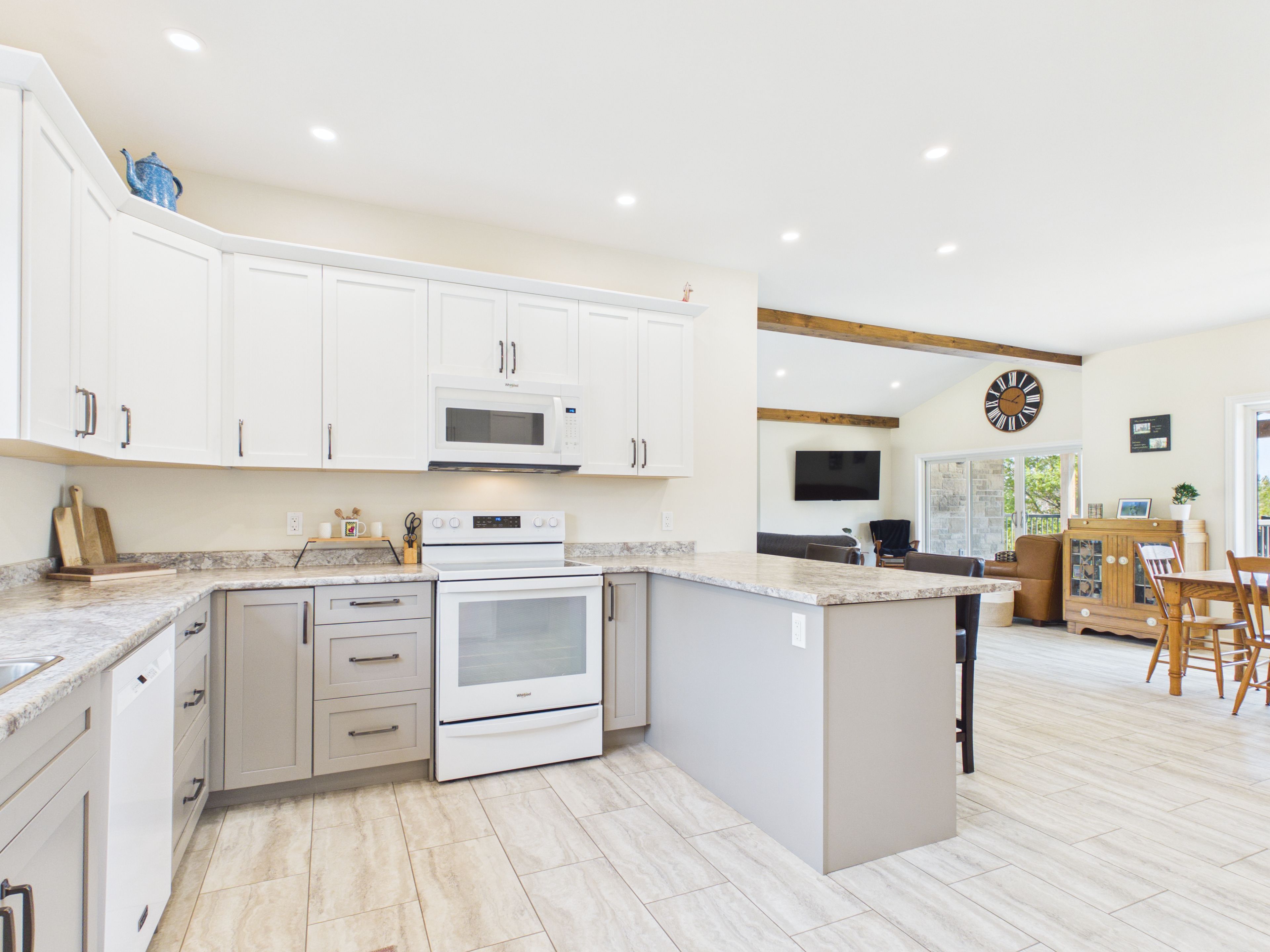 • Lower level features a second kitchen, perfect for in-law accommodations.