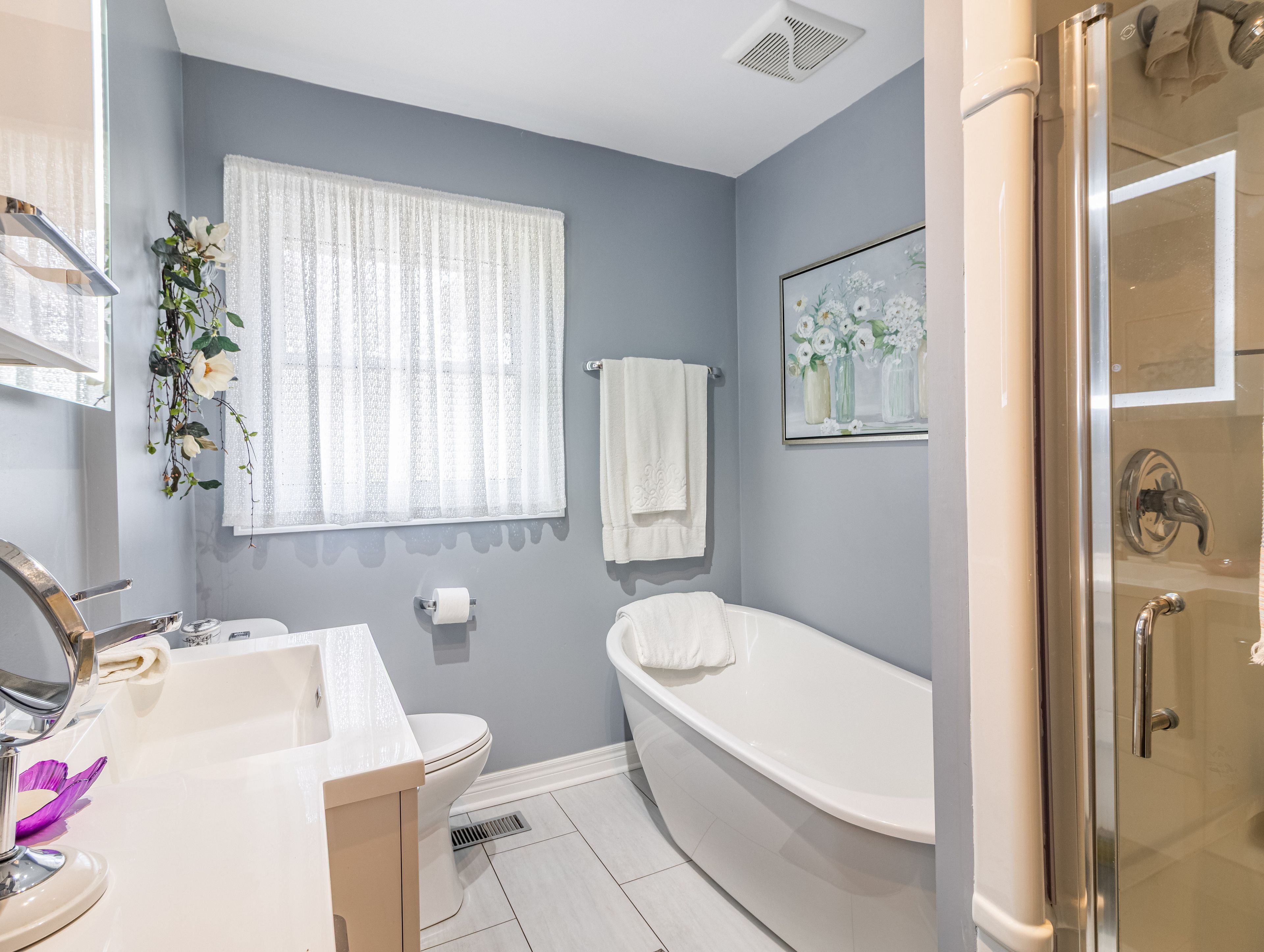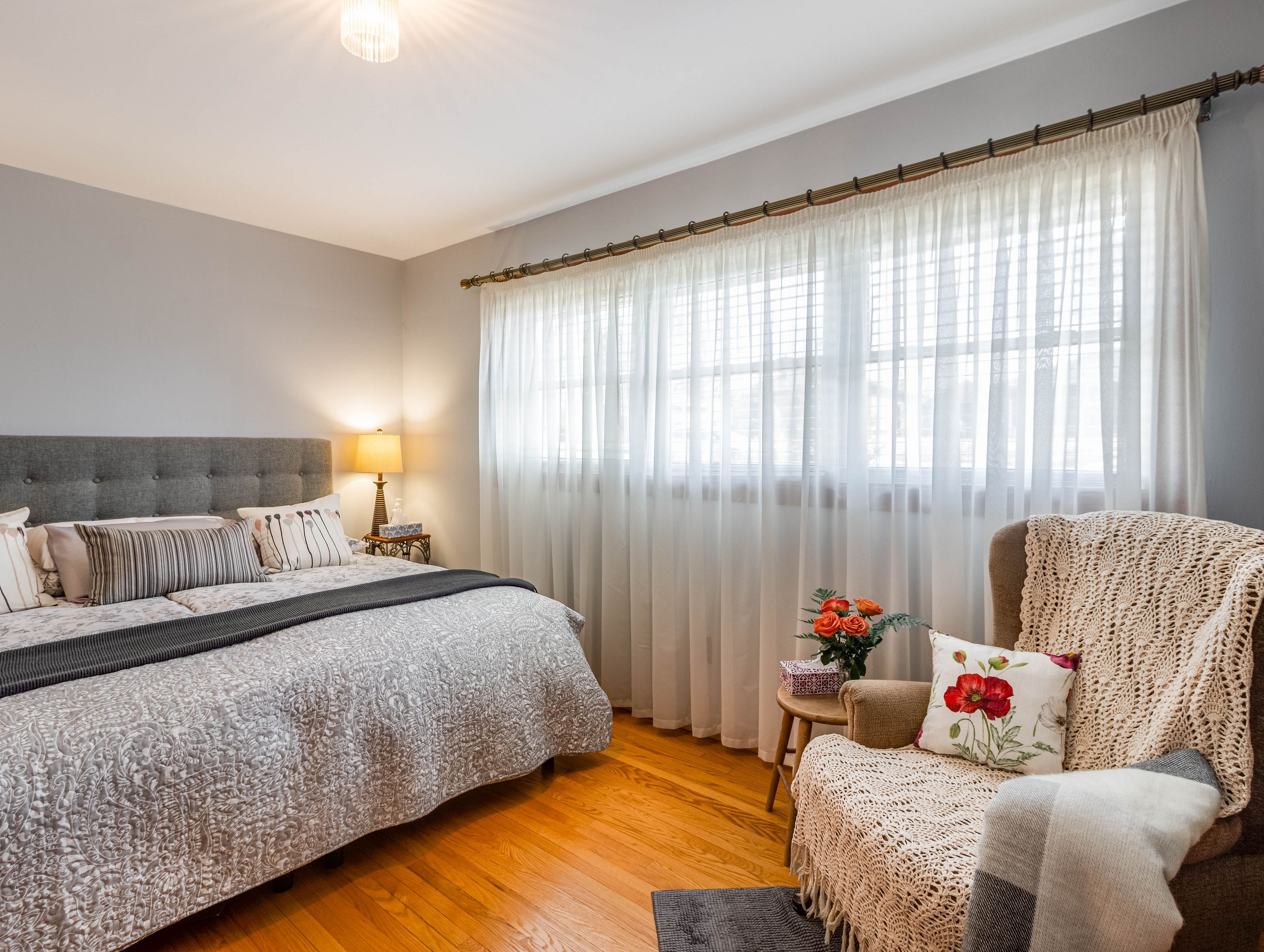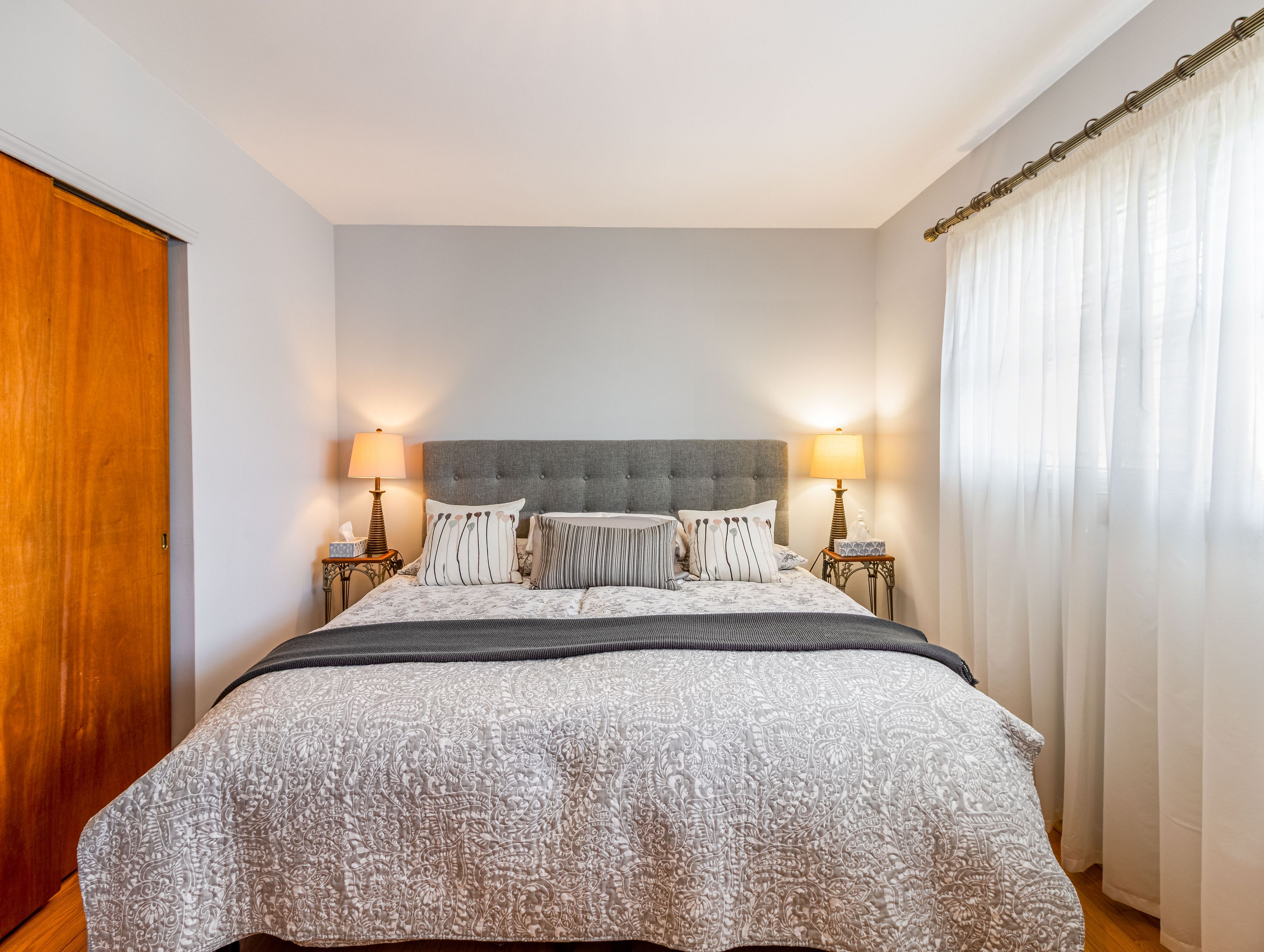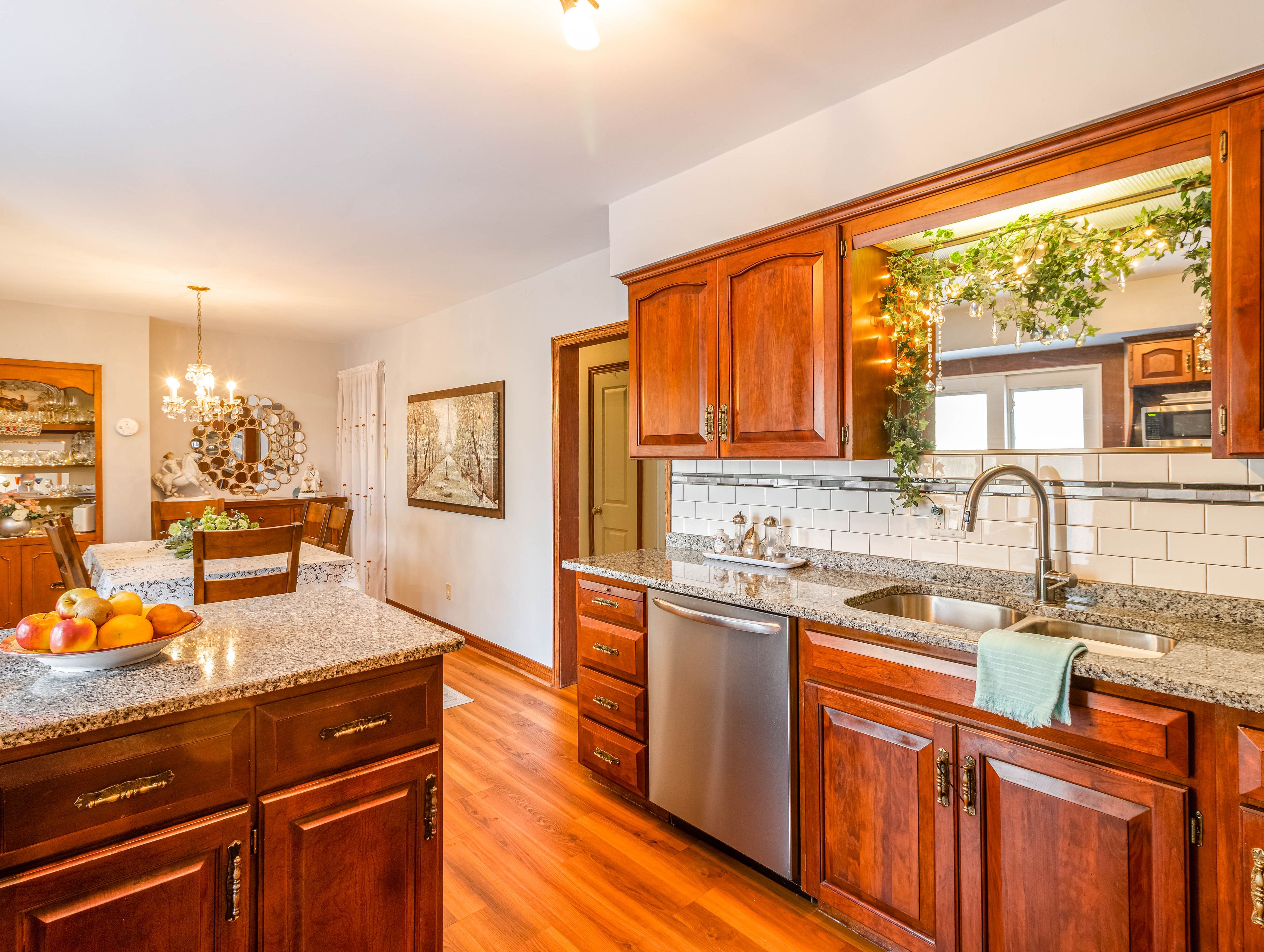 • Updated kitchen features modern finishes, granite counters, and stainless steel appliances.