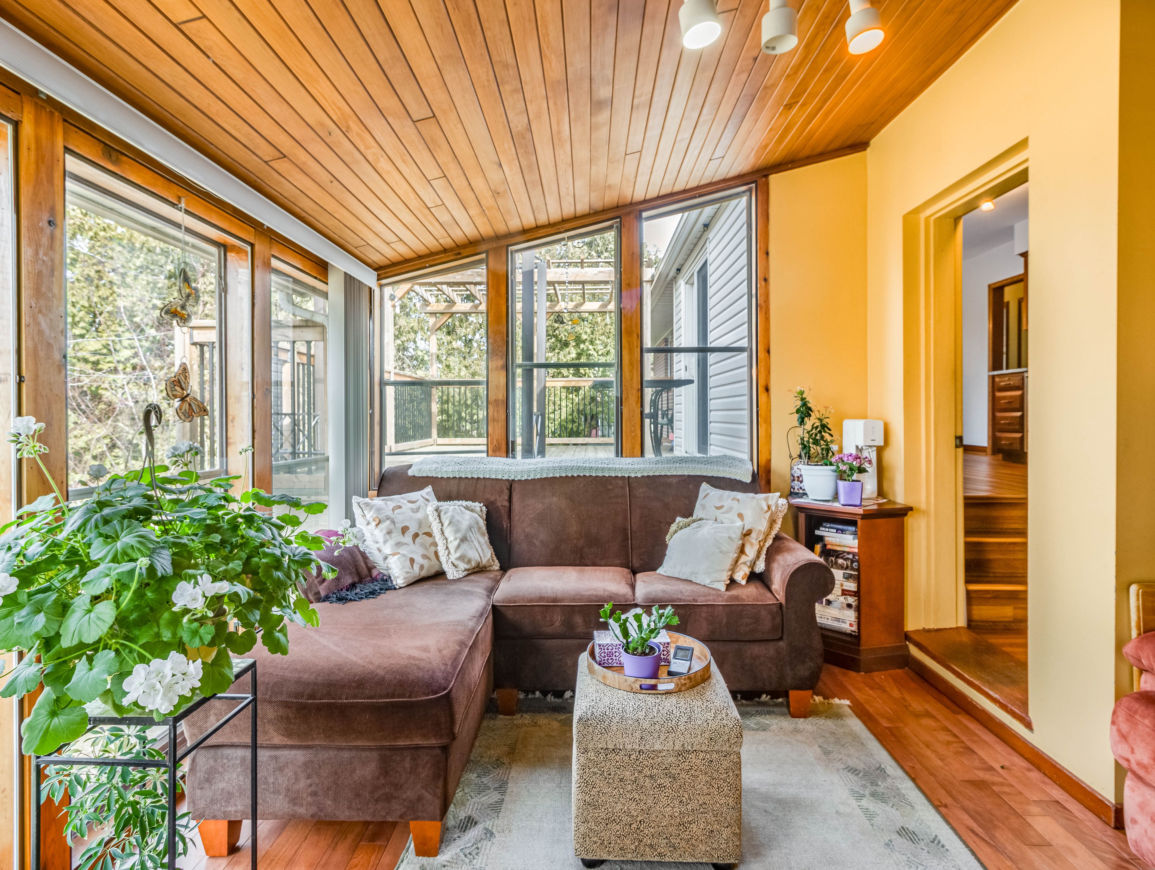 Find your comfort here with 2+1 bedrooms, 2 bathrooms an in-law suite with a walk-out, thoughtful updates and a serene view in your backyard! 2 spacious bedrooms on the main level with the primary having the ability to fit a king size bedroom suite, across the hall is another good sized second bedroom with a deep closet. The updated modern main floor bath has a separate tub, shower and floating vanity for easy clean up. Bright, spacious, updated kitchen with some modern finishes, such as the island, modern backsplash, granite counter tops and stainless steel appliances. Making your way out to your large large deck with built in gazebo makes for a great entertaining space or those relaxing moments. The main living-room has a cozy functional wood fireplace with an electric insert adds charm to this space. In the sunroom just off the kitchen, a cozy sitting area with a gas fireplace is wrapped almost entirely in windows, this bright, private retreat offers a front-row seat to nature, as well as the peaceful greenspace that extends beyond the yard making it the perfect spot to unwind and take in the view. Don't forget about the in-law-suite, that has the capability of increased ceiling height, a large bedroom that fits a king size bed easily and comes with 2 closets a well as 2 windows. In the cozy recreation room there are more windows and a convenient walk out onto a good sized deck with gas hook up for the b. B. Q. There is a 3 piece washroom and kitchen that makes this area self contained unit. Tons of storage areas, easy access to shopping, walking trails that you can access right from your backyard and so much more. Central air/furnace are 3 years old, h. W. T. And water softener owned, water treatment, 50 year shingles, insulated shed with electric, upper deck approx. 4 years old.