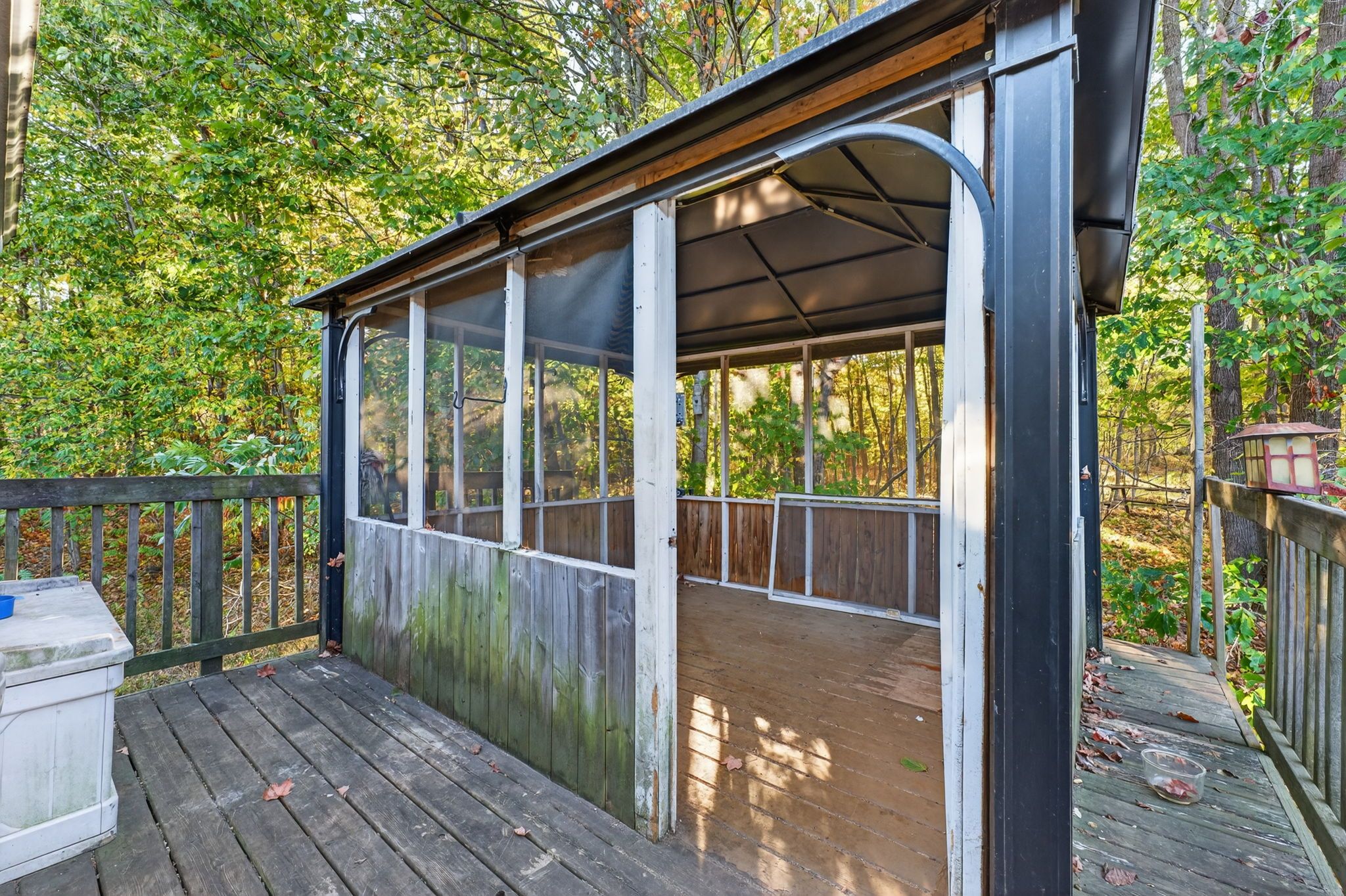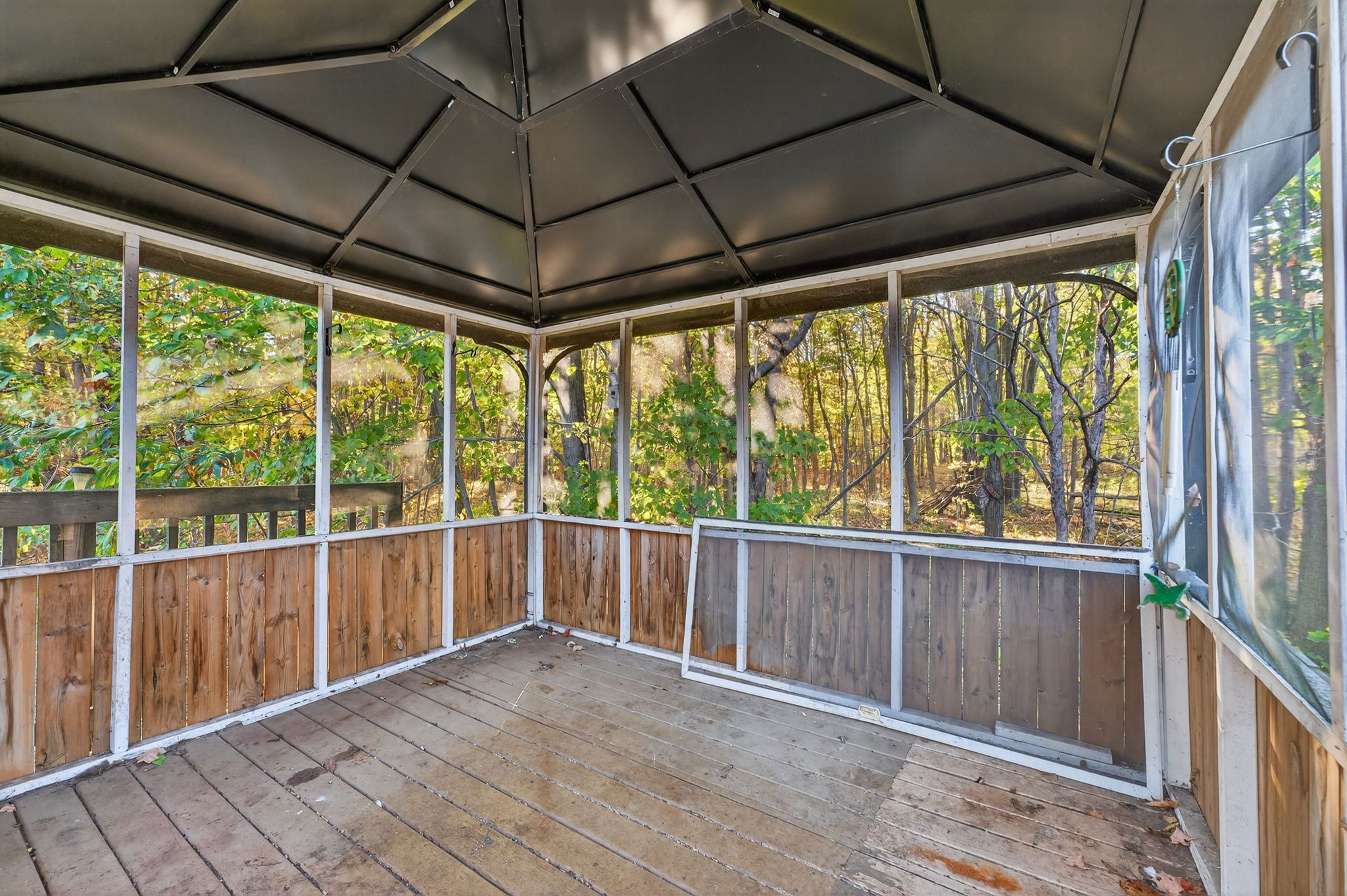• Large back deck and screened-in gazebo for relaxation and entertainment.