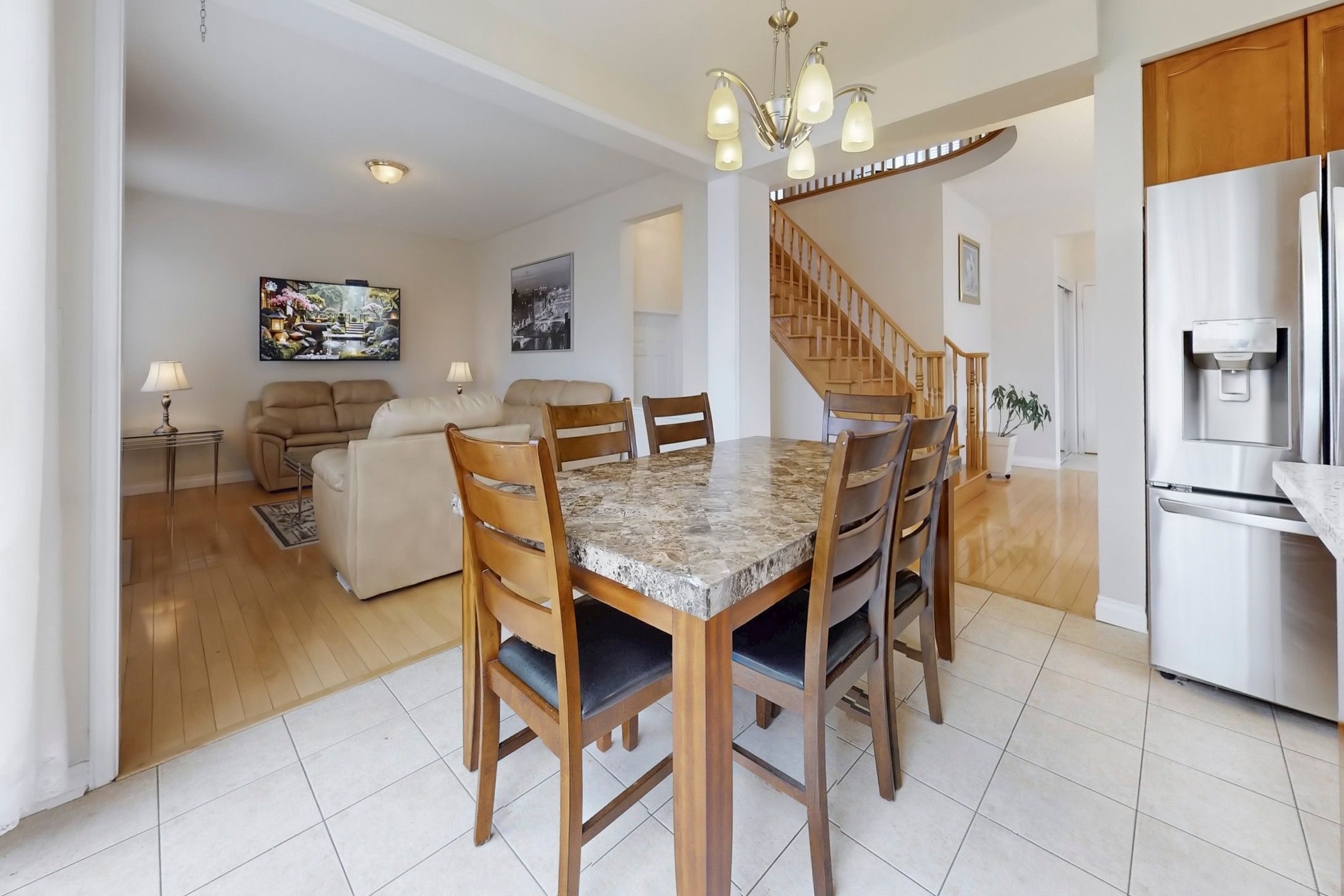 • Open concept layout with hardwood floors and 9-ft ceilings.
