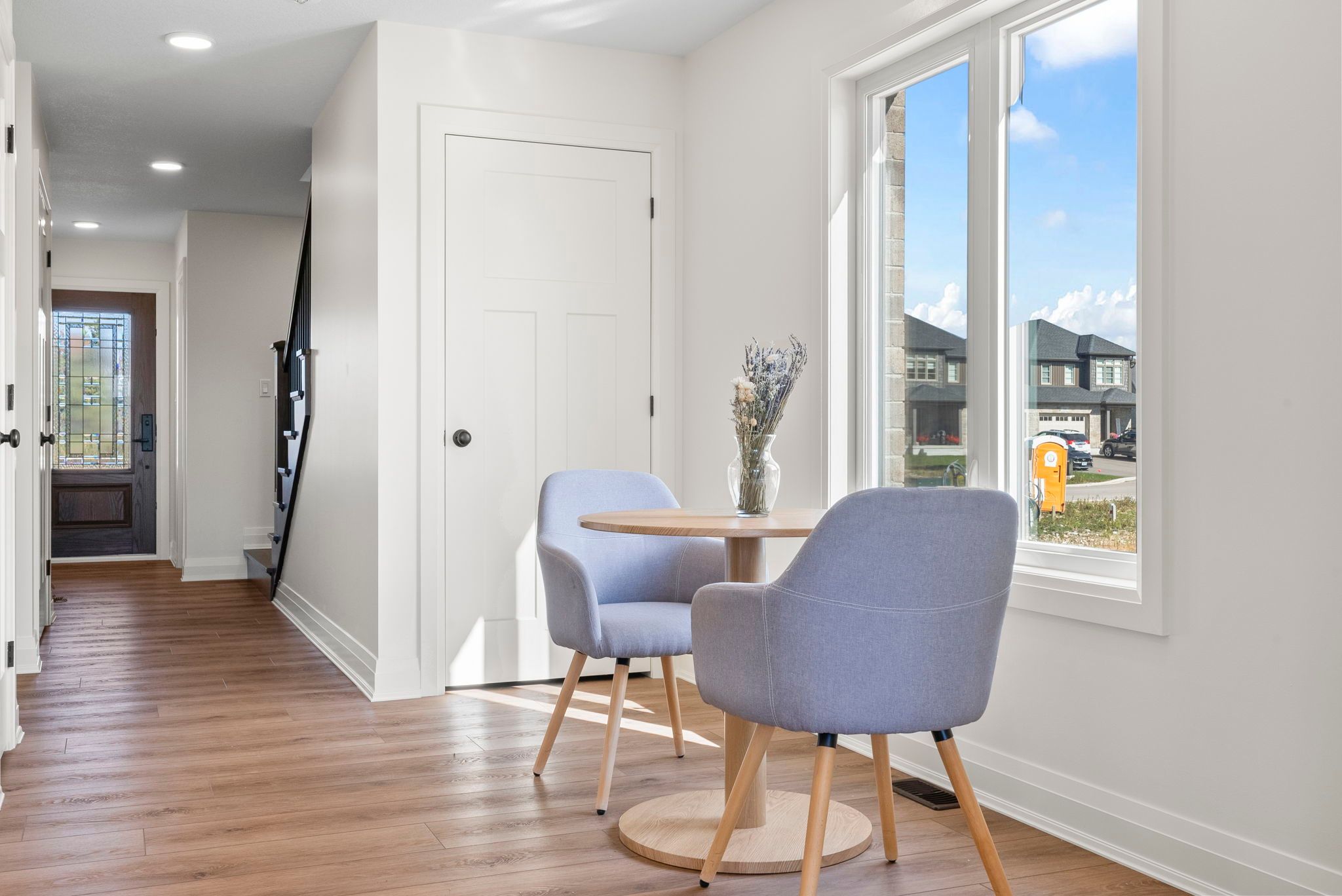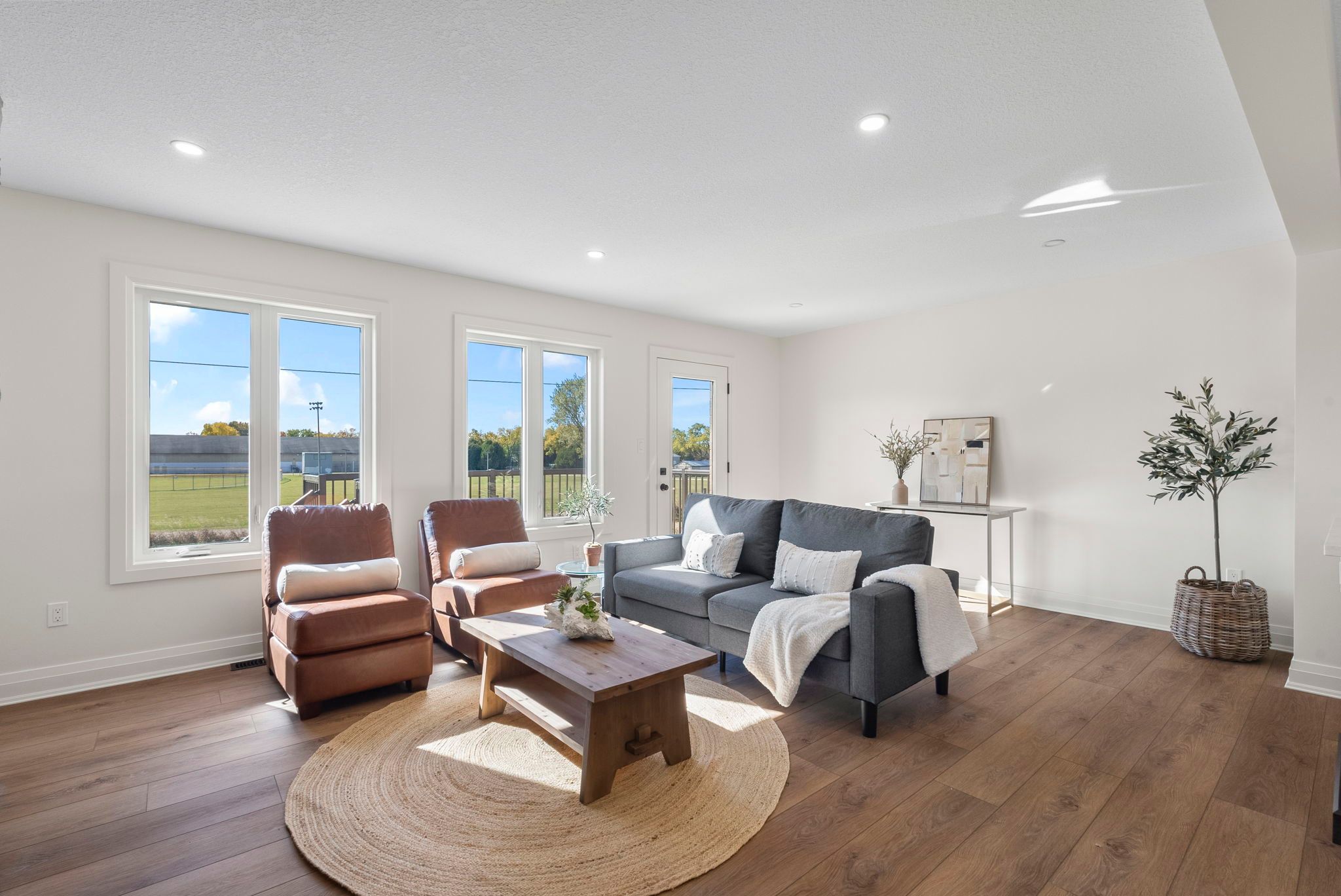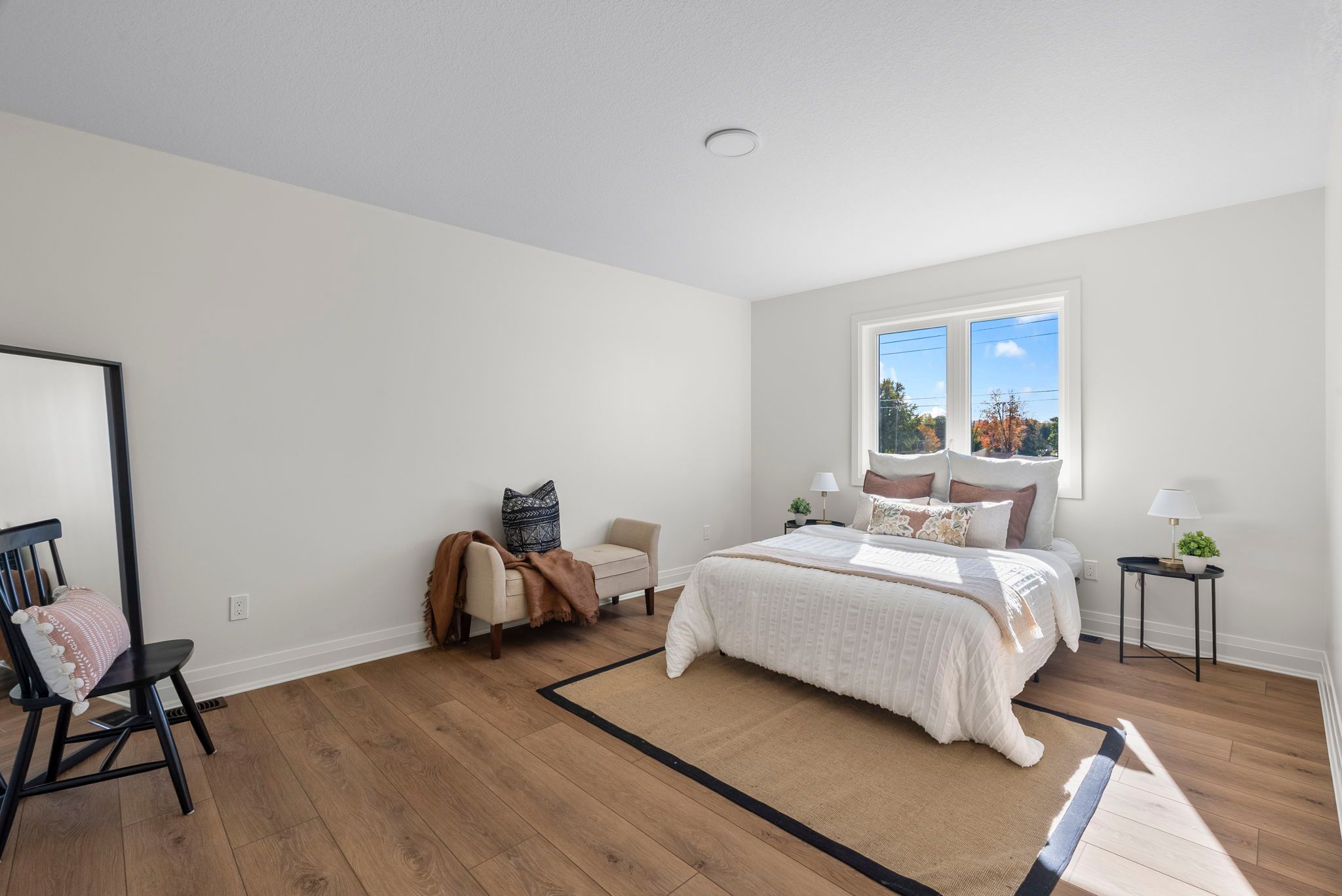 Baseball season is just around the corner, and here, the games are practically in your backyard! Tucked away on a quiet cul-de-sac in mount forest, this marlanna homes semi-detached new build offers a level of privacy that's hard to find. Connected only by the garage, which is finished in clean trusscore, you'll enjoy convenient access to both the home and backyard while still feeling nicely set apart. One of the standout features of this property is the view from the back deck, perfect for catching local ball games and soaking in those evening sunsets! Inside, the main floor is open, bright, and thoughtfully designed. A stunning stone fireplace anchors the living room, adding warmth and character. The kitchen is a true highlight, custom-built by barzotti with quartz countertops, a functional island for extra seating, with all appliances included. Luxury vinyl plank flooring runs seamlessly throughout, creating a cohesive and modern feel. Upstairs is ideal for family living, with three bedrooms and a dedicated laundry room, which means no more hauling baskets up and down stairs! The primary suite offers a peaceful retreat, complete with a walk-in closet and a deep soaker tub. Downstairs, the fully finished basement adds even more versatile living space-perfect for a rec room, home gym, or both, and includes an additional full bathroom. With immediate possession available, tarion warranty coverage, and a 50-year shingle warranty, this home is truly move-in ready. Modern comfort, quiet surroundings, and no waiting, just unpack and enjoy!