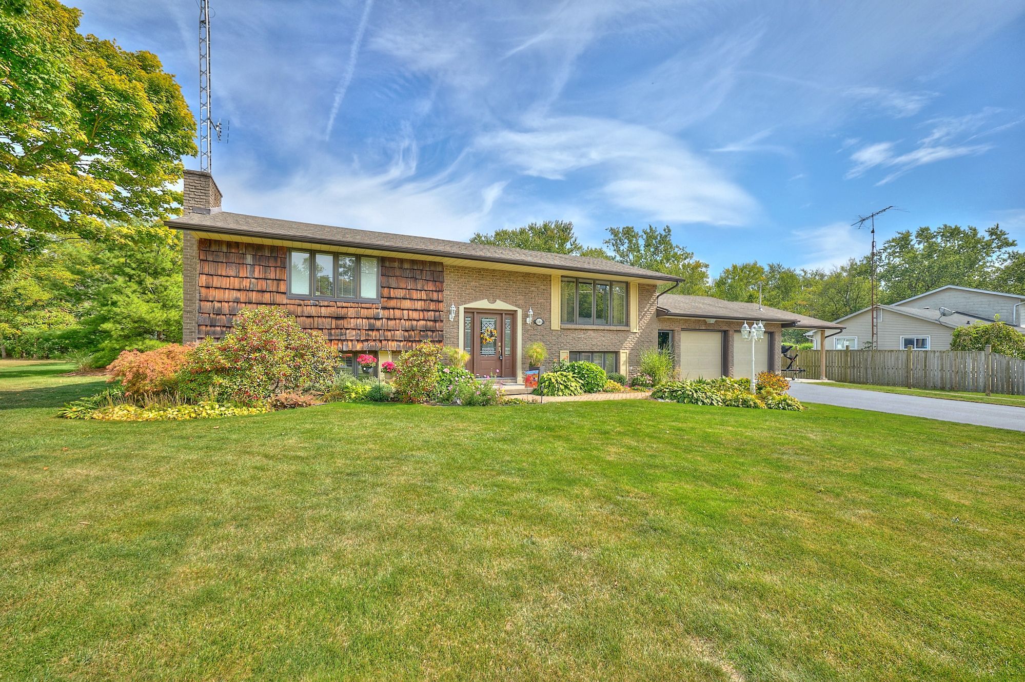 Proudly owned and meticulously maintained by the same family since the day of construction. Set on more than half an acre, this home provides privacy, well-maintained grounds, filled with perennial gardens and a lush vegetable garden. This home boasts beautiful features such as vaulted ceilings, an updated kitchen, vinyl flooring, plush carpets, updated bathroom, a hardwood staircase, and a bright three-season sunroom which overlooks the rear of the property. Enjoy deer and wildlife sightings from this adored space. For hobby enthusiasts, the property includes an attached double garage plus carport, a detached garage and shed at the rear of the property. Other noteworthy features include: basement walk-out that leads out to the garage, ample parking for vehicles, trucks, and recreational equipment, lots of closet space and storage throughout, lots of outdoor entertaining area, thoughtful interlocking walkways surround this property. Located 2 blocks from lake erie, the friendship trail, elementary schools and the new high school is around the corner, and close to shopping and restaurants, this property combines rural appeal with everyday convenience. Don't miss this opportunity to own a meticulously cared-for home in a prime location.