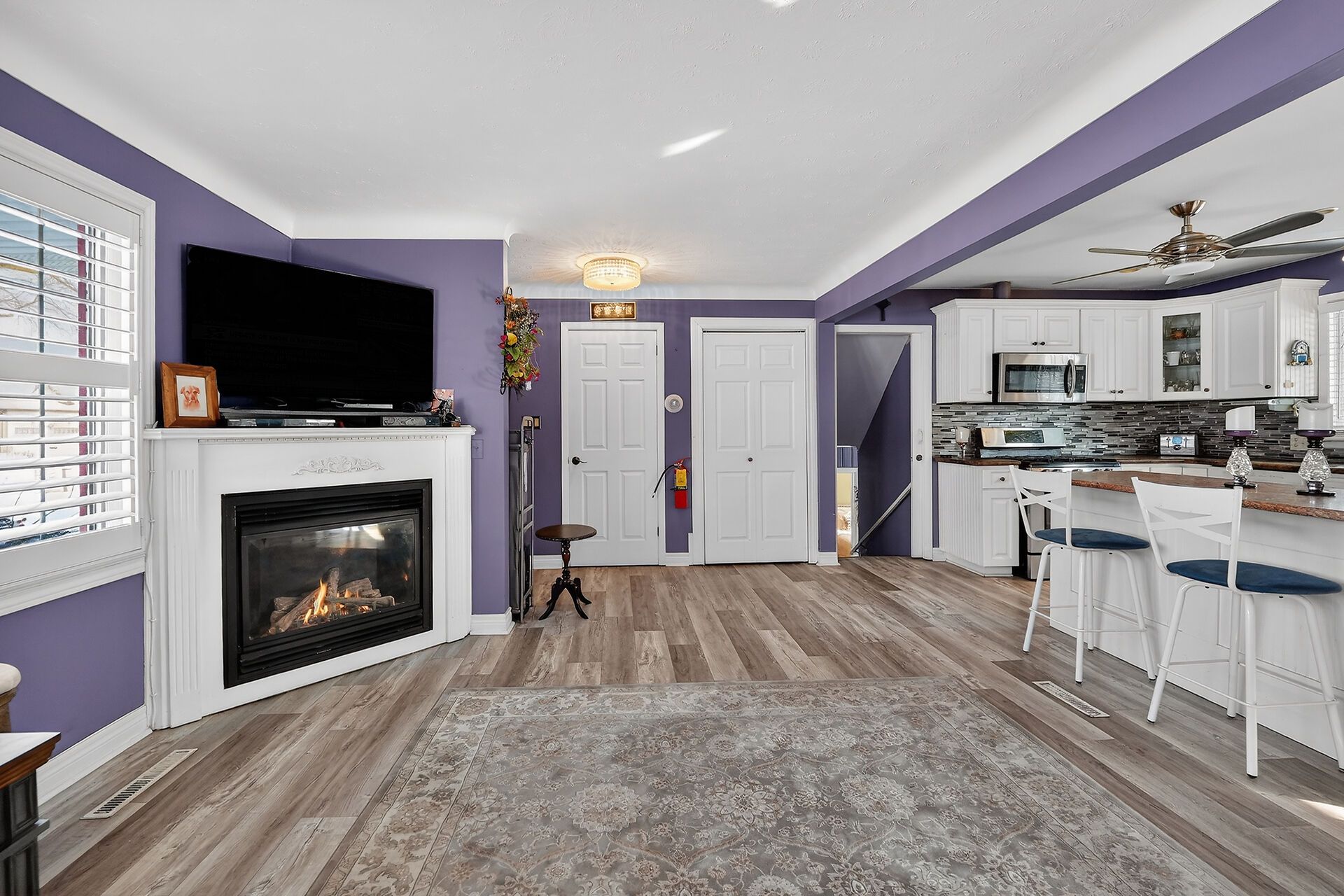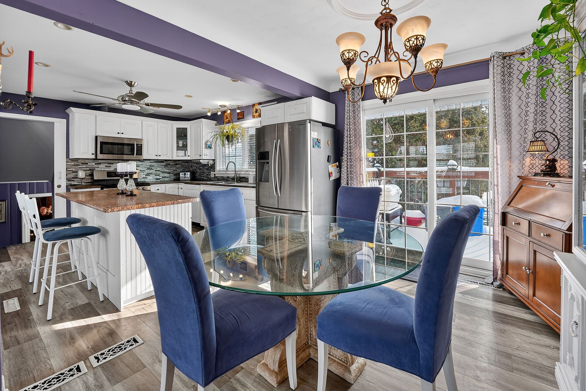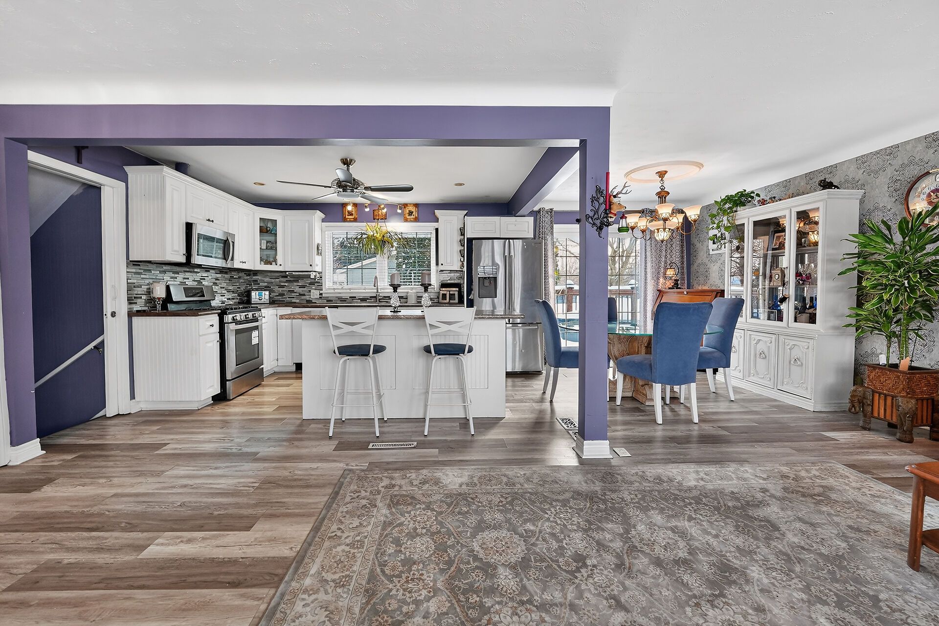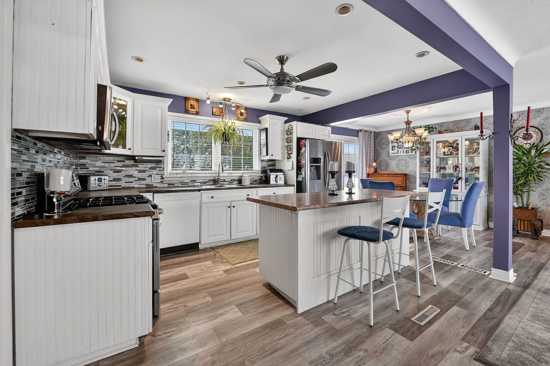 • Open concept kitchen with center island and stainless appliances for easy cooking.