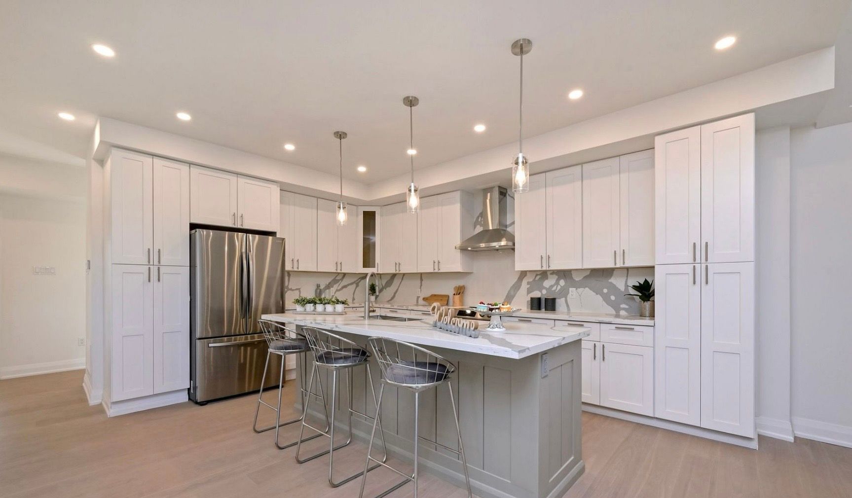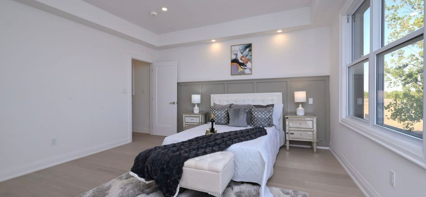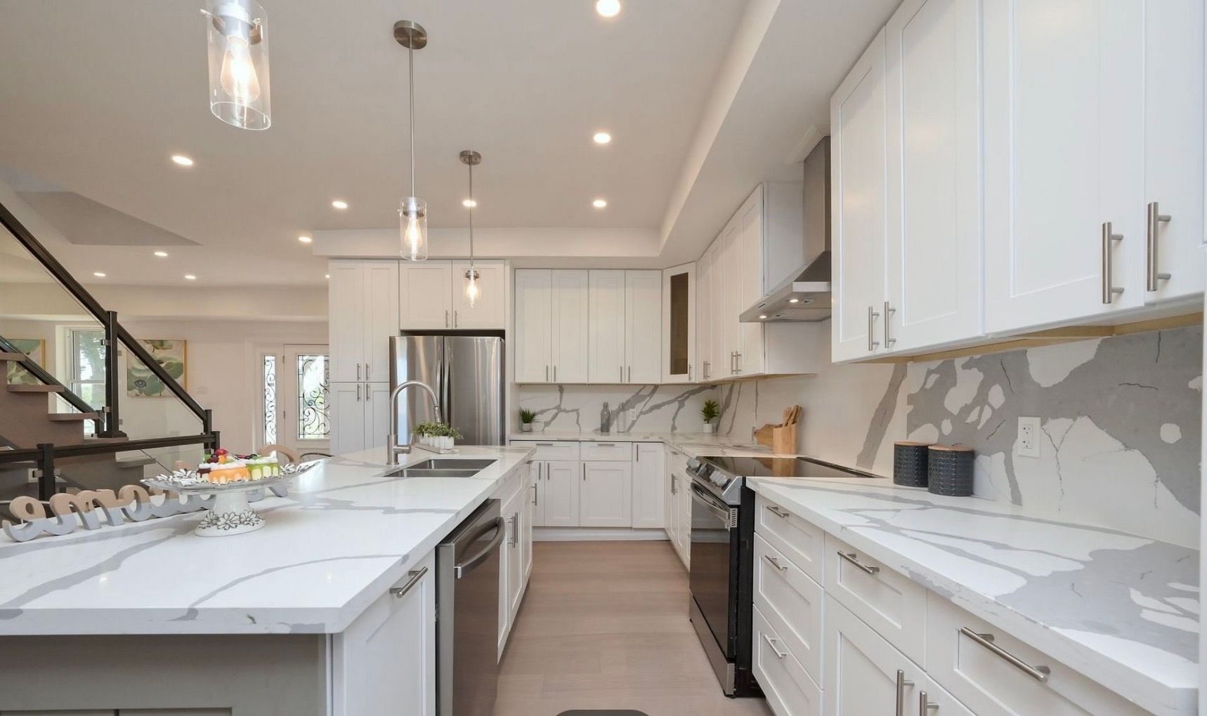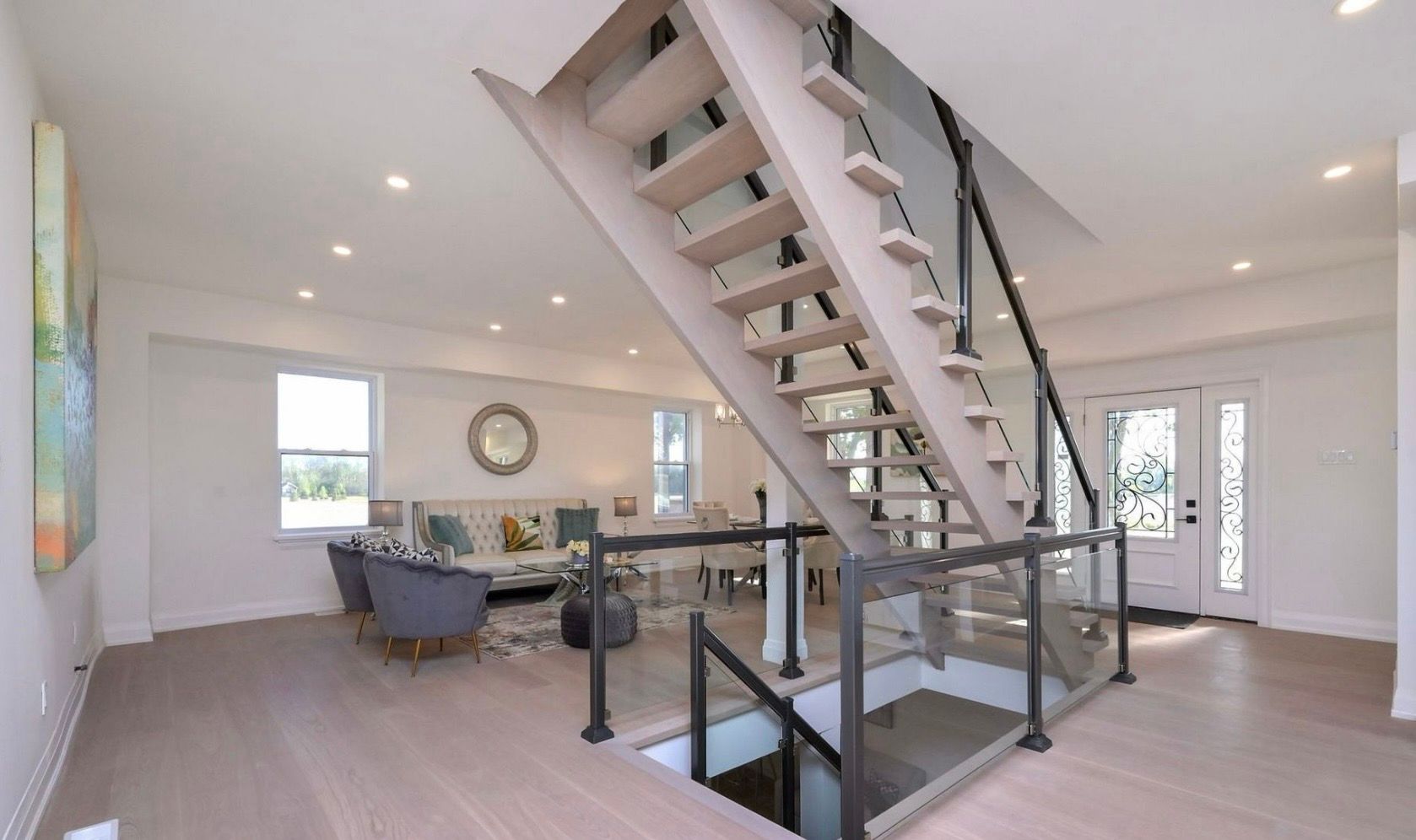 • Open-concept layout with white oak hardwood floors throughout.