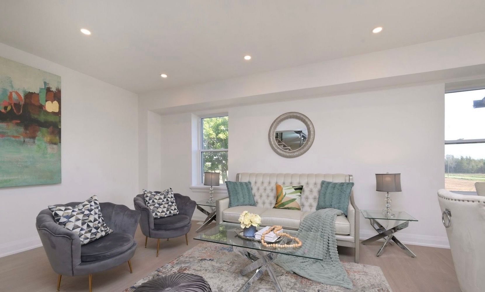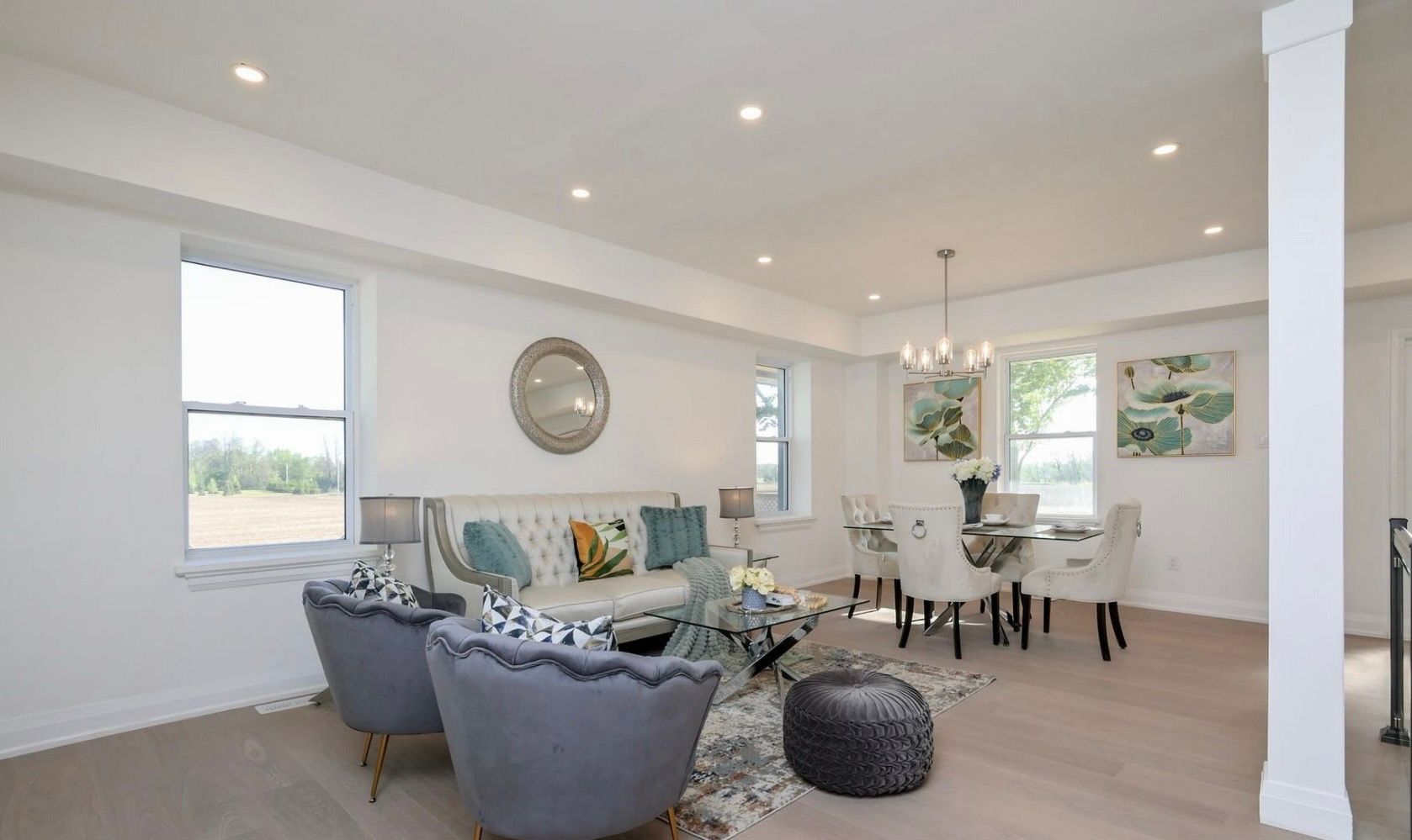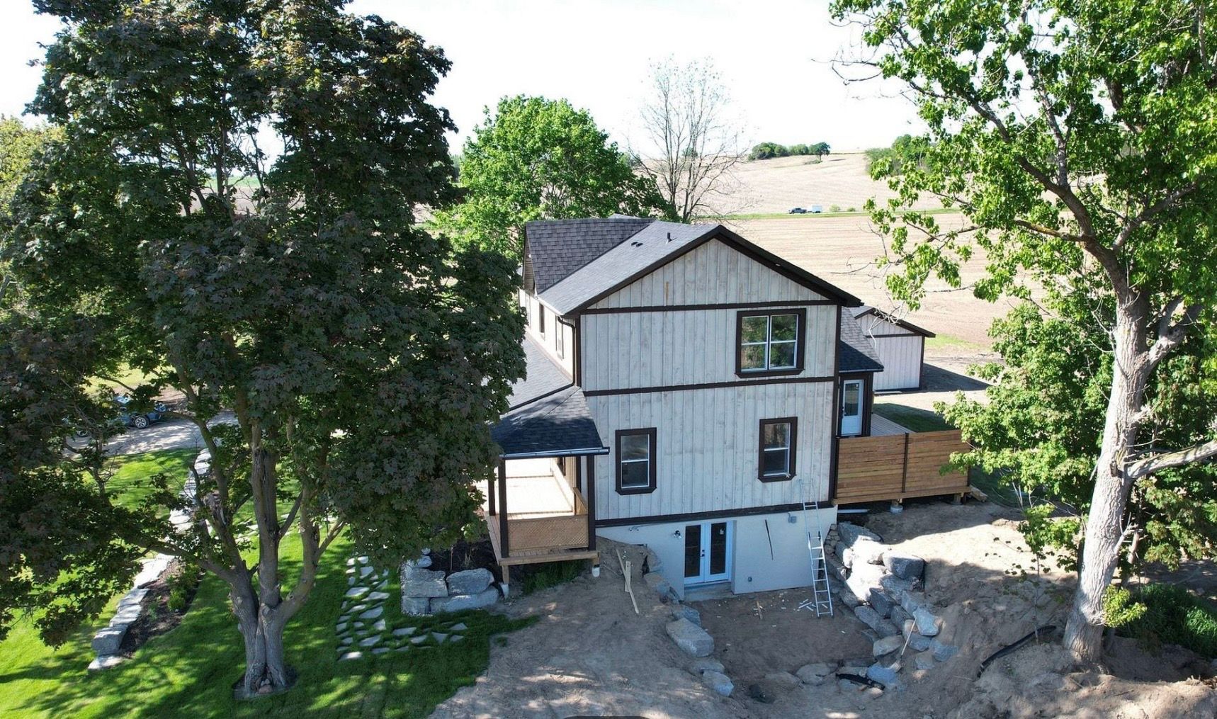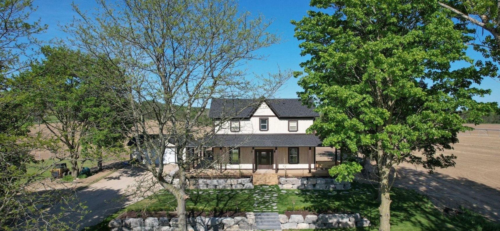 Stunning renovated country estate on over 1 acre near alliston welcome to this beautifully renovated 3-bedroom, 3-bathroom country estate, where modern elegance meets peaceful rural charm. Set on over an acre, this impressive home offers breathtaking sunrise and sunset views from its expansive wraparound porch. Inside, white oak hardwood floors flow throughout, complementing the bright open-concept layout. The spacious eat-in kitchen is designed for both everyday living and entertaining, featuring a centre island, quartz countertops, and matching backsplash. The main floor also offers multiple walkouts, convenient laundry, and a generous living room with propane hookup for a future fireplace. Upstairs, the elegant primary retreat includes a walk-in closet and a sleek 3-piece ensuite with glass shower. The finished walkout lower level presents incredible flexibility, with potential for a fourth bedroom or in-law suite. Outside, enjoy a detached garage, armour stone landscaping, and an oversized driveway with ample space for vehicles, trailers, and recreational toys. Ideally located near highways 89 and 50, only 10 minutes to alliston and a short walk to earl rowe park.