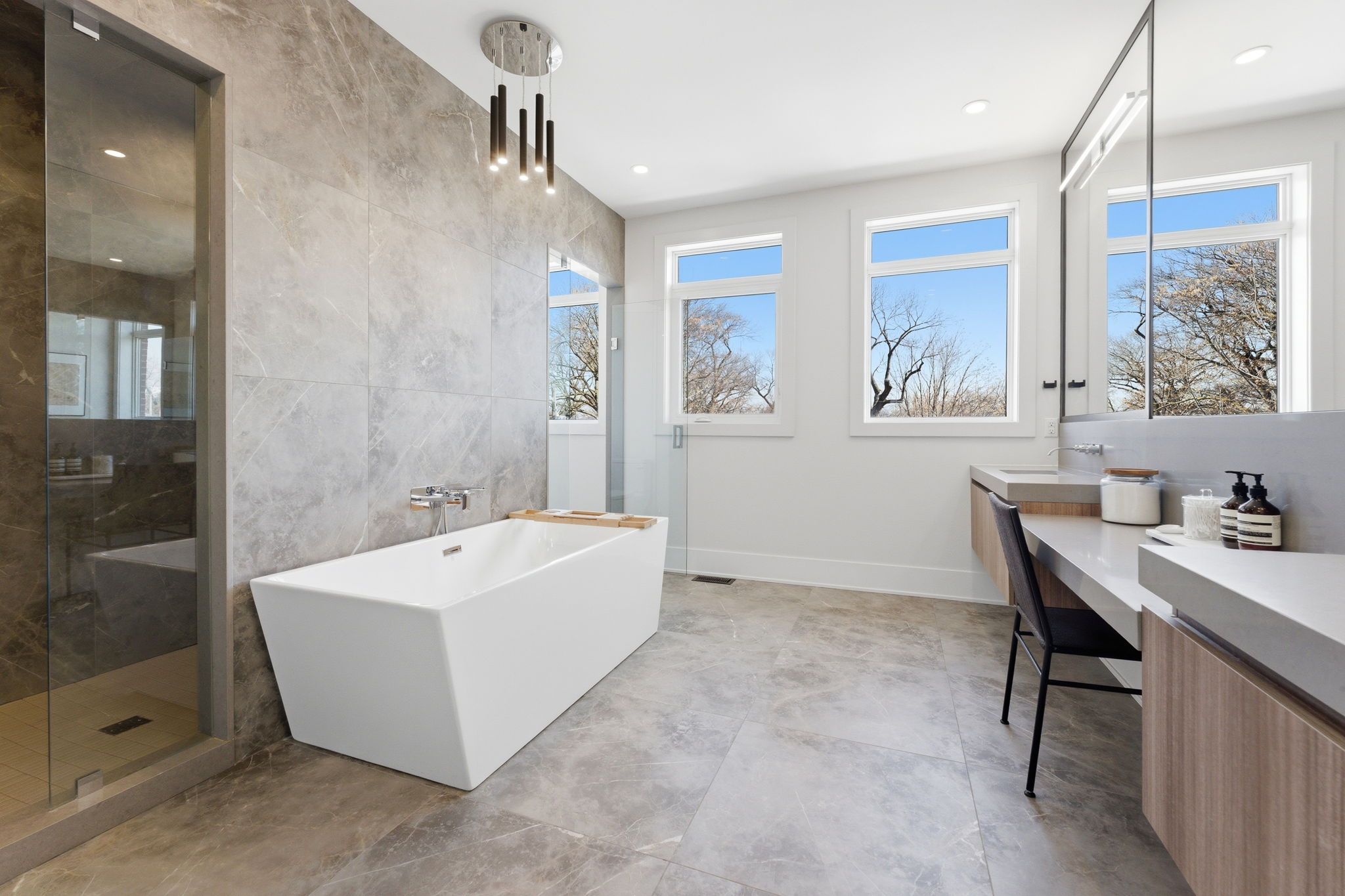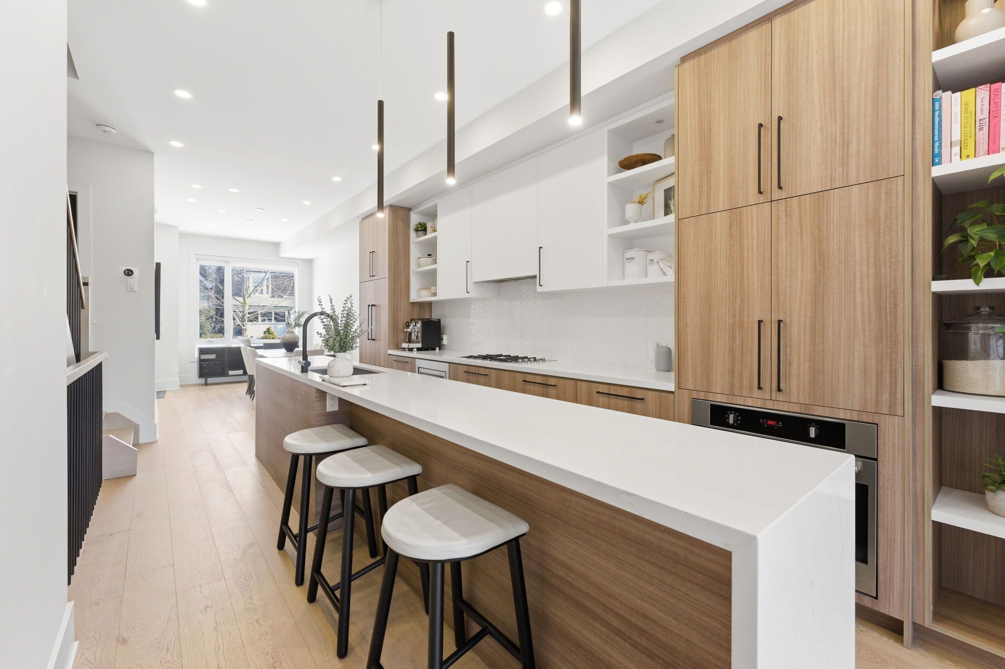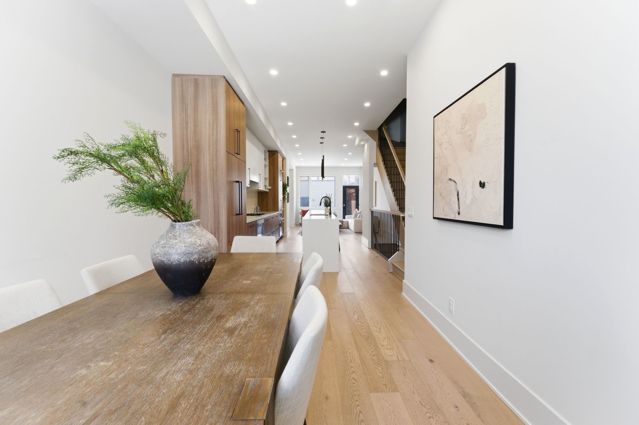 Welcome to this stunning custom-built home in the heart of bloor west village, offering over 3,000 sq ft of beautifully finished living space. This impressive 3+den bedroom, 5-bathroom residence showcases exceptional craftsmanship, luxury finishes, and a thoughtfully designed layout ideal for modern family living. The main floor features soaring ceilings, wide-plank hardwood floors, pot lights throughout, and an open-concept living and dining area anchored by a sleek linear fireplace with elegant cove lighting. The chef-inspired kitchen boasts custom cabinetry with hardrock maple interiors, calacatta vienna quartz countertops, a herringbone backsplash, built-in appliances, and a spacious centre island perfect for entertaining. Walk out to a generously sized private backyard with access to a 1. 5 detached garage. The entire top floor is dedicated to a private primary retreat, complete with a luxurious full-floor ensuite and walk-in closet, creating a true sanctuary. Additional bedrooms are generously sized, complemented by a versatile den and convenient upper-level laundry. Located steps to the shops, cafes, and restaurants of bloor street west, excellent schools, parks, humber river trails, ttc, jane station, and easy access to the gardiner, hwy 427, and sherway gardens.