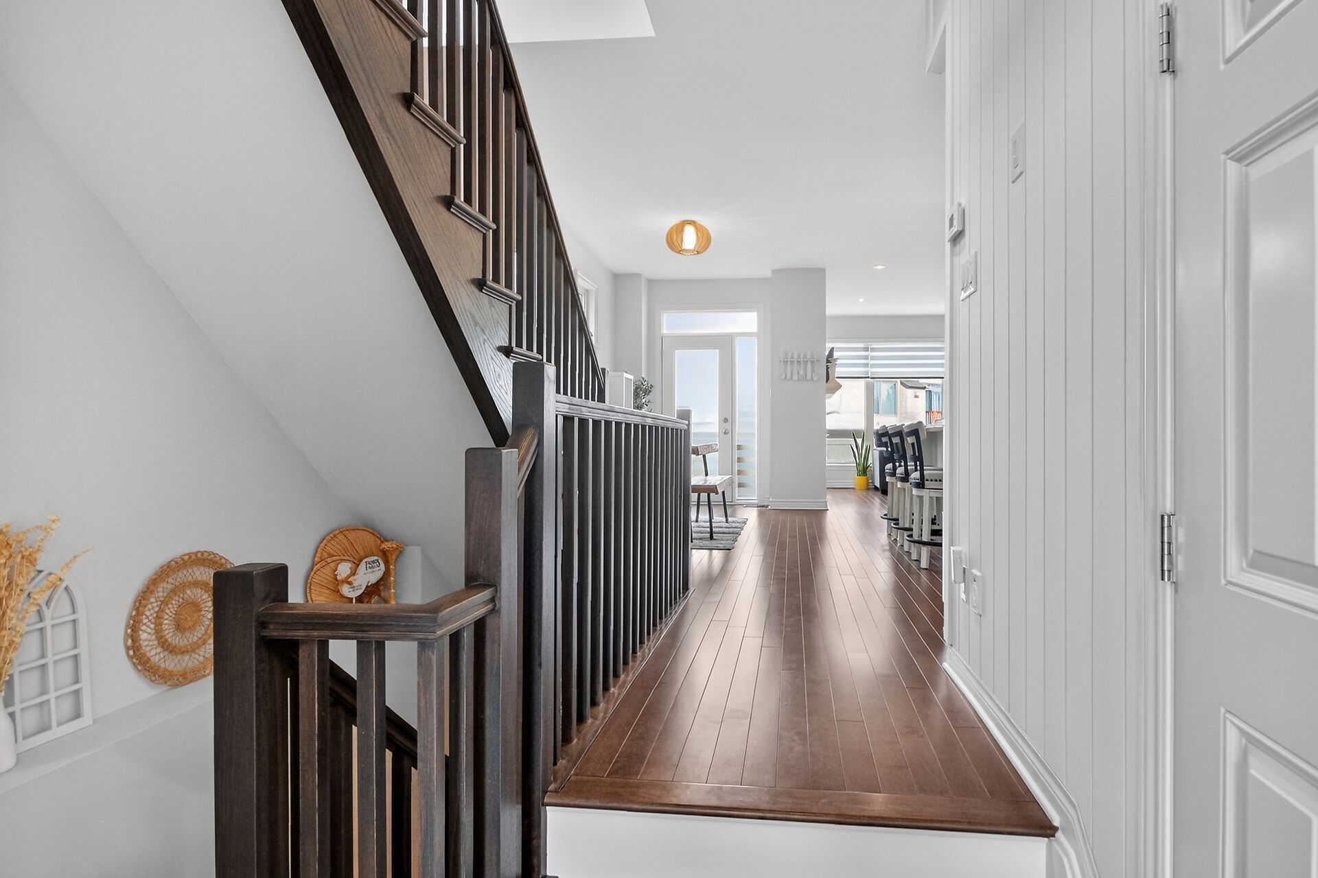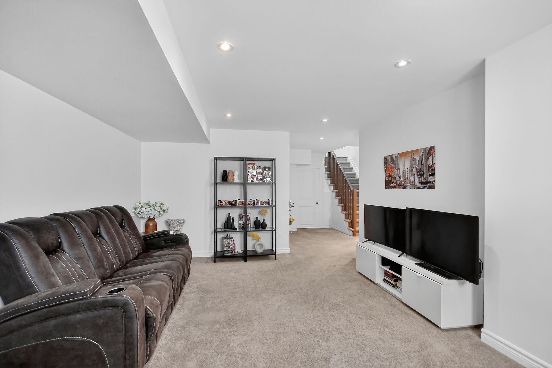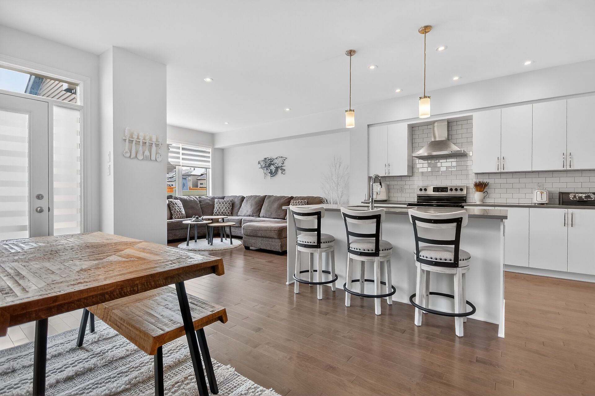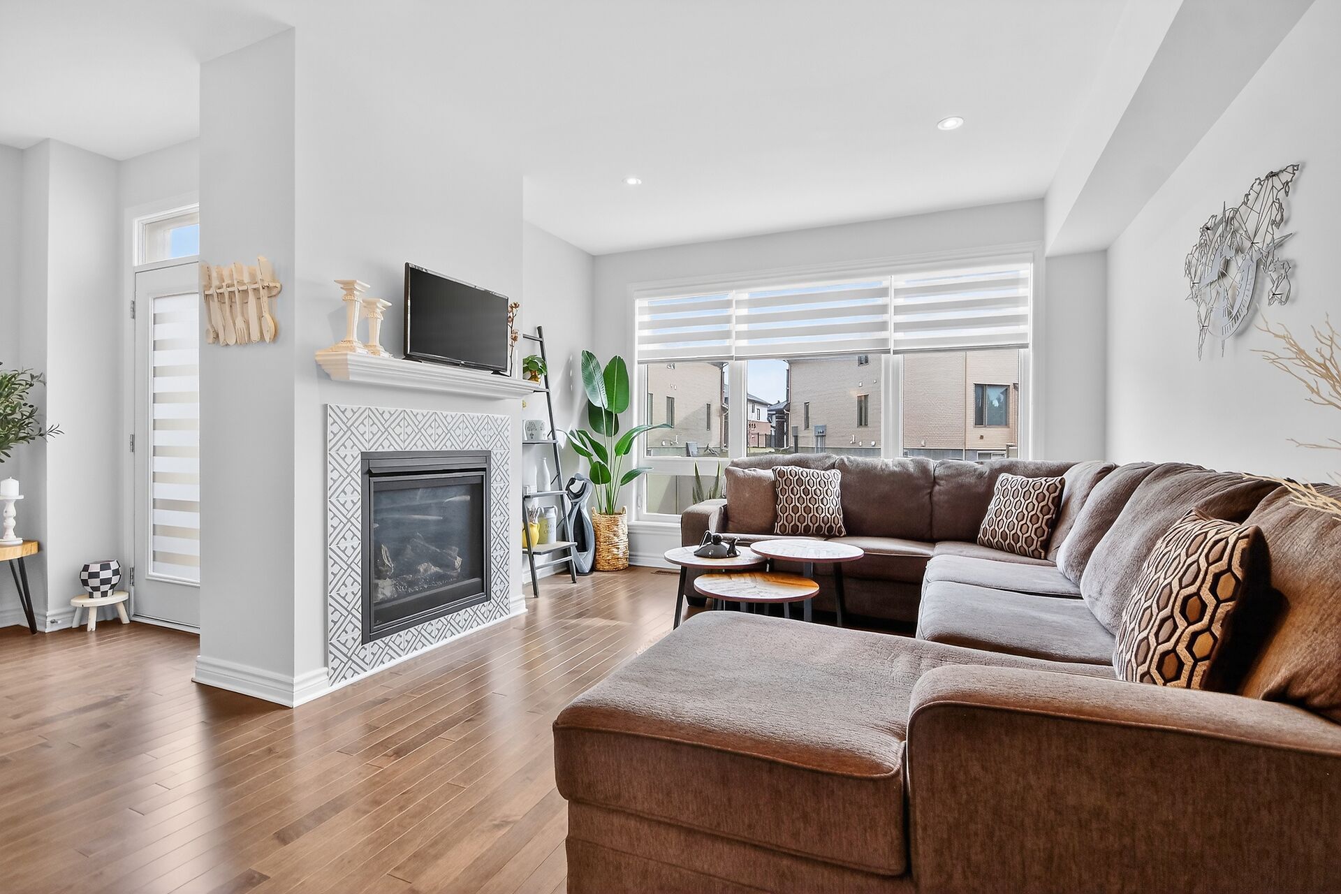 Beautifully maintained 3-bedroom townhome in sought-after riverside south that shows like a new home, offering over $45,000 in upgrades and a premium lot backing onto a pie-shaped yard, providing added privacy. The main floor features 9 foot ceilings, a stunning kitchen with quartz countertops, a large island, ample counter space, generous cabinetry, and a spacious pantry, flowing into a bright dining area with a door leading to the large fully fenced backyard. The inviting living room is filled with natural light from large windows, features a beautiful gas fireplace, and includes custom blinds. A welcoming foyer with professionally done wood panel accent wall and convenient powder room complete this level. Upstairs, the spacious primary bedroom is filled with natural light and features a luxurious 5-piece ensuite with double sinks, stand alone shower, and a large soaker tub, along with a sizeable walk-in closet. Two additional well-sized bedrooms, a stylish main bathroom, and a conveniently located laundry room complete the upper level. The finished basement offers additional living space, bathroom rough in along with plenty of storage. Located close to parks, schools, shopping, recreation facilities, trails, the lrt, and the scenic rideau river, as well as the airport. 24 hours irrevocable on all offers.