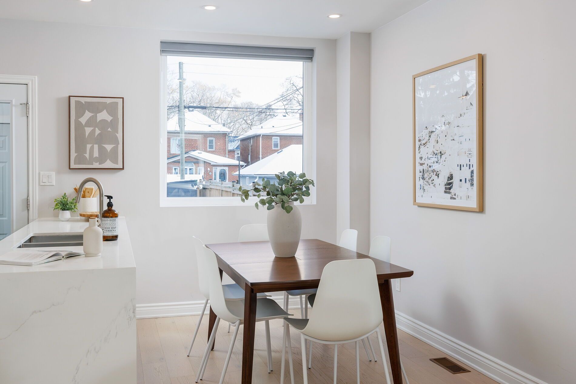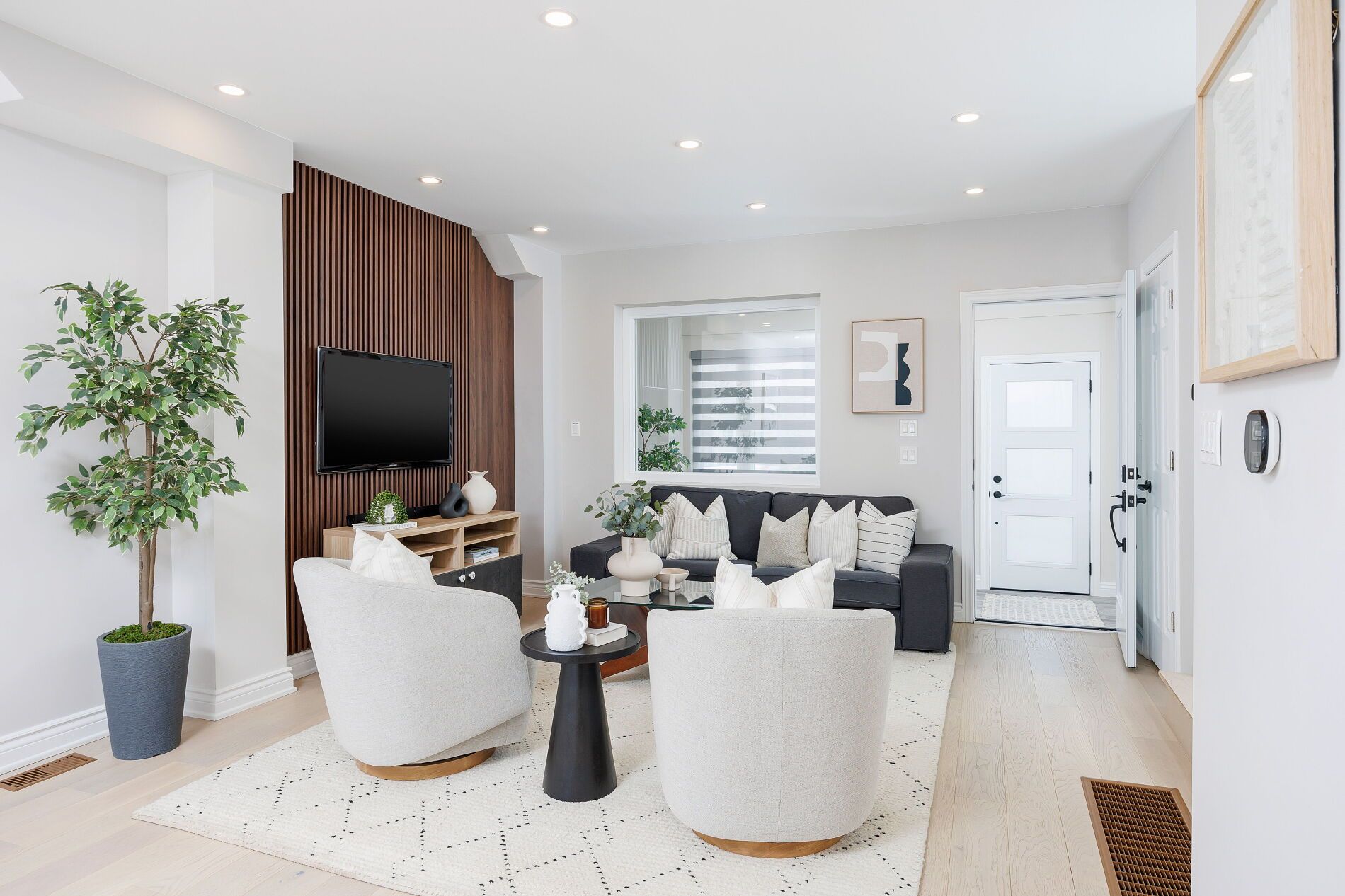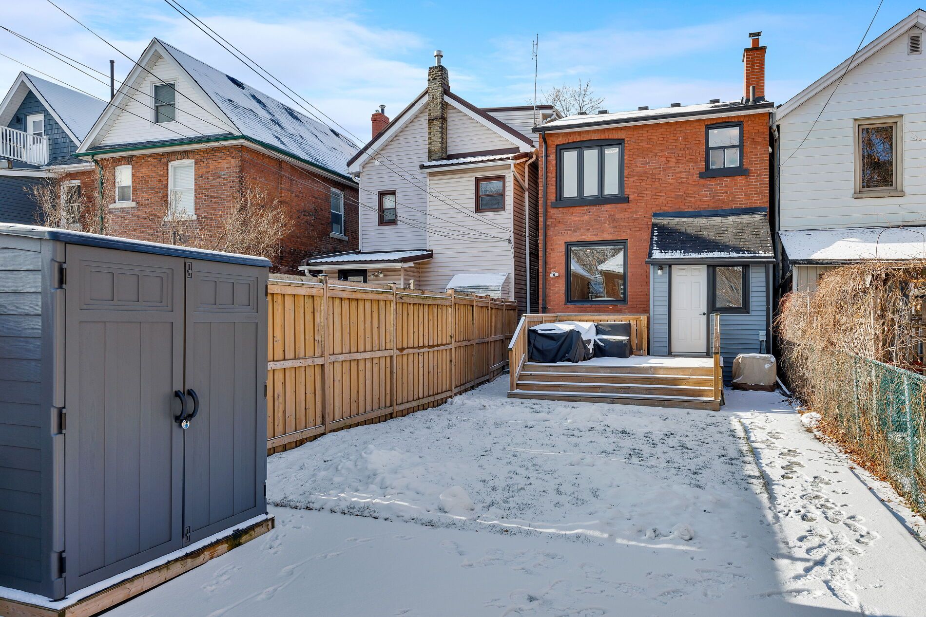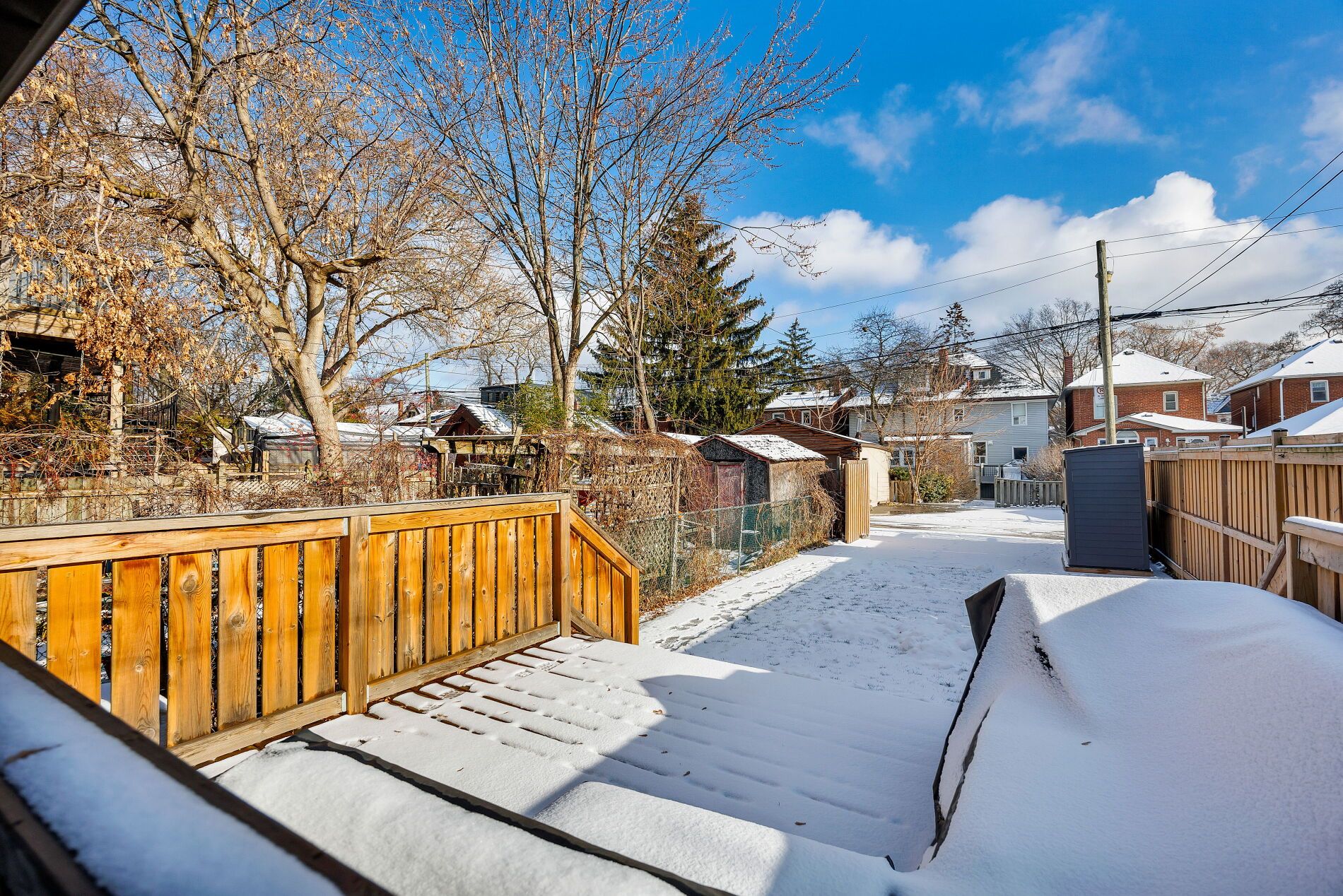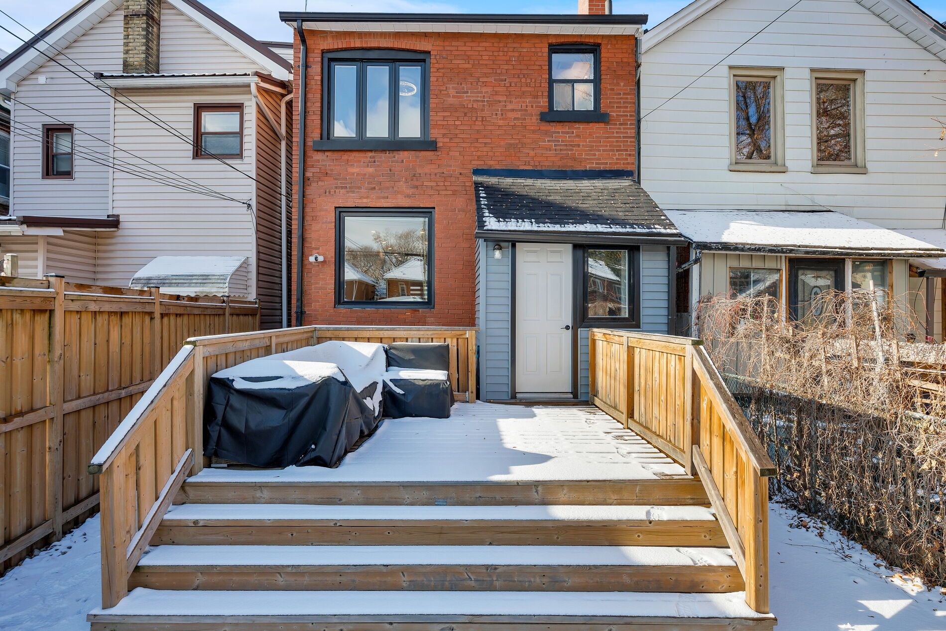 Discover this thoughtfully designed, turnkey home in the coveted bloor west community. Plenty of natural light, the open-concept layout is perfectly suited for both family gatherings and entertaining guests. The designer eat-in kitchen is a features elegant quartz countertops, high-end appliances, and a generous pantry for your storage needs. Relax in the cozy family room, complete with a striking feature wall. Enjoy the convenience of a rare main floor powder room. Venture upstairs to find three spacious bedrooms, including a luxurious primary suite with double closets. Spa-like bathroom equipped with a large soaking tub, perfect for unwinding after a long day. The fully finished, open concept basement offers good ceiling height and additional living space, complete with laundry and stylish three-piece bathroom. Step outside to a landscaped and fenced backyard featuring a newer deck, perfect for summer evenings and entertaining. Generous parking for two cars. Located in highly desirable school districts. Enjoy all the neighbourhood amenities- including quick walk to ttc & family friendly parks.