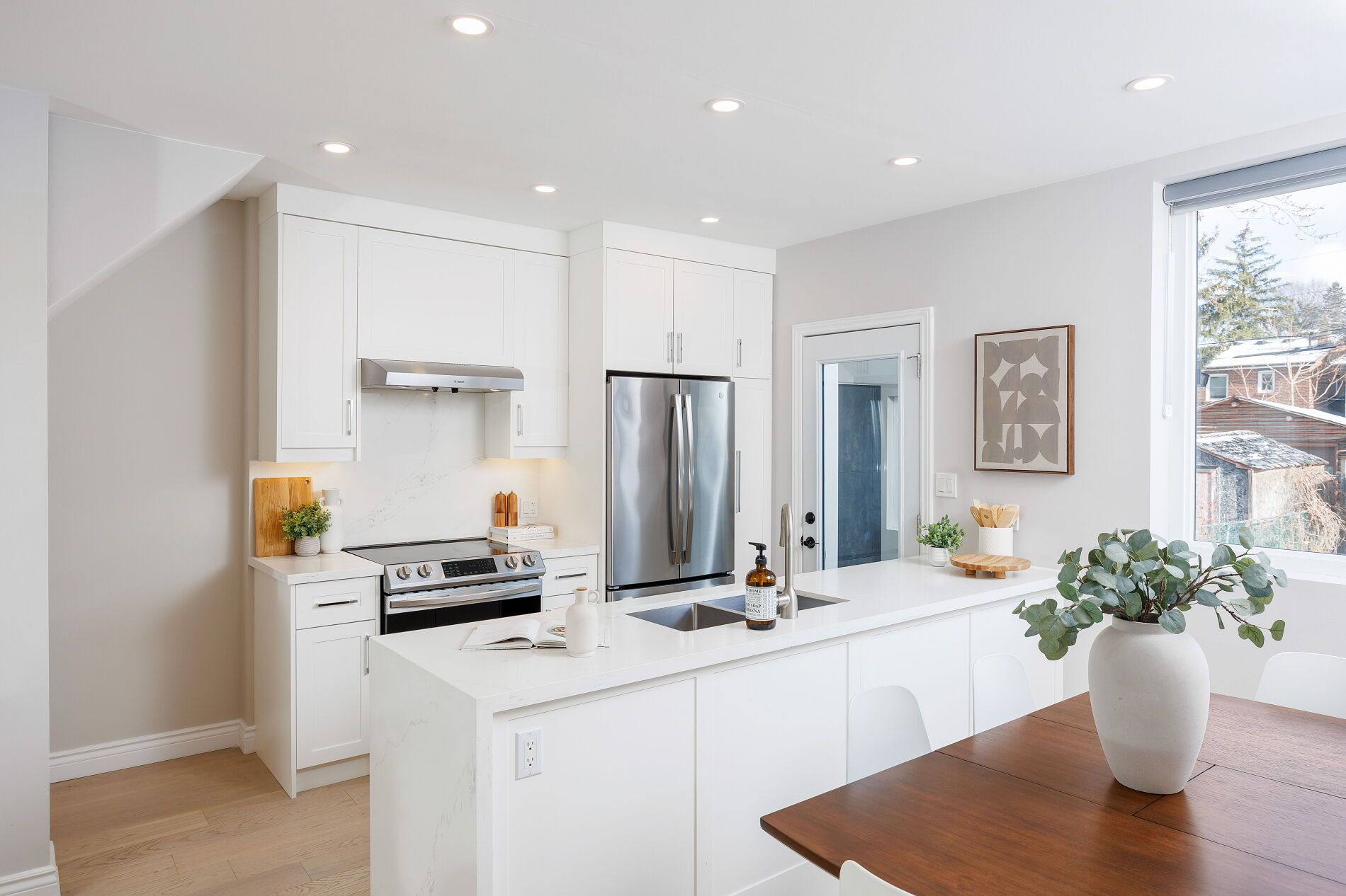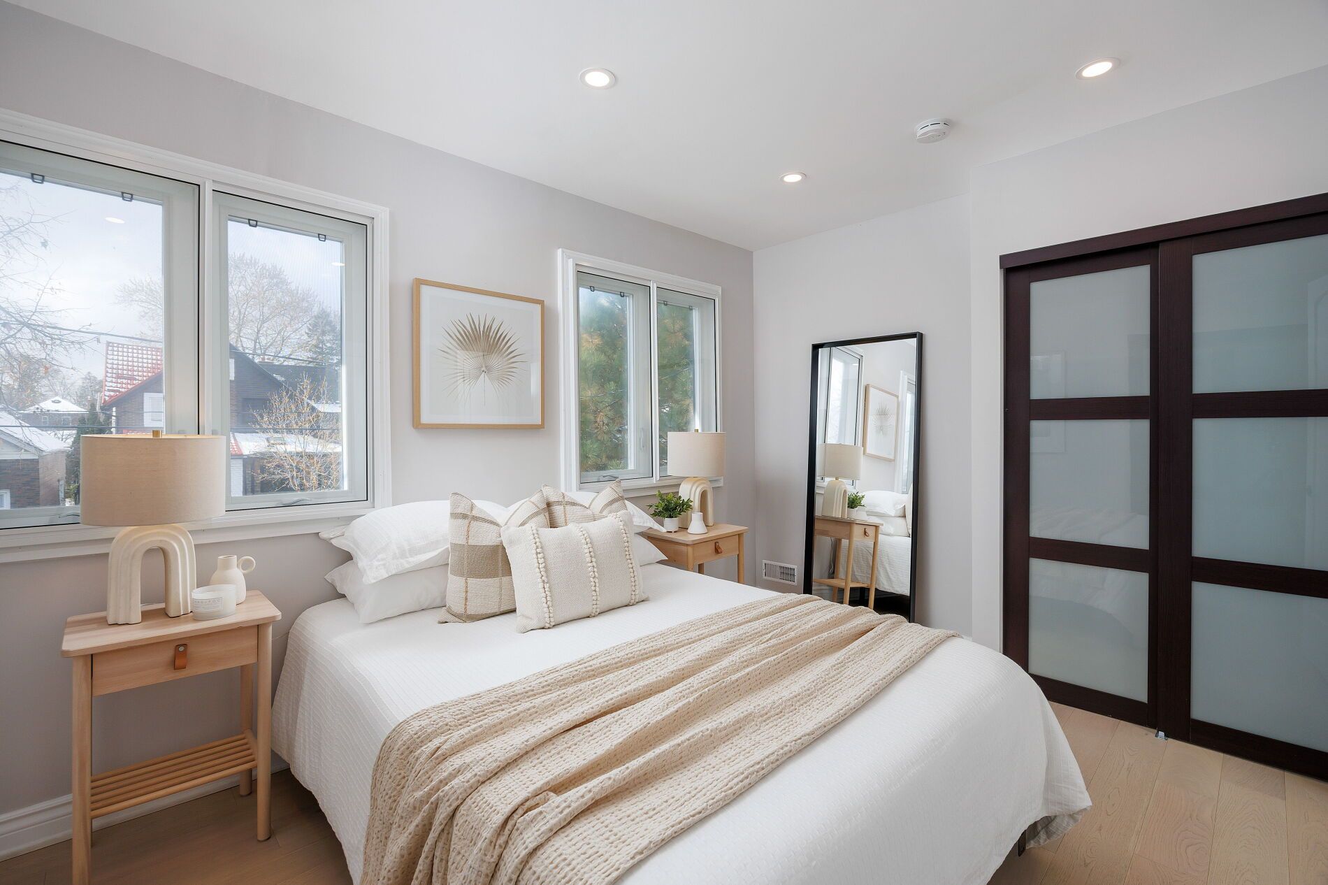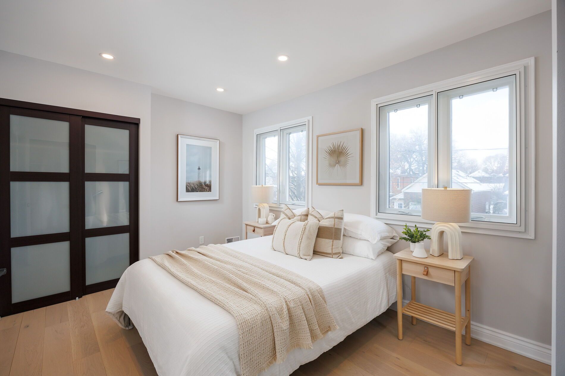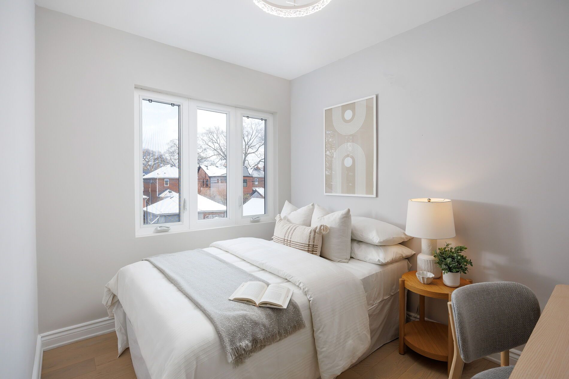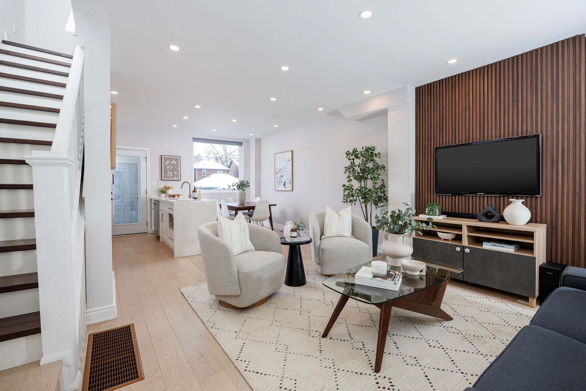 Discover this thoughtfully designed, turnkey home in the coveted bloor west community. Plenty of natural light, the open-concept layout is perfectly suited for both family gatherings and entertaining guests. The designer eat-in kitchen is a features elegant quartz countertops, high-end appliances, and a generous pantry for your storage needs. Relax in the cozy family room, complete with a striking feature wall. Enjoy the convenience of a rare main floor powder room. Venture upstairs to find three spacious bedrooms, including a luxurious primary suite with double closets. Spa-like bathroom equipped with a large soaking tub, perfect for unwinding after a long day. The fully finished, open concept basement offers good ceiling height and additional living space, complete with laundry and stylish three-piece bathroom. Step outside to a landscaped and fenced backyard featuring a newer deck, perfect for summer evenings and entertaining. Generous parking for two cars. Located in highly desirable school districts. Enjoy all the neighbourhood amenities- including quick walk to ttc & family friendly parks.
