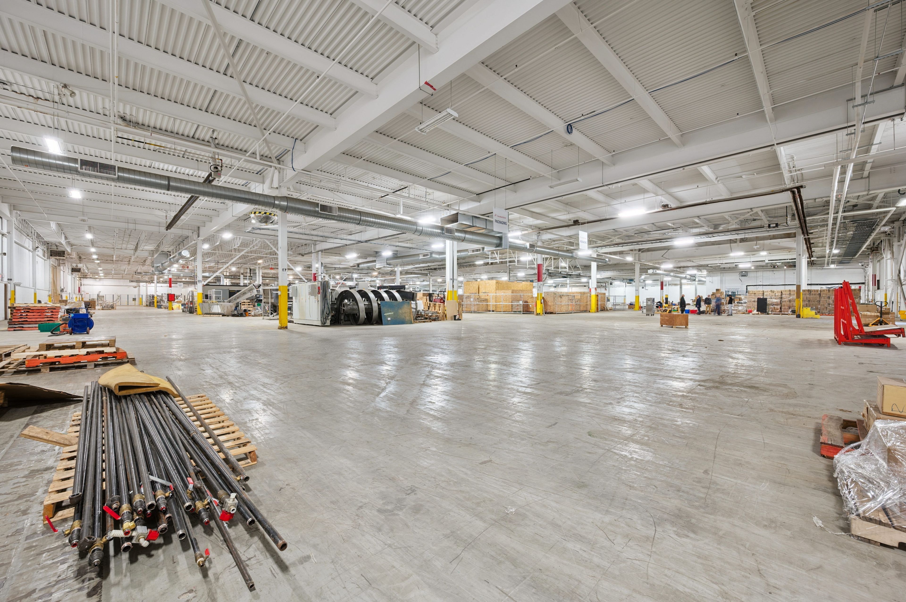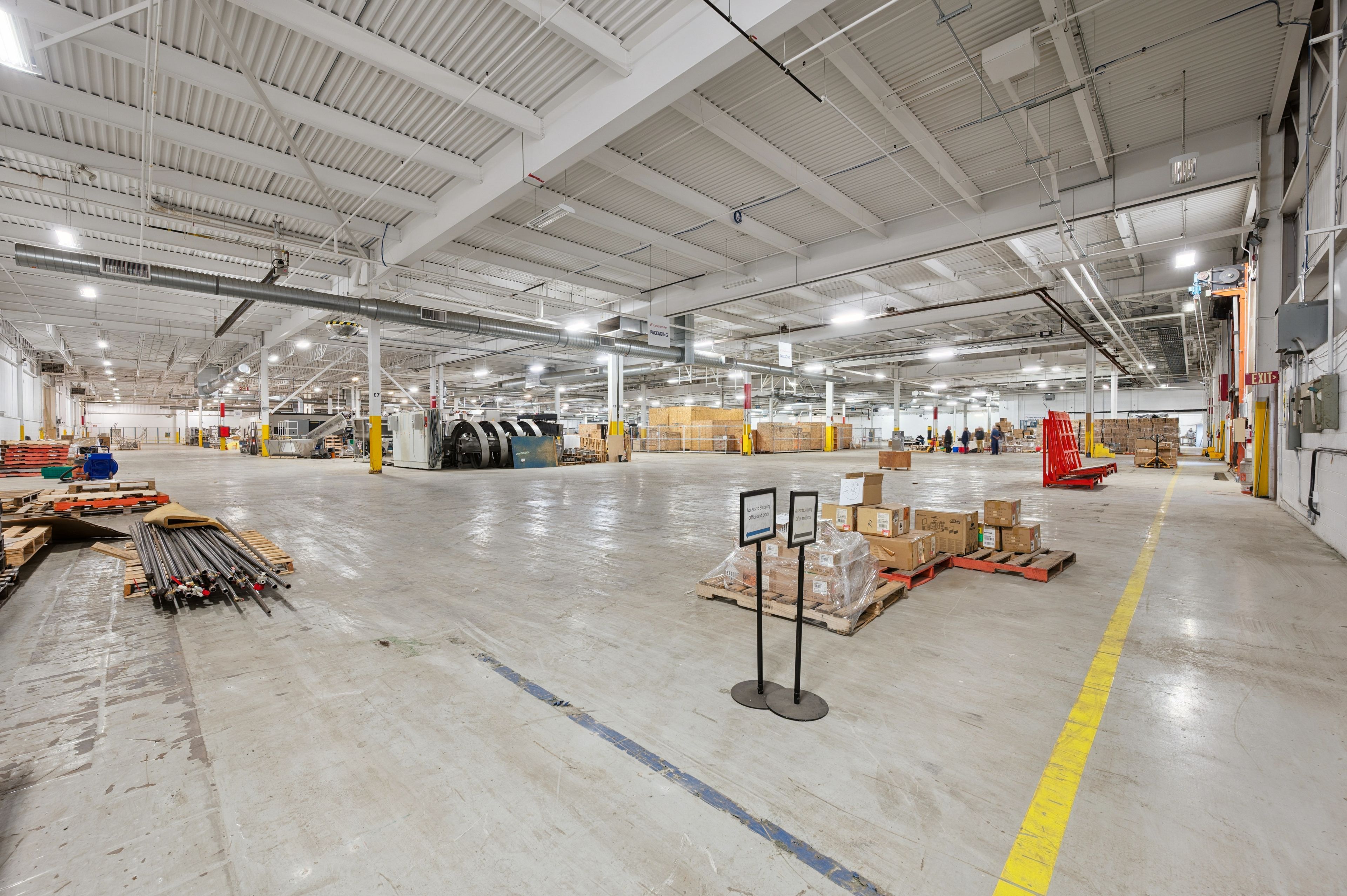 • New warehouse area with high ceilings suited for various uses.