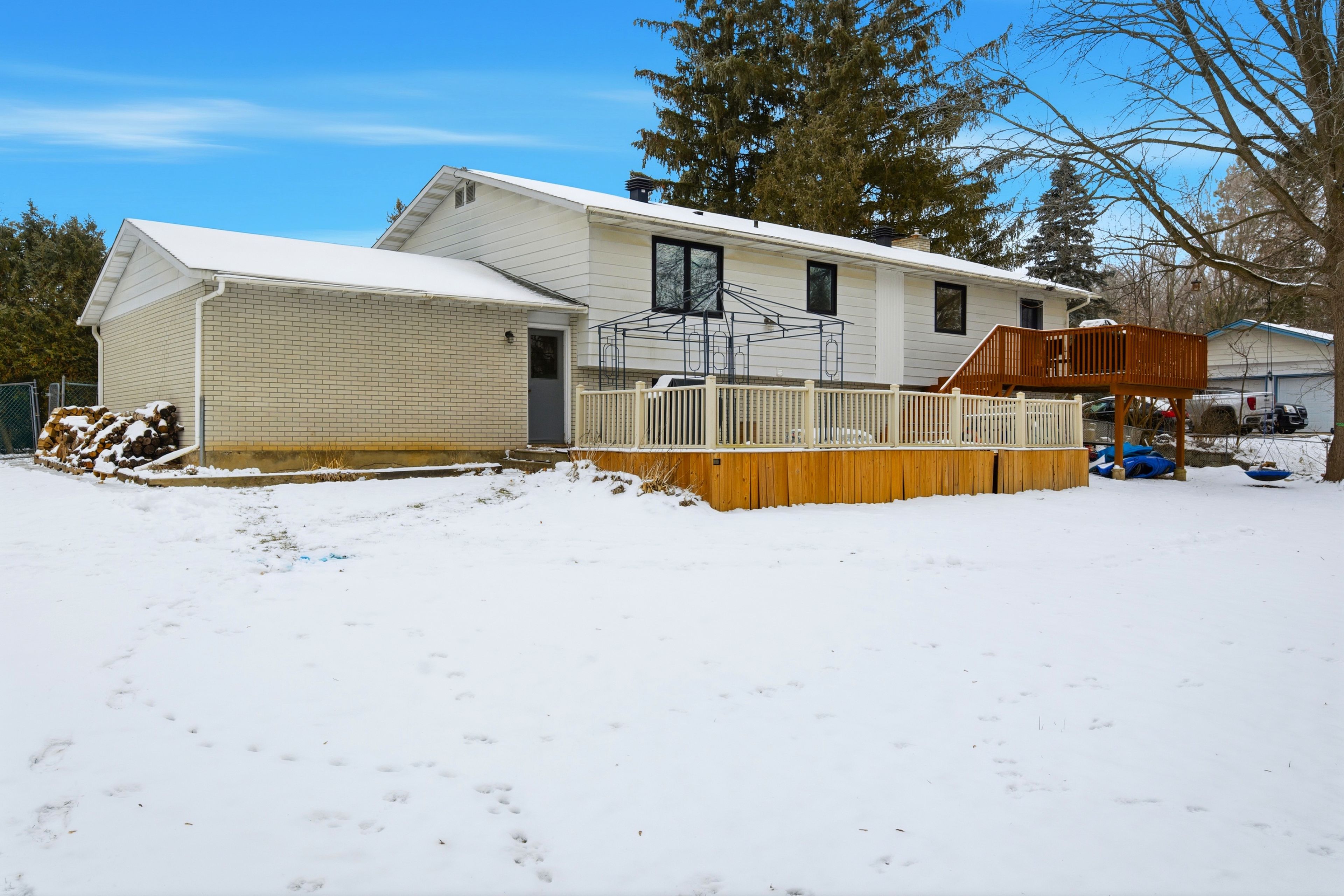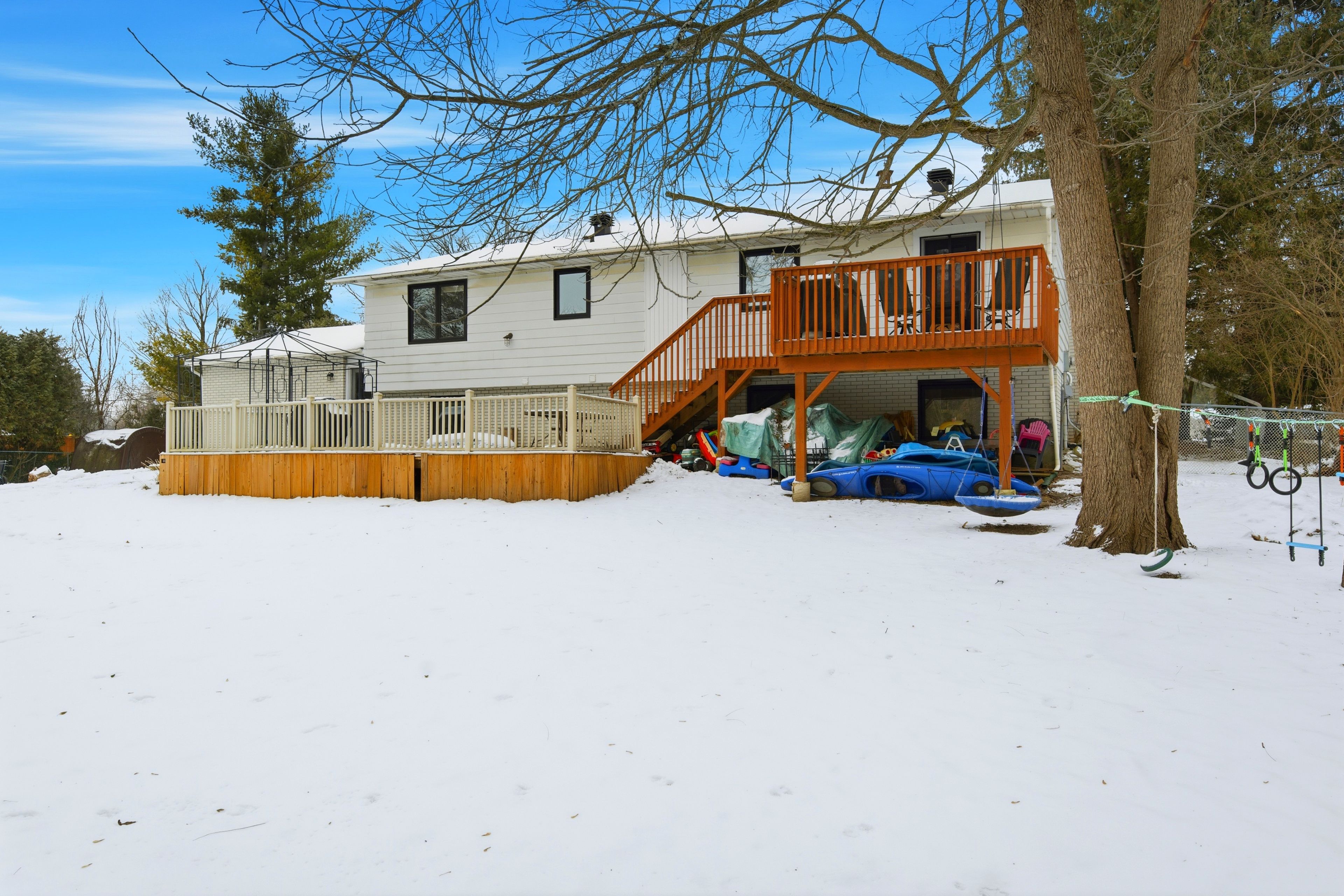 Welcome to 5453 long island rd, a charming detached raised bungalow on the sought after north side of long island in the heart of manotick ~ just steps from the rideau river, boutique shops, restaurants, parks & more! This beautifully maintained home offers 3 bedrooms and 3 full bathrooms, along with an inviting, light-filled layout perfect for modern living. The main level features a bright open-concept floor plan with a spacious living room highlighted by a cozy wood-burning fireplace, a dedicated dining area, and a stunning kitchen equipped with classic white cabinetry, granite island with breakfast bar, and stainless steel appliances. Patio door access leads to the backyard deck-ideal for outdoor dining or morning coffee. Three well-sized bedrooms complete this level, including a lovely primary suite with ample closet space and a stylish 4-piece ensuite. A second full bathroom serves the main floor. The lower level feels anything but like a basement with its large grade-level windows. Enjoy a generous family room with gas fireplace, full bathroom, exercise room, laundry room, storage space, and a flexible area perfect for guests or a home office. The large, tree-lined backyard offers privacy and space to play, garden, or entertain. A wonderful opportunity to live in one of manotick's most desirable locations-move-in ready and full of charm!