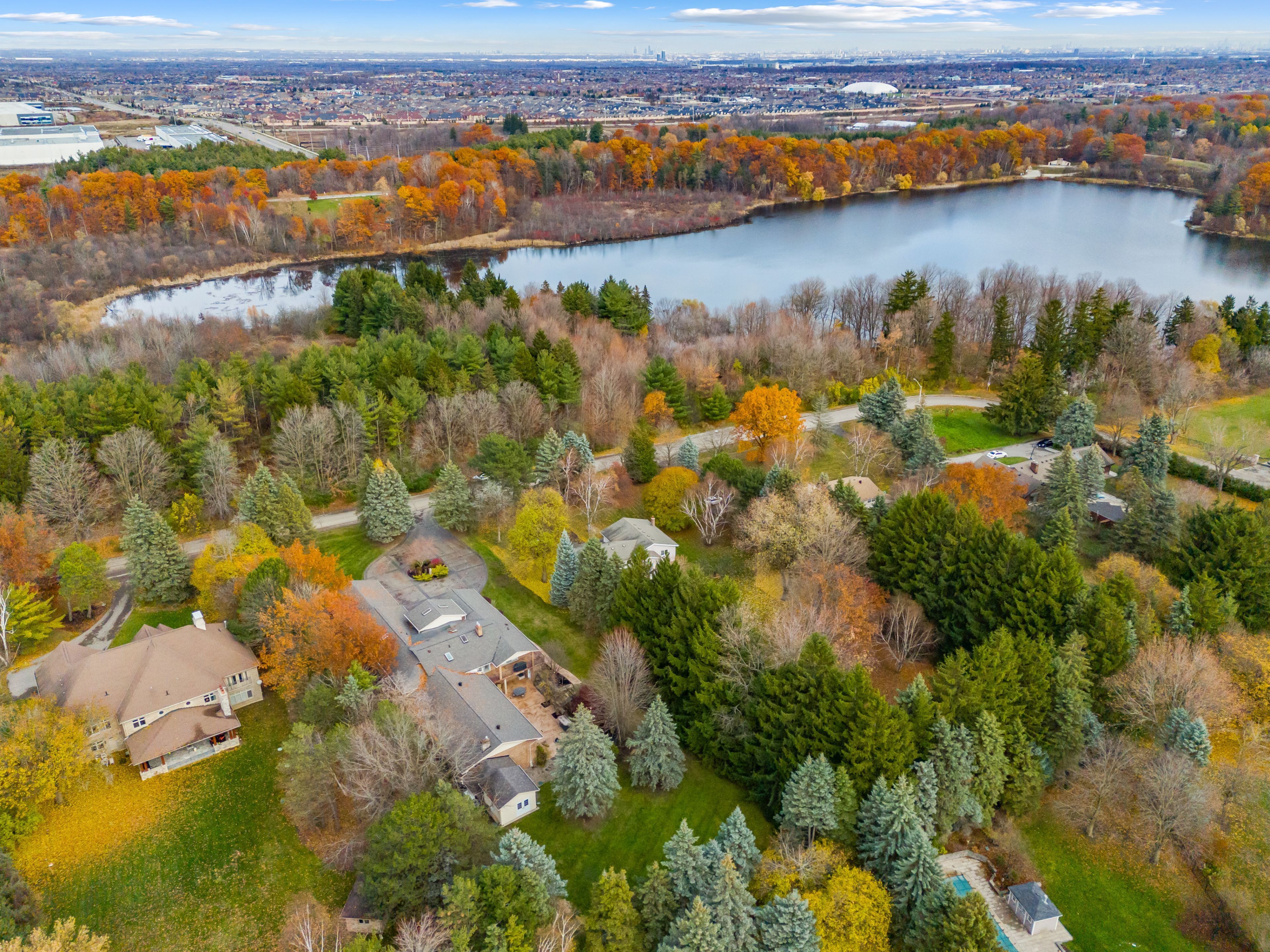 Welcome to this stunning custom-built raised bungalow on a private 1-acre lot in one of brampton's most prestigious enclaves, directly across from heart lake conservation area. Offering 7,700 sq ft of total living space, including 3,200 sq ft above grade and a breathtaking 4,500 sq ft walk- out basement with an indoor pool complex and waterfall, this home is a true retreat. The chef's kitchen features a walk-out balcony, custom wood cabinetry, and natural light, capturing unobstructed views of heart lake and surrounding forest. The family room offers a walkout balcony overlooking the firepit and landscaped gardens, perfect for gatherings. The upper level includes four spacious bedrooms, with the primary suite boasting a private ensuite and walk-in closet. The lower level offers two additional bedrooms and a large recreational area with oversized windows, a fireplace, wet bar, and walkout to a stamped concrete patio. The indoor pool (18 ft x 42 ft) area features 14-foot ceilings, a waterfall, swim-up bar, and state of the art climate control, creating a year-round resort experience. Completing this luxurious space is a sizable gym, sauna and shower area. Indoor-outdoor flow seamlessly links to beautifully landscaped gardens and a stone patio with a gas firepit, providing an outdoor oasis. The backyard offers privacy and tranquility with mature trees, lush landscaping, and a large open yard for recreation. The front driveway is stamped concrete, with 5 vehicles indoors. Located on conveted conservation drive, surrounded by multimillion-dollar properties and with no homes across the street, this estate offers unobstructed views, nearby trail access, abundant wildlife, and a luxurious lifestyle immersed in nature.