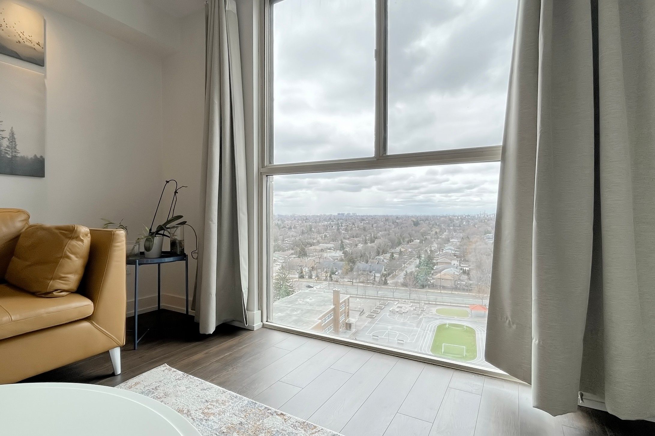 Welcome to the vibrant yonge & finch corridor, where everyday convenience is paired with expansive west-facing views. This is a bright and spacious 2 bedroom suite that offers stunning sunsets and unobstructed vistas that stretch for miles. This move-in-ready condo features 1,081 sq. Ft. Of well-designed living space, highlighted by new flooring and a functional layout suited for both comfortable living and entertaining. The open-concept living and dining area easily accommodates a full dining table a living space where you don't have to sacrifice comfort-an increasingly rare and valuable feature in condo living. A separate kitchen provides added privacy and practicality, ideal for hosting/meal prep, and features ceramic flooring, a modern backsplash, stainless steel appliances, and ample cabinetry. The oversized primary bedroom serves as a private retreat, complete with floor-to-ceiling windows and a bright western exposure that fills the room with natural light. It even offers room for an office space, a huge walk-in closet, and en-suite with custom built storage. This condo has storage you will not find in most buildings! - custom storage throughout, an en-suite storage room. The building offers great amenities and security and the location is literally 3 minutes away from the subway. This is true convenience without giving up space! Originally a 1+1, the unit has been thoughtfully converted into a full two-bedroom layout. Incredible value for this location!