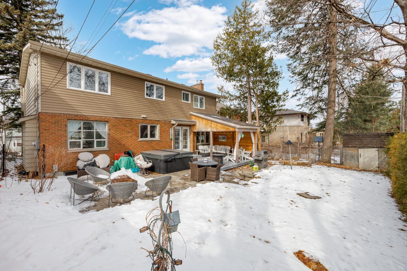 Beautiful and spacious true 5-bedroom home, ideally situated in one of ottawa's most coveted neighbourhoods - just steps to top-rated schools including broadview ps, nepean hs, and notre dame hs, along with dovercourt rec centre, parks, the farmers' market at byron linear park, and the boutiques and restaurants of westboro village. Exceptional curb appeal with a welcoming front verandah - an inviting spot to enjoy your morning coffee. Inside, the inviting living room is filled with natural light from an oversized bow window. The elegant formal dining room features a classic buffet cove, ideal for hosting large gatherings. The spacious kitchen offers granite countertops, centre island, and a seamless layout that flows into the family room with gas fireplace. A convenient main floor powder room completes this level. Hardwood flooring runs throughout both the main and second levels, complemented by a hardwood staircase. The expansive primary suite offers a true retreat, complete with built-in bench seating, two walk-in closets, and a spa-like 5-piece ensuite with dual sinks, marble tile, a soaker tub, and separate shower. Four additional well-sized bedrooms, each with large closets, along with an updated main bathroom complete the second level. The finished basement offers a large recreation room with beverage bar, a 2-piece bath, laundry area, and abundant storage. Outdoors, discover a private, fully fenced backyard oasis, thoughtfully designed with a covered deck (2021), hot tub, and interlock patio - an exceptional setting for relaxing or entertaining with family and friends. Enjoy the perfect blend of urban convenience and neighbourhood charm - this is a home and lifestyle not to be missed! No conveyance of offers until monday, march 30th at 1pm.