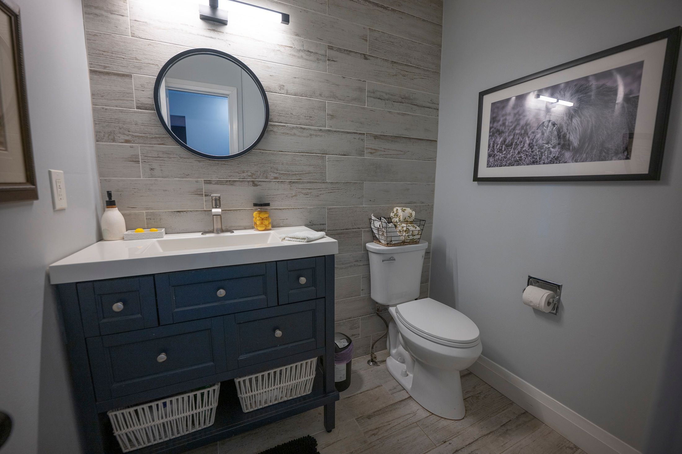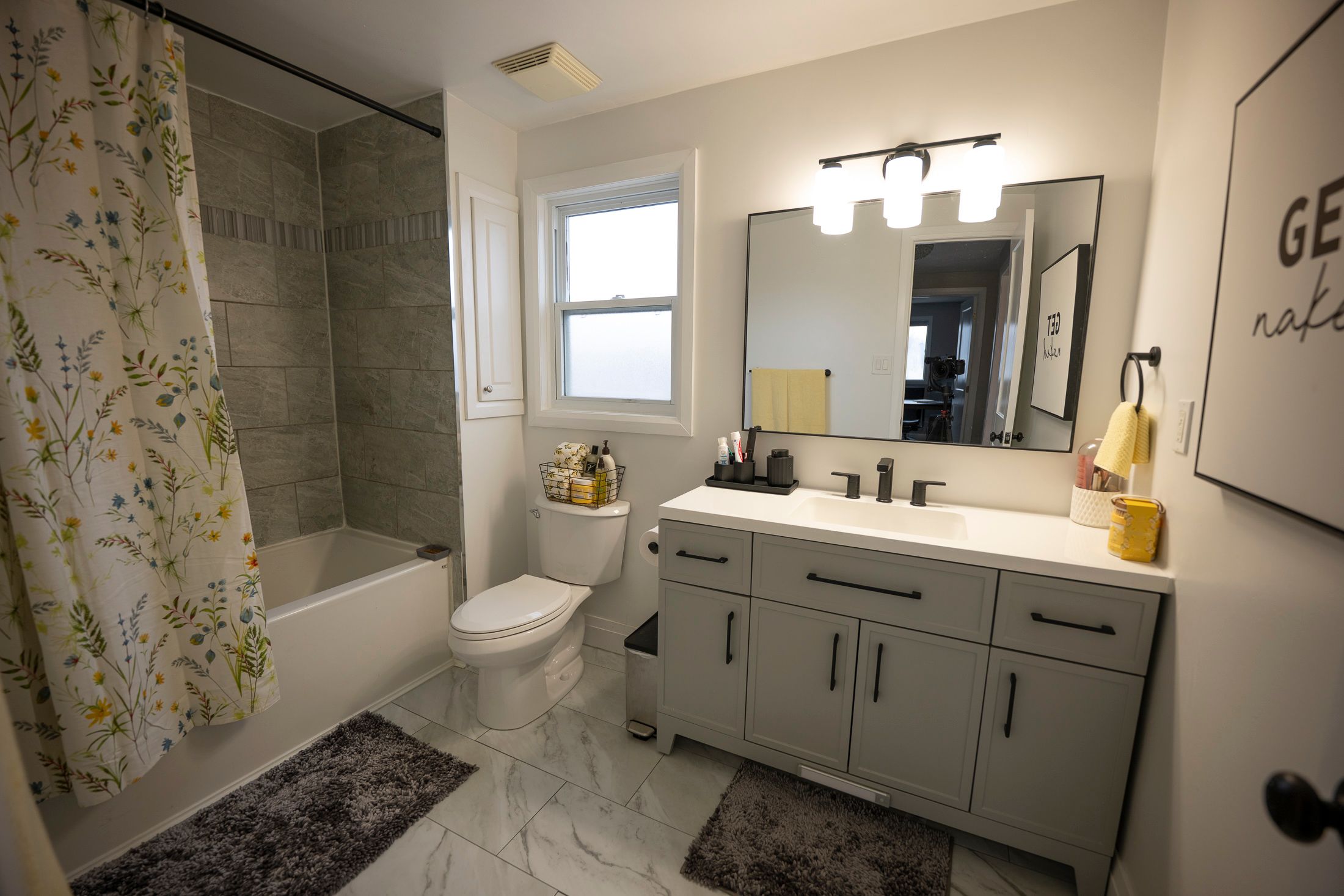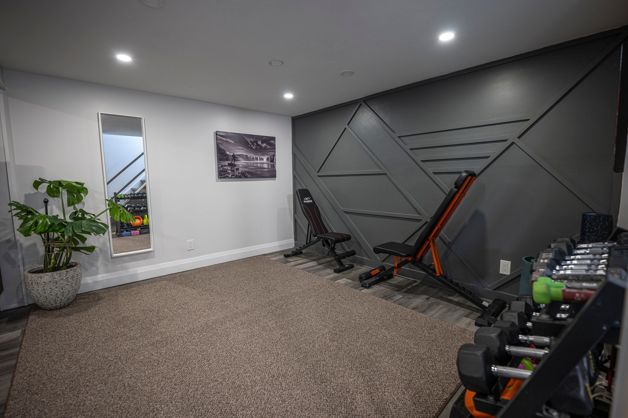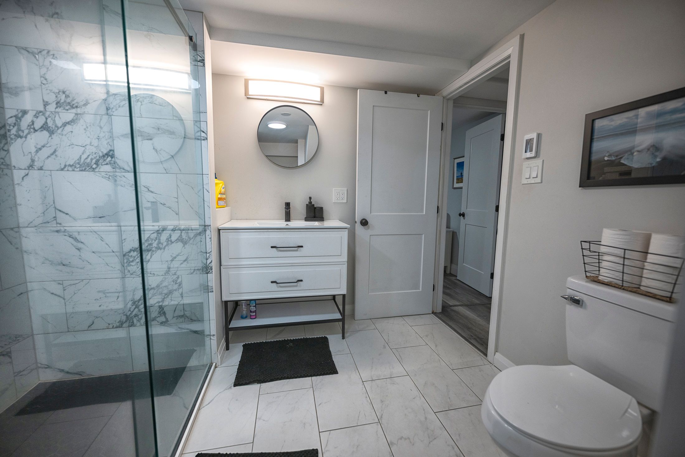 • Fully finished lower level with custom shower, heated floors, and fireplace.