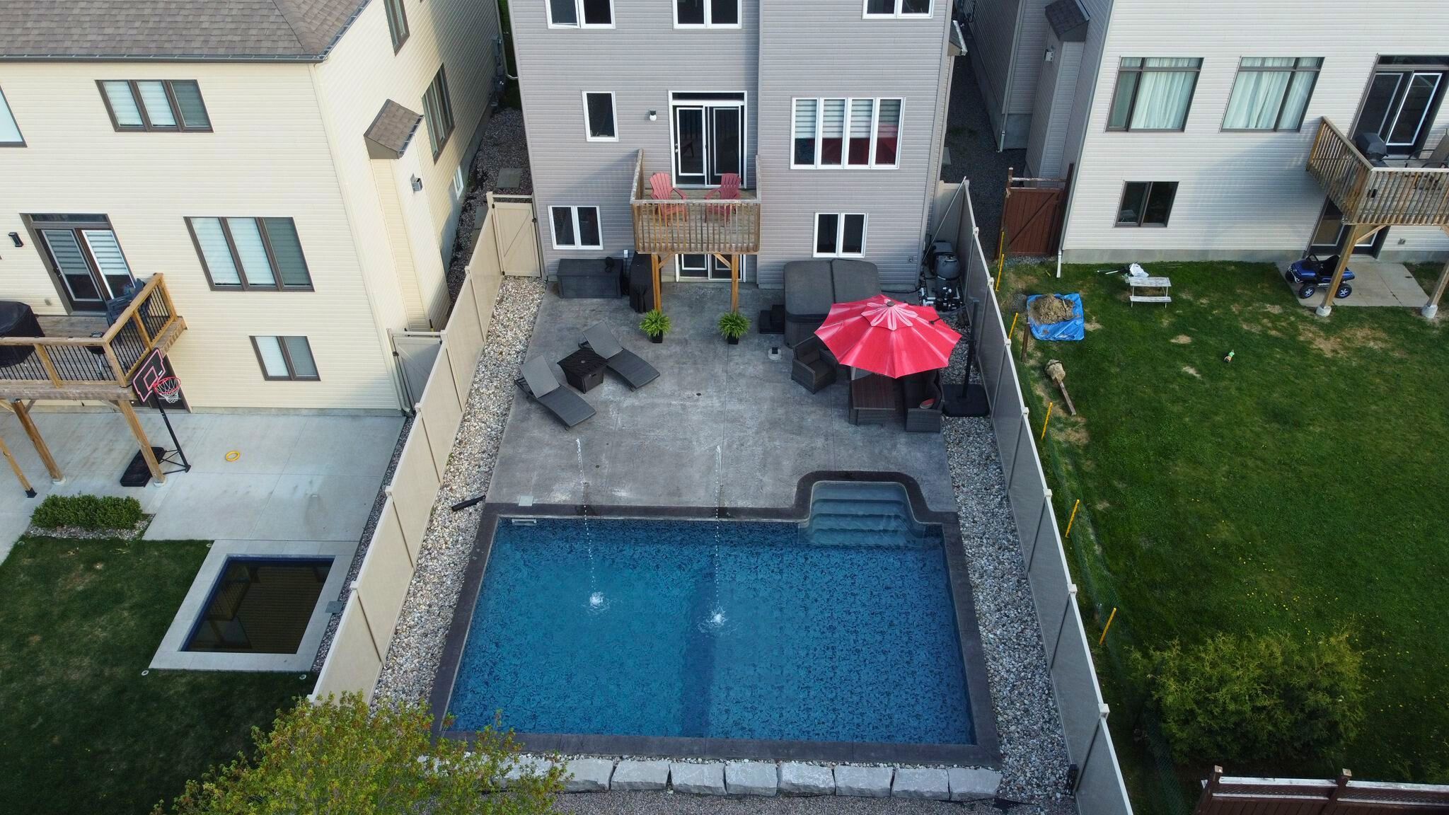 Welcome to your dream home on parade drive, where luxury meets lifestyle! This stunning property offers exceptional curb appeal with a welcoming front porch, an insulated 2-car garage, and a location directly across from howard a. Maguire park,featuring multiple play structures, a pickleball/tennis court, sandbox, and expansive green space. Inside, you're greeted by a show-stopping feature wall in the front entry and gleaming floors throughout the main level. The kitchen is a true standout complete with stone counters, stainless steel appliances, a central island with breakfast bar, and elegant finishes. This beautiful kitchen opens seamlessly into the bright, airy living room with a gorgeous gas fireplace and oversized folding doors leading to your upper deck. The dining room is inviting and spacious, perfect for family dinners or entertaining. This level also includes a stylish powder room, convenient laundry room, and interior access to the garage. Upstairs, plush carpeting adds comfort to all four bedrooms. The generous primary suite features another eye-catching feature wall, a walk-in closet, and a luxurious ensuite with stone counters, double sinks, a glass shower, and soaker tub. A second full bathroom with granite counters and three additional well-sized bedrooms complete this level. The walk-out lower level is unfinished and ready to be customized to suit your family's needs - whether it's a home gym, rec room, additional living space, or all of the above. It opens directly to your incredible private backyard oasis - fully landscaped and featuring a stunning inground pool with two water fountains, a relaxing hot tub, and multiple zones for outdoor living and entertaining. This is a rare opportunity to own a high-end home with all the extras, in a location that's perfect for families. Don't miss it!