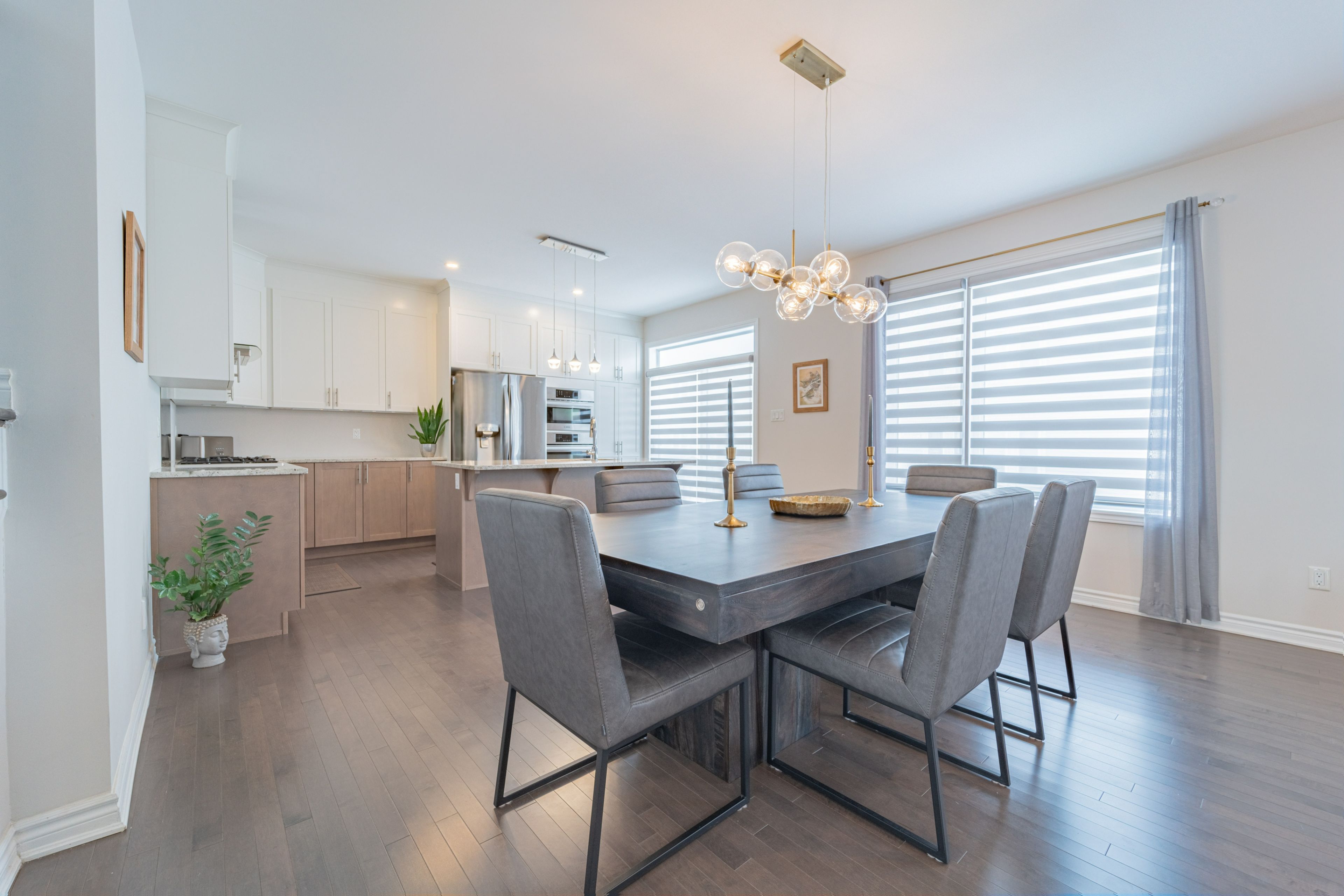 • Designer kitchen with high-end appliances and stylish two-tone cabinets.