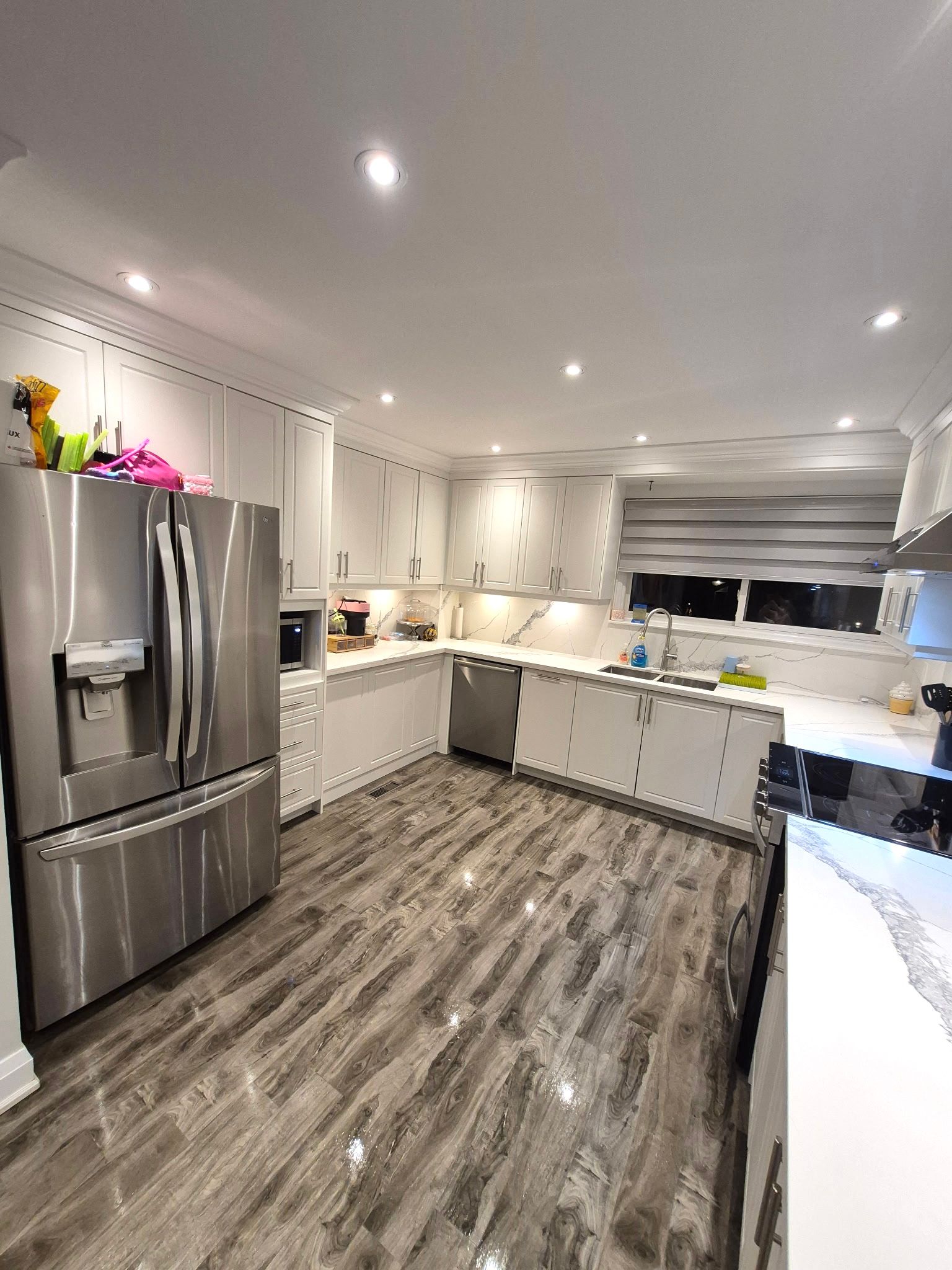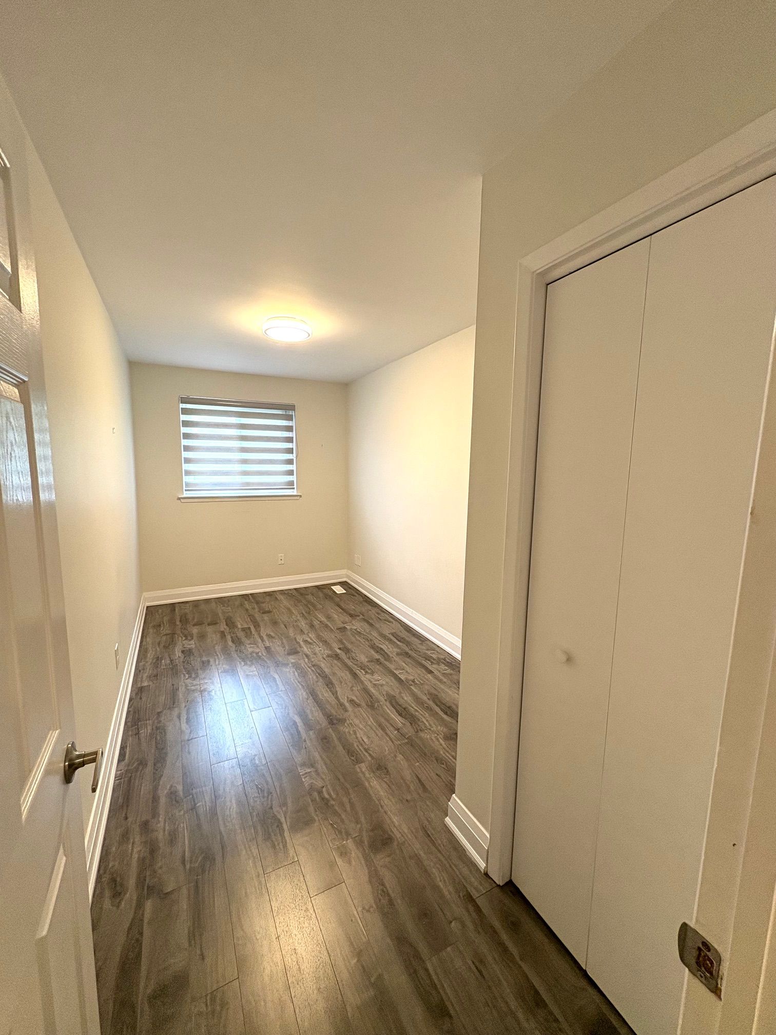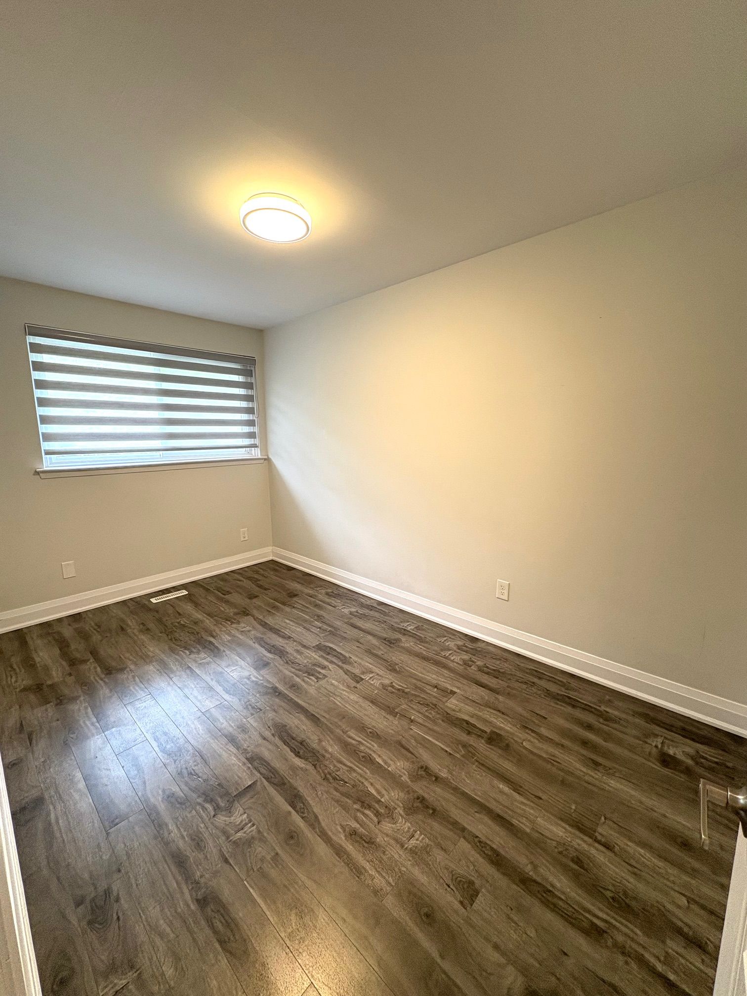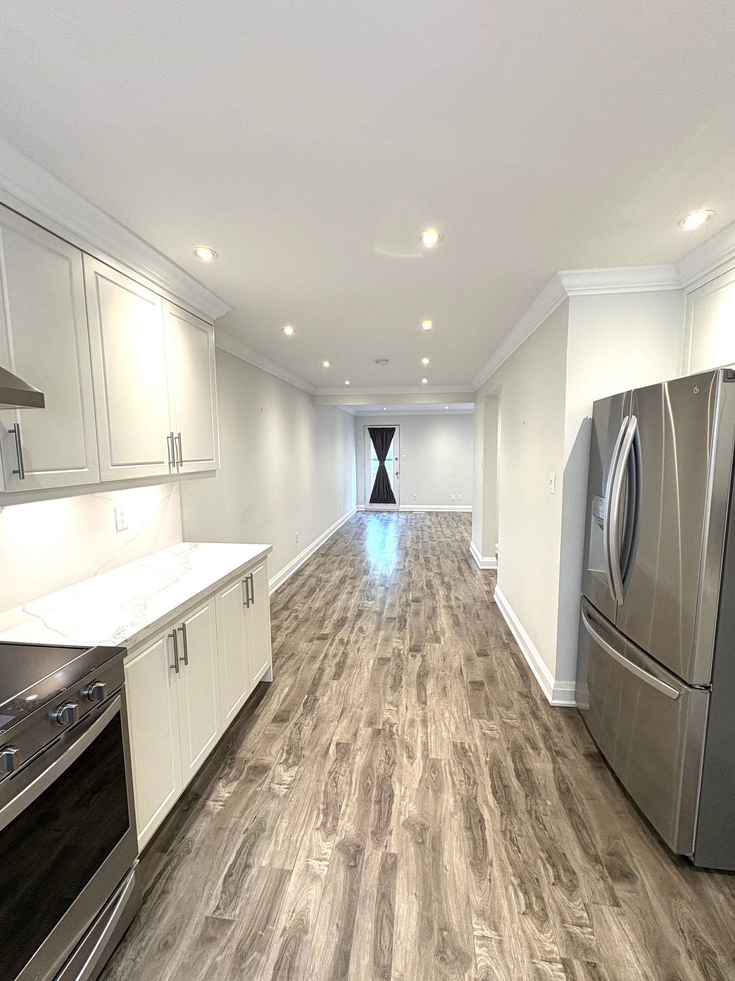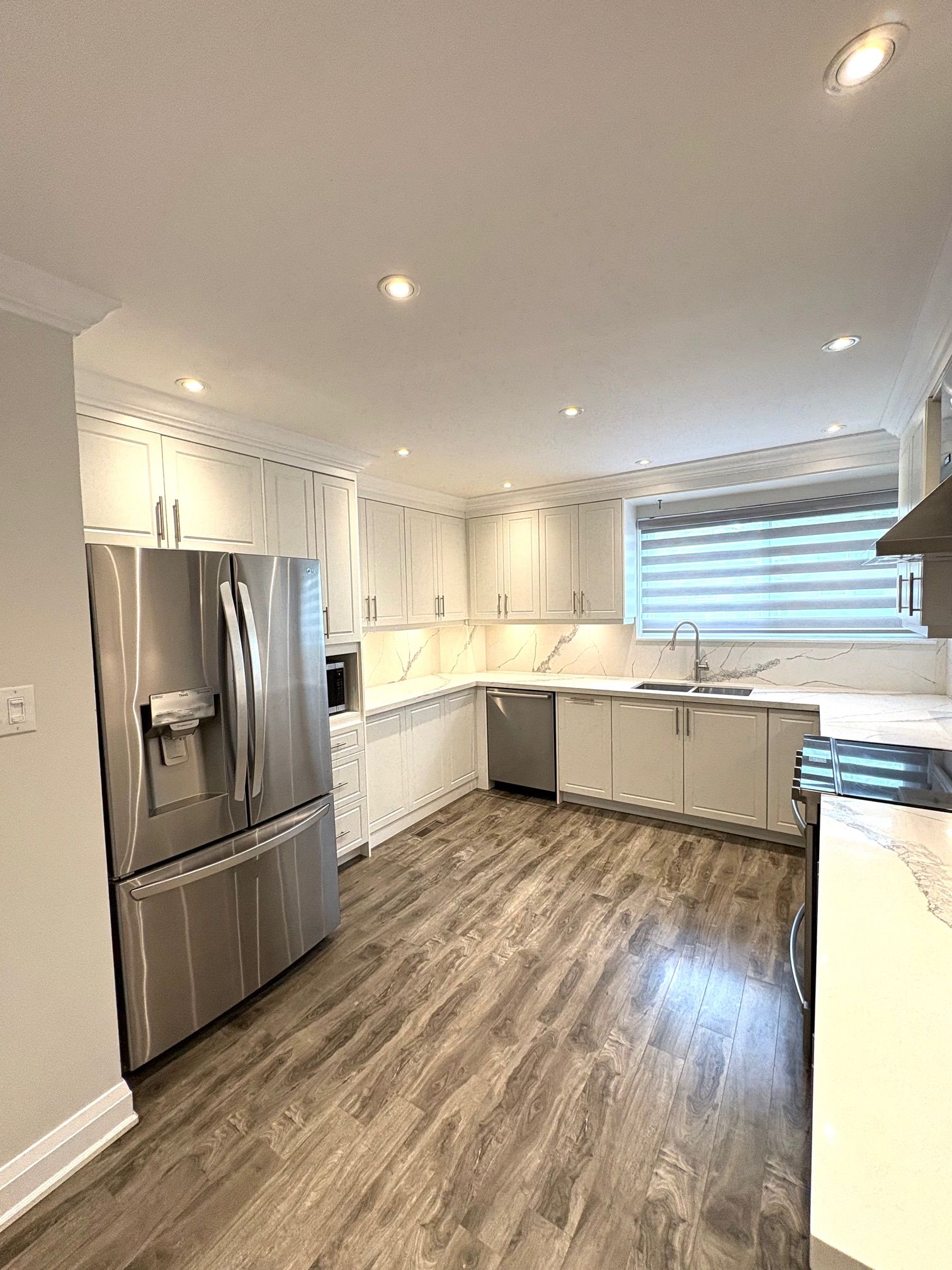 • Bright and well-maintained with a modern white kitchen.