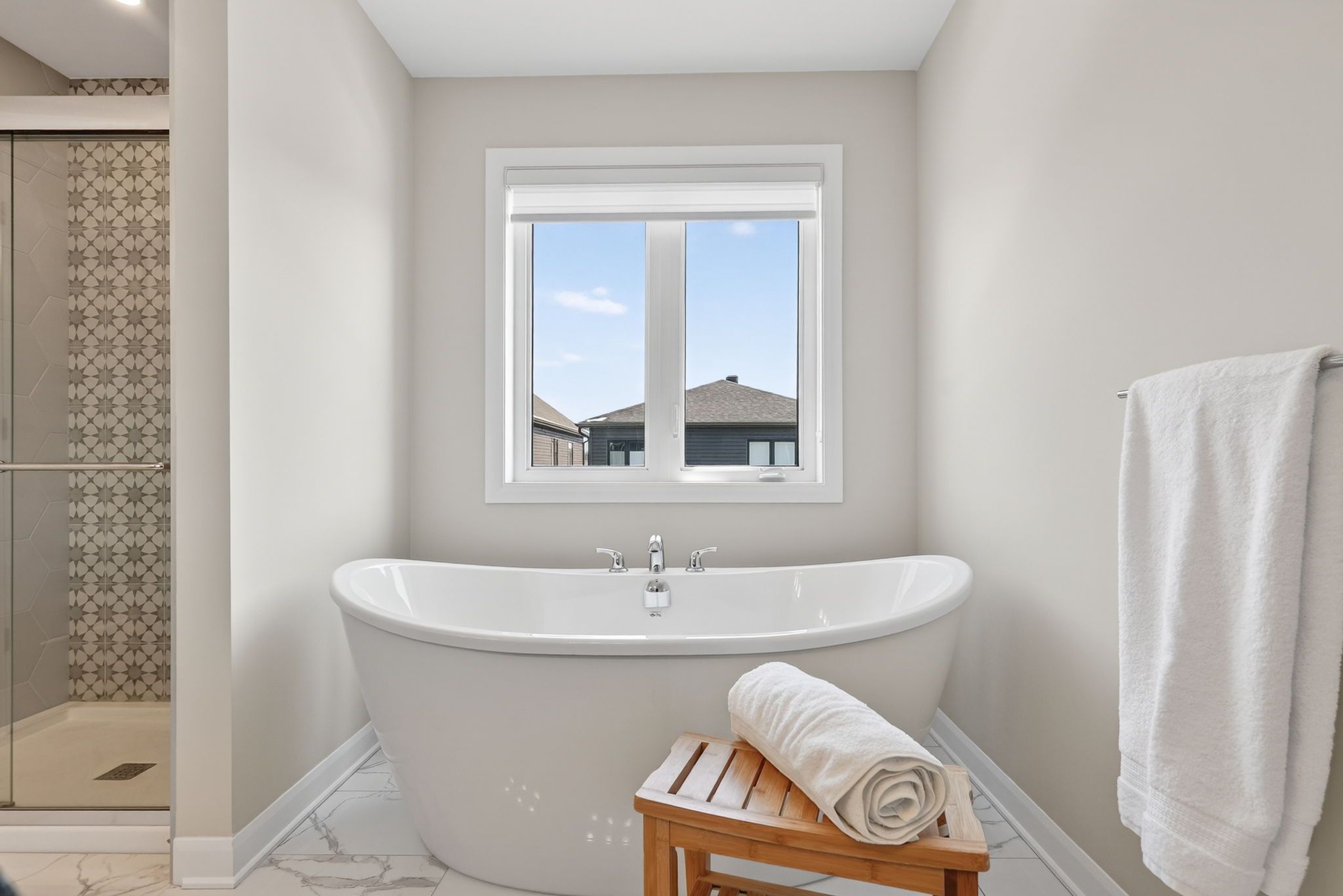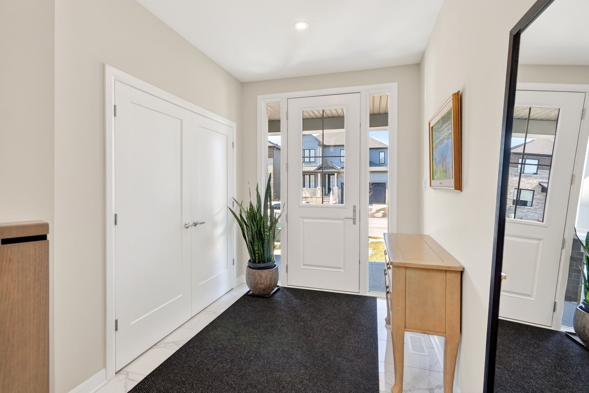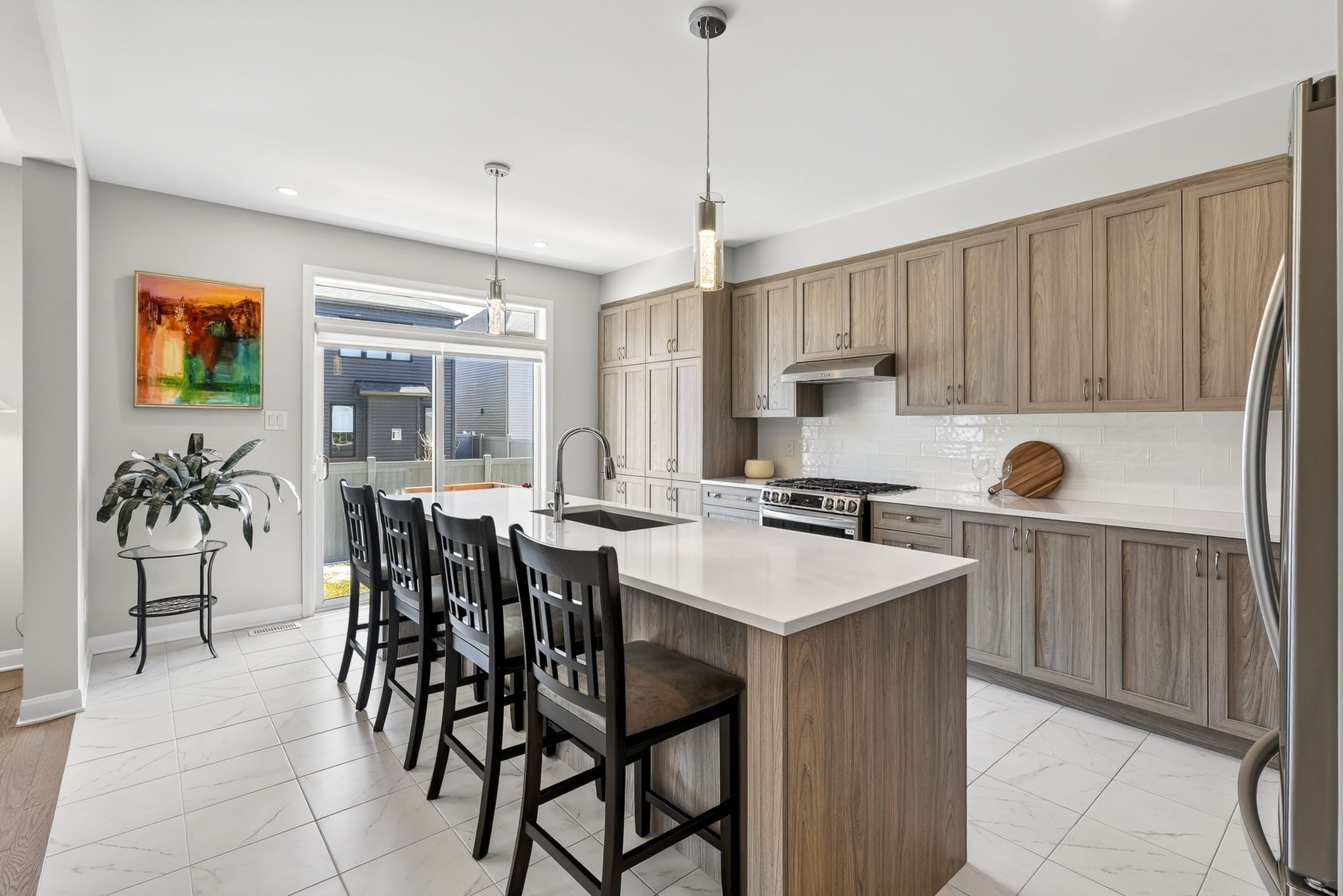 Welcome to 548 anchor circle, a contemporary 4-bedroom/2. 5-bathroom minto "sugarplum" model offering nearly 2,500 sq ft of refined living in the sought-after mahogany community of manotick. Built in 2023 and lightly lived in, this home offers the feel of brand-new construction, without the wait! Thoughtfully upgraded throughout, highlights include extended kitchen cabinetry, an oversized centre island with seating for four, designer tile selections, and upgraded hardwood and carpeting. The heart of the home is a beautiful, well-appointed kitchen featuring quartz countertops, stainless steel appliances, a gas stove, tiled backsplash, and extensive cabinetry, opening seamlessly into a bright, open-concept great room with 9' ceilings, rich hardwood flooring, and gas fireplace. The main level also offers a private office with french doors, a formal dining room, powder room, and mudroom with access to the double car garage. Upstairs, the spacious primary retreat is privately tucked at the rear of the home and features a large walk-in closet and an inviting 5-piece ensuite with a soaker tub, walk-in shower, double-sink vanity and upgraded tile finishes. Three additional generously sized bedrooms, a full bathroom, and convenient second-floor laundry complete the upper level. Set on a quiet street just steps from the neighbourhood park, this home is perfectly positioned within the community. Mahogany offers a balanced, family-friendly lifestyle with access to scenic green space, playgrounds, walking trails, and just a short 10-minute stroll to the charm of manotick village, with its boutique shops, cafés, restaurants, and access to the rideau river. A home and community to build cherished family memories awaits!