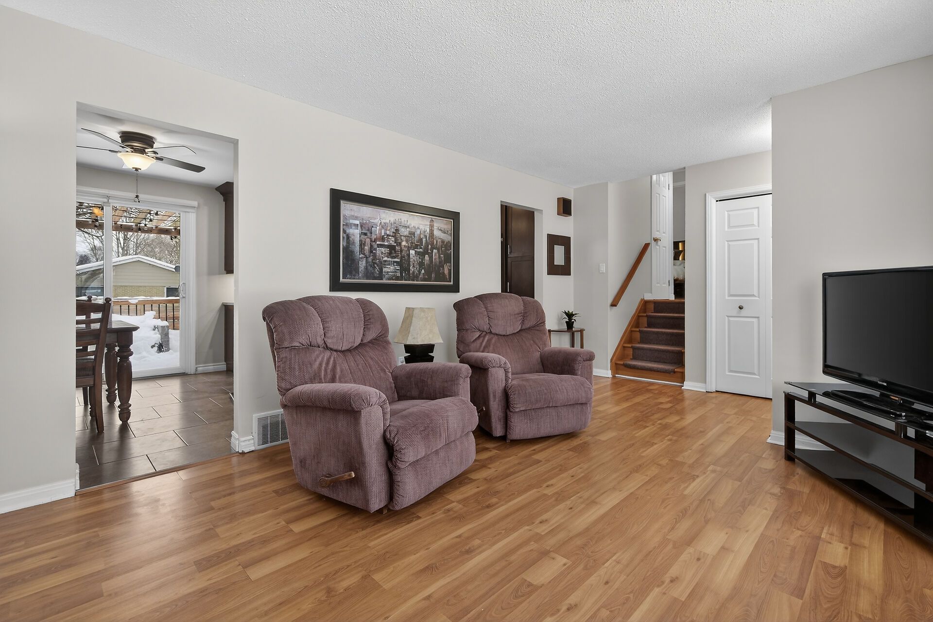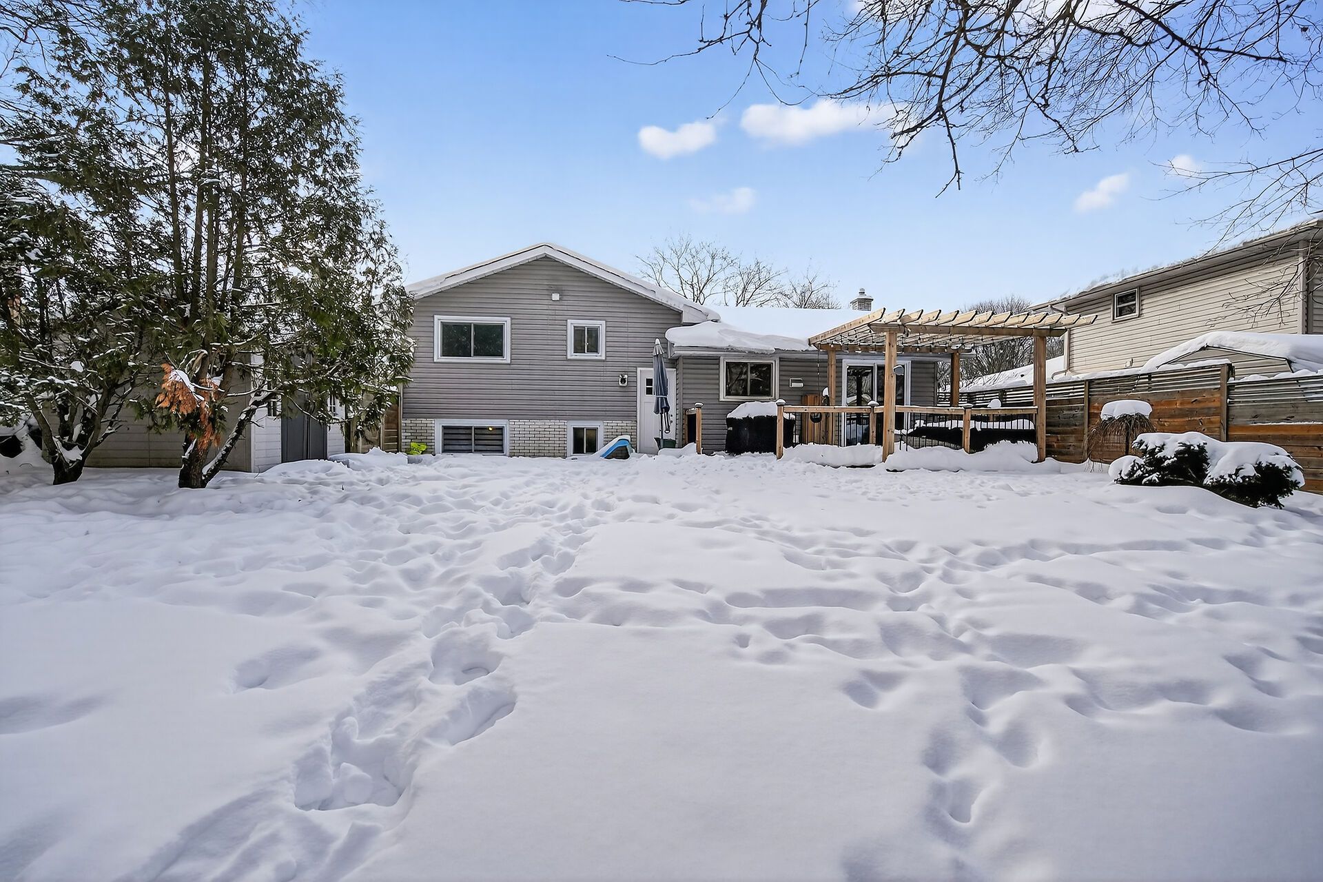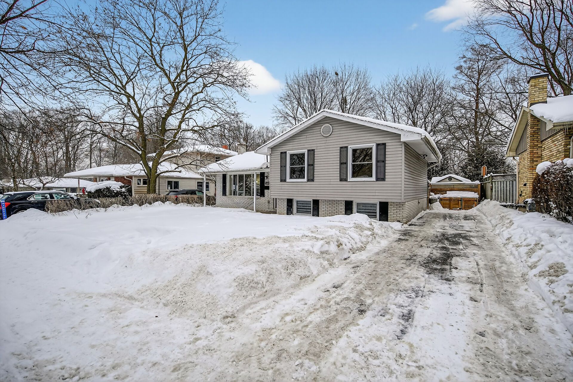 Step into this beautiful 3 bedroom, 2 bath, 4 level side-split in desirable byron where thoughtful updates meet everyday comfort! The heart of this home is the bright spacious living room which is next to the stunning kitchen and dining area expertly renovated by millennium design. A removed wall creates a great flow and highlights the gorgeous kitchen cabinets with elegant crown molding, gleaming granite counters and a convenient peninsula style island, perfect for meal prep and casual dining. The large format floor tiles bring a modern touch. A new patio door opens to your spacious pressure treated deck complete with a gas hookup for bbqs - ideal for summer entertaining! Inviting neutral tones create a warm, welcoming atmosphere. There is laminate flooring in the living room and hardwood in the three second floor bedrooms. Both bathrooms have been tastefully updated - the main 4 piece bath boasts a sleek tiled shower, modern vanity, and a space saving pocket door was added, while the lower 3 piece bath charms with funky patterned black and white floor tiles. The versatile 3rd level family room features an electric fireplace insert and wet bar, perfect for movie nights or entertaining guests. The 4th level offers fantastic bonus space - use it for storage, a home gym or a hobby area. Outside, the newer privacy fence creates a safe haven for kids and pets, while the lane way accommodates three vehicles. Located just steps from parks, boler ski hill, scenic walking trails and top-rated schools, this home is perfect for young couples or established families. Pride of ownership is evident throughout & notable updates include: roof (2022), furnace (2018), owned water heater (2022), most windows plus interior & exterior doors have been replaced. This cherished home is ready for your family's next chapter! (matterport sqft above grade 1,073, 3rd level sqft 565)