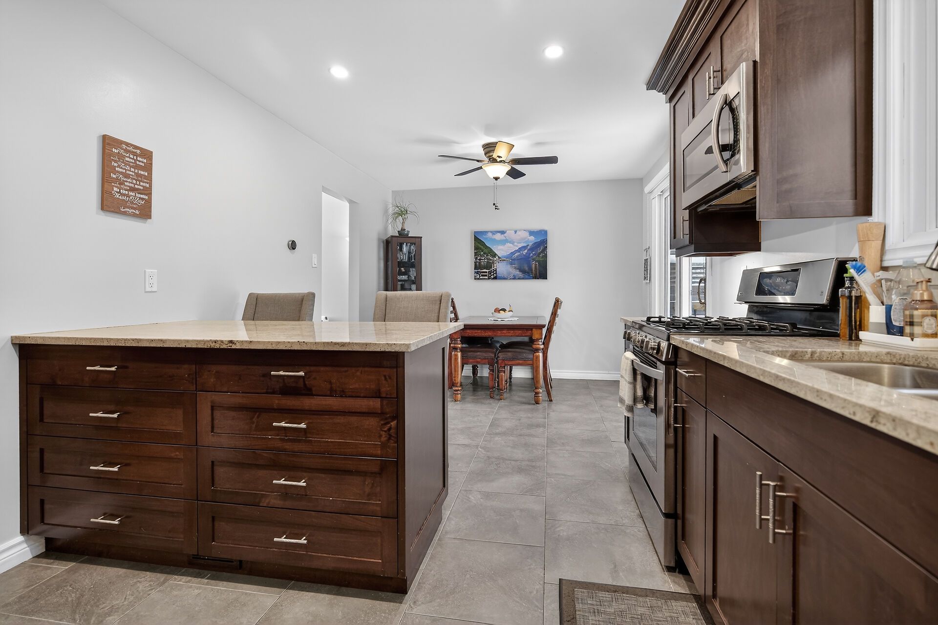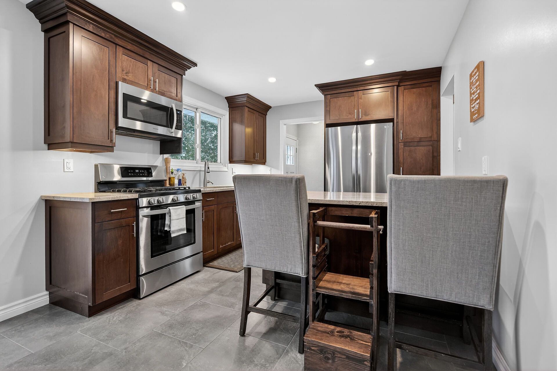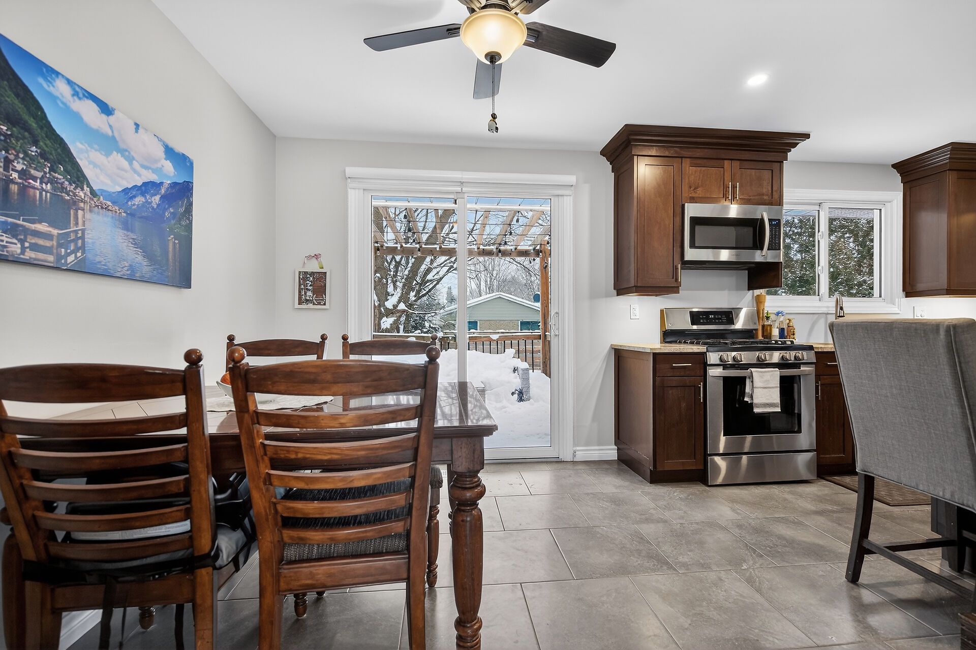 Step into this beautiful 3 bedroom, 2 bath, 4 level side-split in desirable byron where thoughtful updates meet everyday comfort! The heart of this home is the bright spacious living room which is next to the stunning kitchen and dining area expertly renovated by millennium design. A removed wall creates a great flow and highlights the gorgeous kitchen cabinets with elegant crown molding, gleaming granite counters and a convenient peninsula style island, perfect for meal prep and casual dining. The large format floor tiles bring a modern touch. A new patio door opens to your spacious pressure treated deck complete with a gas hookup for bbqs - ideal for summer entertaining! Inviting neutral tones create a warm, welcoming atmosphere. There is laminate flooring in the living room and hardwood in the three second floor bedrooms. Both bathrooms have been tastefully updated - the main 4 piece bath boasts a sleek tiled shower, modern vanity, and a space saving pocket door was added, while the lower 3 piece bath charms with funky patterned black and white floor tiles. The versatile 3rd level family room features an electric fireplace insert and wet bar, perfect for movie nights or entertaining guests. The 4th level offers fantastic bonus space - use it for storage, a home gym or a hobby area. Outside, the newer privacy fence creates a safe haven for kids and pets, while the lane way accommodates three vehicles. Located just steps from parks, boler ski hill, scenic walking trails and top-rated schools, this home is perfect for young couples or established families. Pride of ownership is evident throughout & notable updates include: roof (2022), furnace (2018), owned water heater (2022), most windows plus interior & exterior doors have been replaced. This cherished home is ready for your family's next chapter! (matterport sqft above grade 1,073, 3rd level sqft 565)