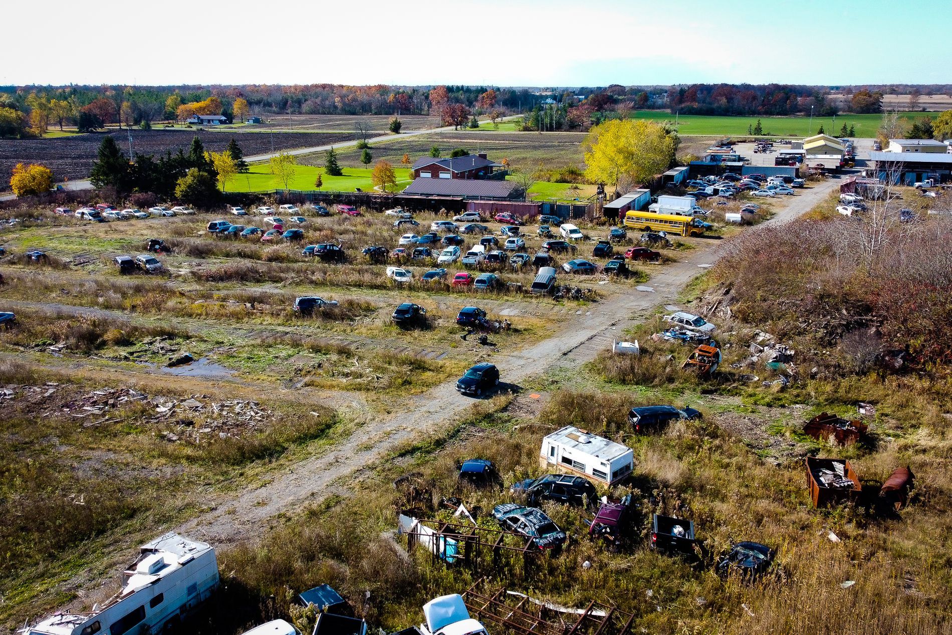Your chance to acquire in the haldimand countryside a mixed use opportunity of 30+ acres including established automotive operations with agriculturalland and numerous development possibilities in a rural yet accessible location. The fully licensed auto recycling operation has further potential to expandto truck parking, heavy vehicle and equipment storage, animal kennels usage, construction of a custom dwelling on green space, construction of airstripand hanger and more subject to necessary permits. Three various buildings offer 1, mechanic/body shop/dealership (about 2700sq ft) 2, offices/storage(about 2000sq ft) 3, storage shell (about 2000sq ft) plus other storage units are currently on site. Similar business has operated on this site for many years previously. Current tenant in one building + 1 acre of land is willing to stay offering immediate income to the new owner. Current licensed permitted uses,10+ acres permitted as auto wrecking. Sale of used parts, dealership auto sales, auto repairs, scrap metal salvage 10 acres agriculture and 10 acres bush. Owner has ucda, omvic licenses. Property is currently zoned agricultural with legal non conforming salvage yard. Two entrances to theproperty from junction rd currently.