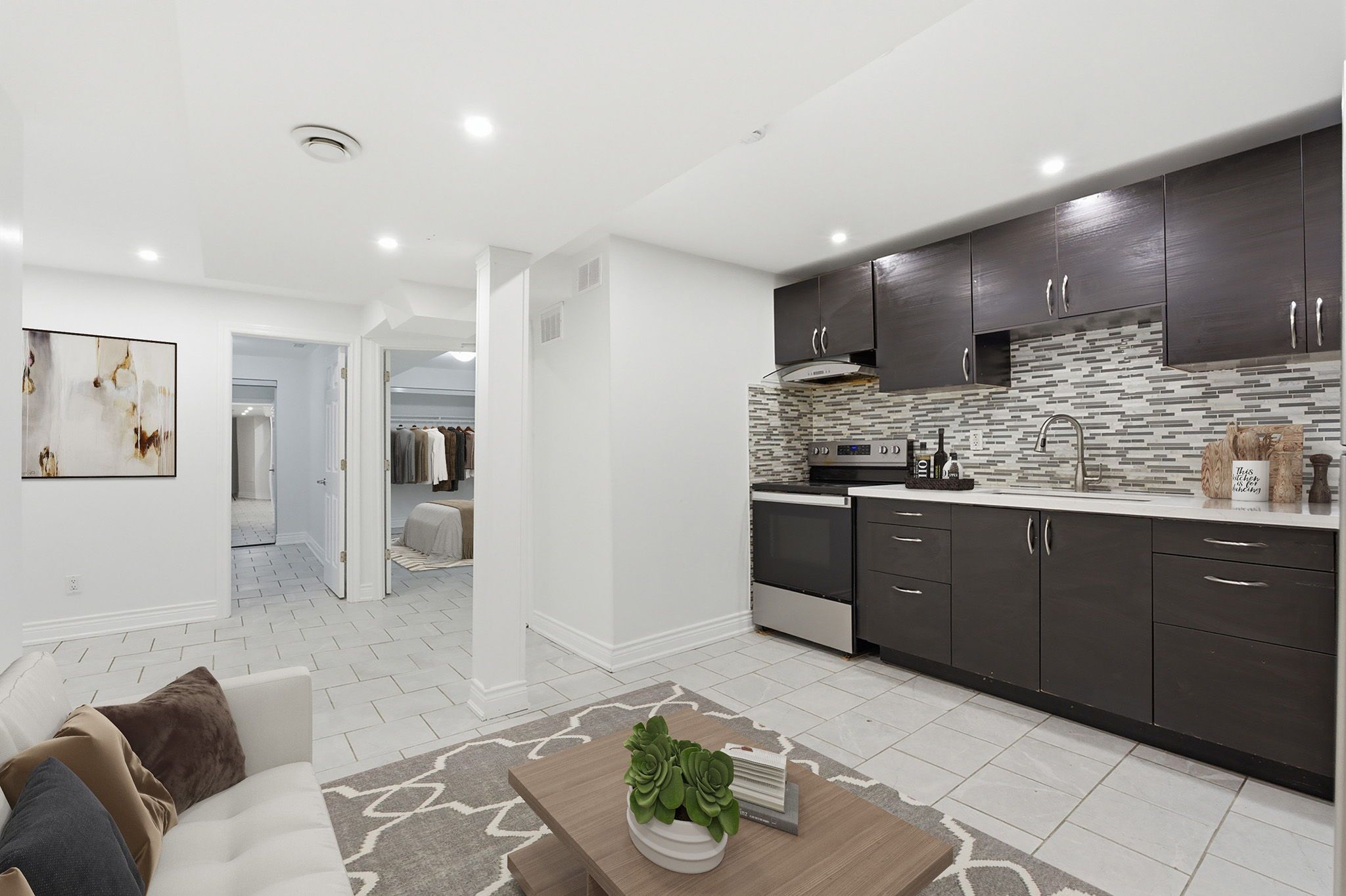 • Stylish open layout with a contemporary kitchen and quartz countertops.