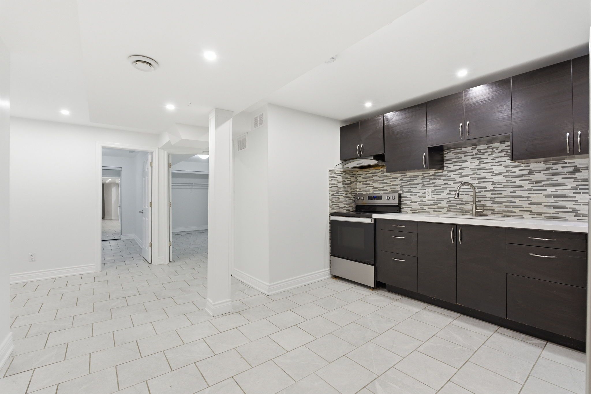 **this is a legal lower level suite that is registered with the city.** 5487 cosmic cres offers a rare combination of style and function, featuring its own private side entrance and a thoughtfully designed open layout. The contemporary kitchen is outfitted with sleek quartz countertops and stainless steel appliances, complemented by bright pot lights throughout. With two generously sized bedrooms, a modern 3-piece bathroom, and the ultimate convenience of dedicated in-suite laundry, this space feels entirely independent. Ideally situated just 10 minutes from the bustling heartland town centre and square one, you'll enjoy easy access to the 401, 403, and the upcoming hurontario lrt in a quiet, highly sought-after neighbourhood.