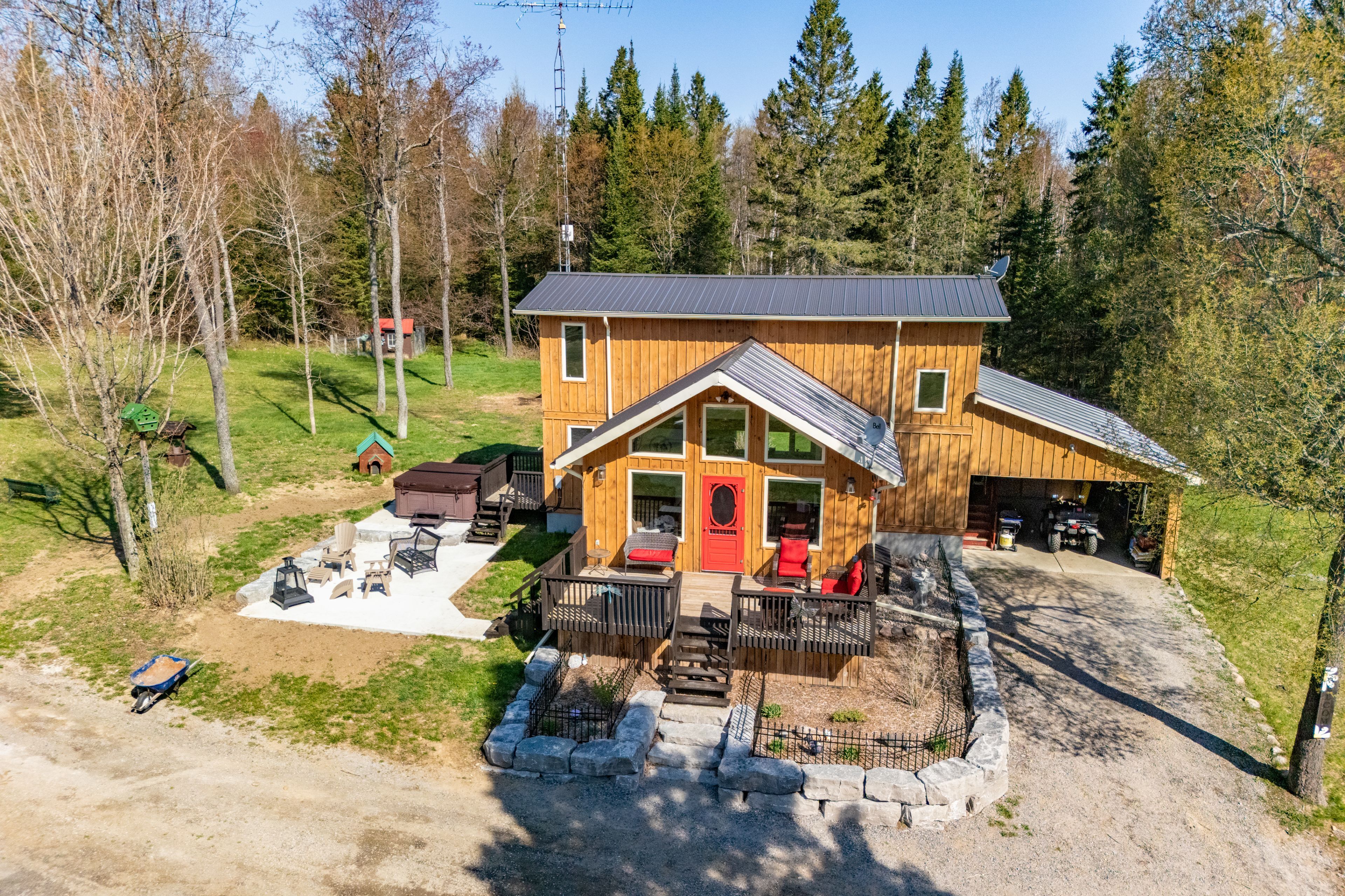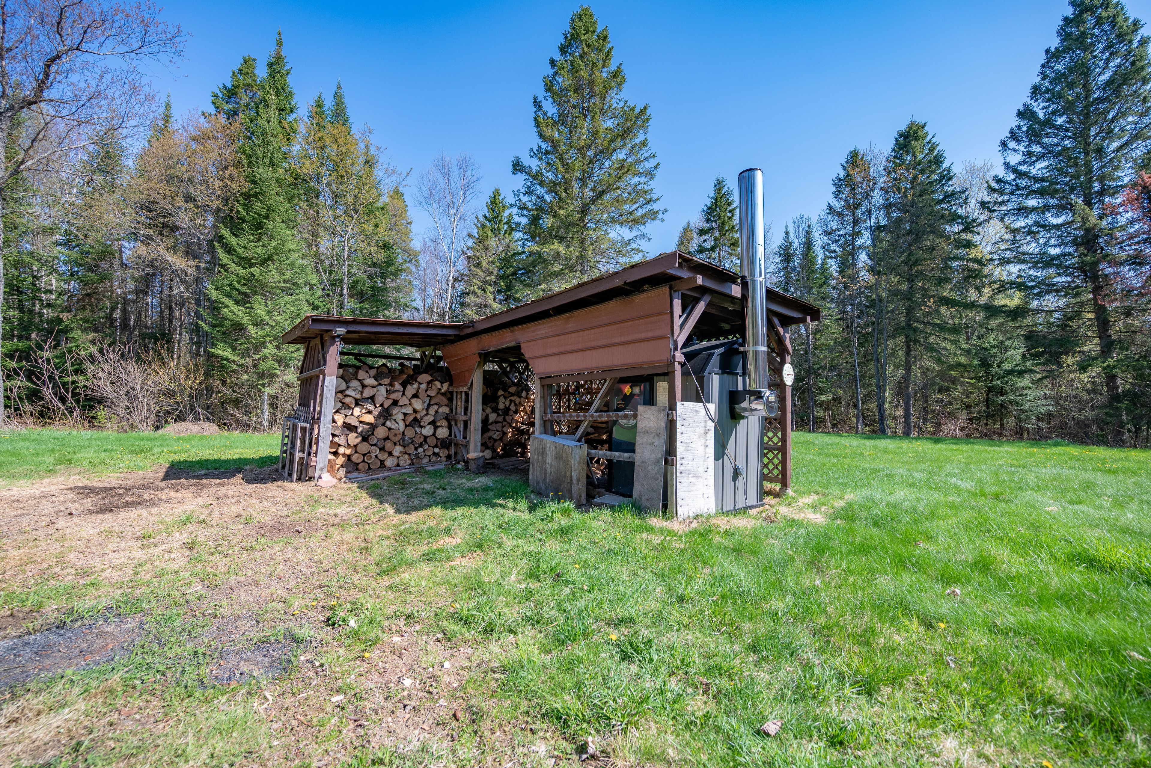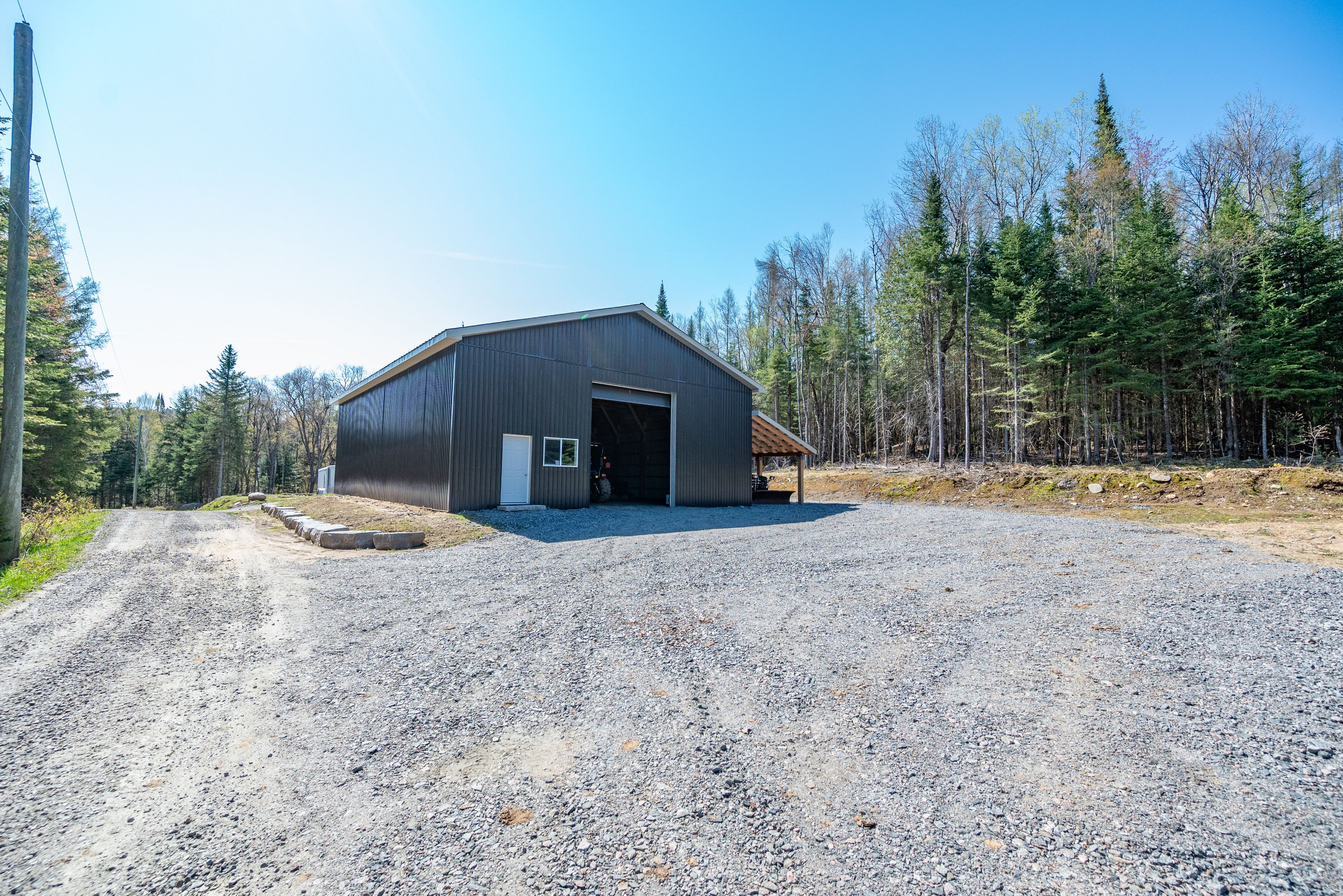 Your oasis of dreams awaits your arrival. A hot tub for those star gazing nights, a huge shop for those many projects to complete or invent. A network of trails to hike, atv, snowmobile or even horseback ride. The trees not only allow for the recreational aspects but many maples invite syrup harvesting in the spring. A babbling brook flows through the property and is populated with brook trout for those awesome morning breakfasts. You can hike or atv back to the clearing on the hill where at night you can see the moon or gaze at the heavens above. The 197 acre land houses many wildlife species including white tail deer, moose, ruffed grouse, wild turkey, rabbits, and those other animals who make the forest their home. Firewood abounds throughout and there is opportunity for marketable timber. A main floor of extravaganza to dine or entertain distinguished guests and a downstairs of leisure and fun. A wine cellar is tucked away under the stairs for those special nights or occasions. Privacy like no other and still within minutes to the amenities the village of bancroft beholds. Three garage spaces to house your toys or keep your special auto in the new 60x40 garage including 16ft ceilings, from the elements. The garage located left to the house encompasses a bunkie to keep your special guests comfy and warm. Also equipped with propane generac generator, air conditioning by two heat pumps, and outdoor wood fired boiler to keep you acclimatized no matter the outside weather. This property has the ultimate of enjoyment for the activities that few get to realize. There are numerous maple trees ideal for a syrup opperation or just for personal use and enjoyment.