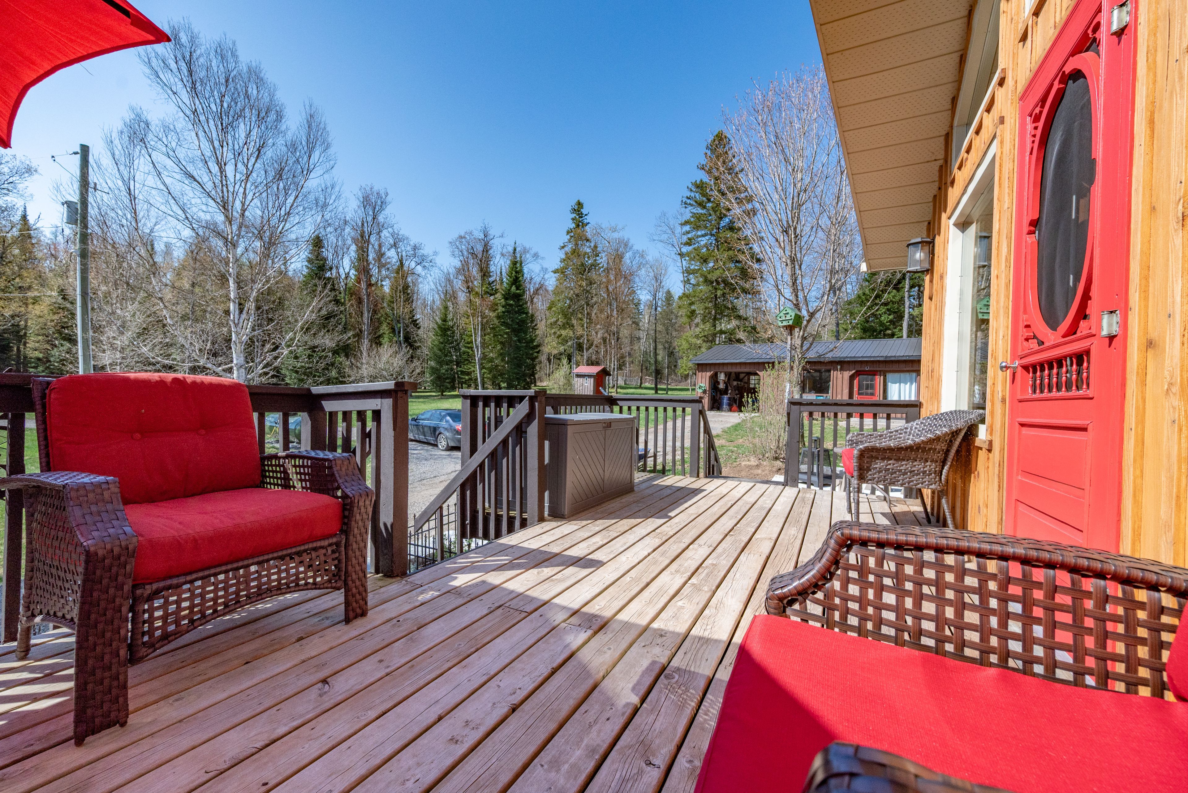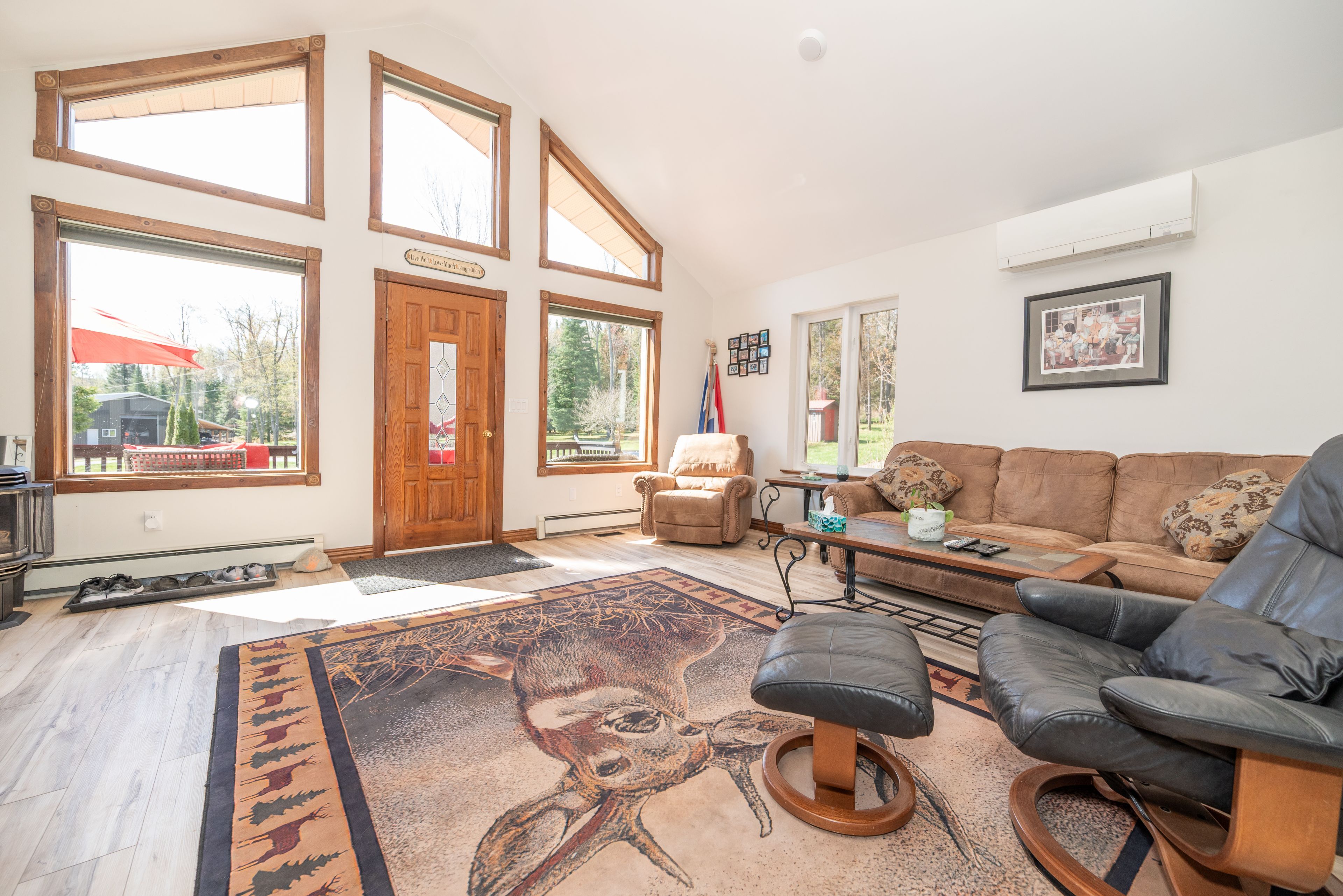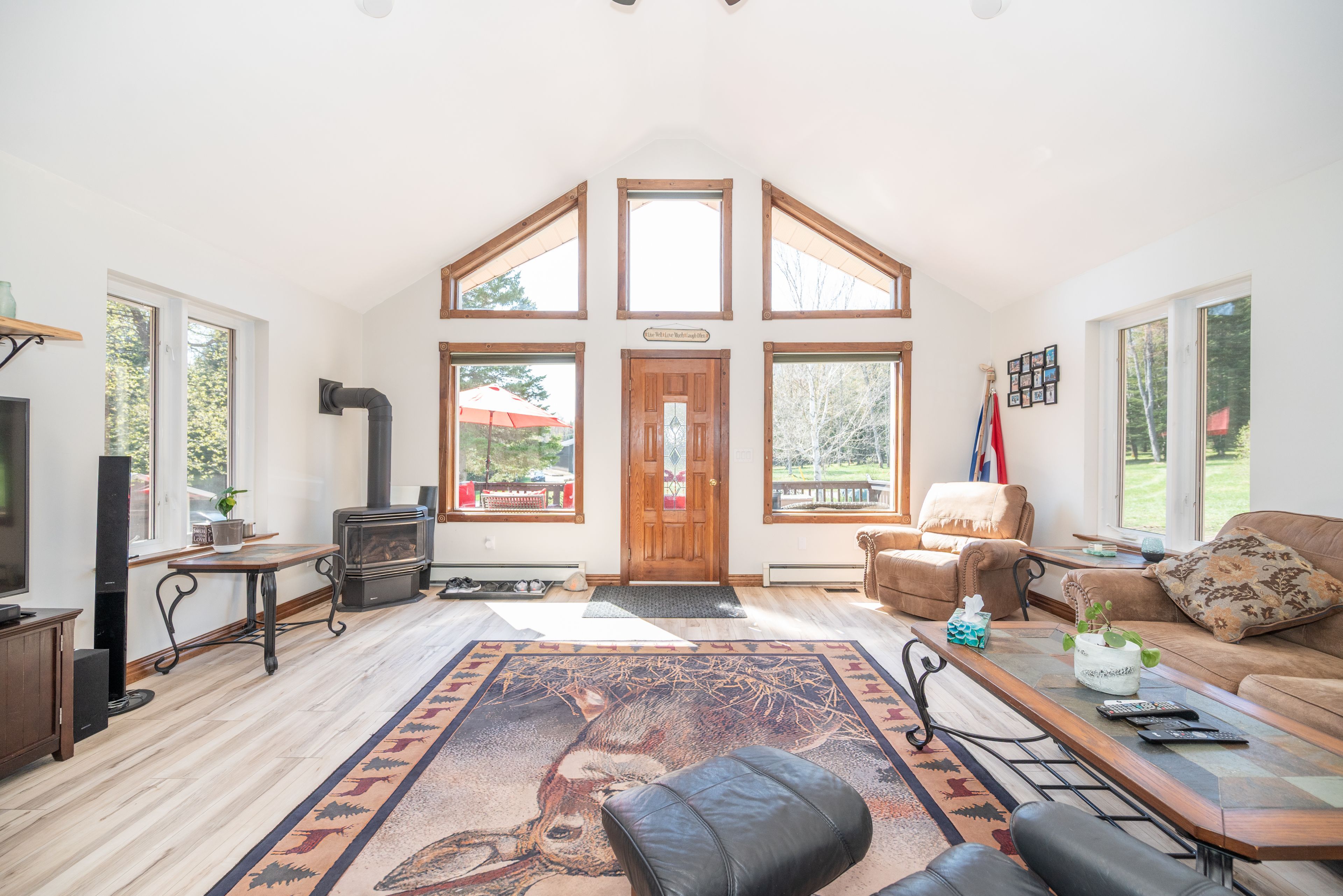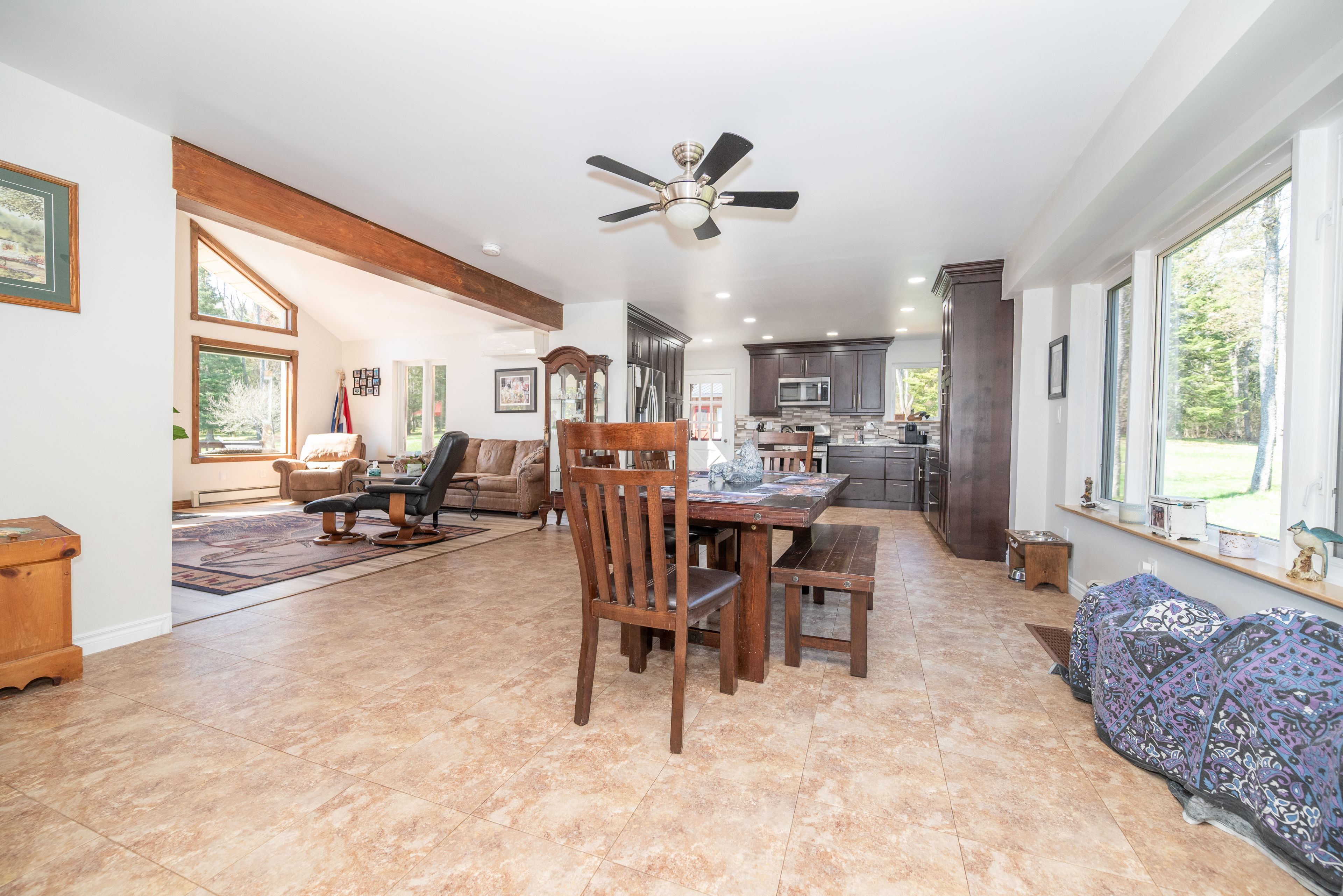 Your oasis of dreams awaits your arrival. A hot tub for those star gazing nights, a huge shop for those many projects to complete or invent. A network of trails to hike, atv, snowmobile or even horseback ride. The trees not only allow for the recreational aspects but many maples invite syrup harvesting in the spring. A babbling brook flows through the property and is populated with brook trout for those awesome morning breakfasts. You can hike or atv back to the clearing on the hill where at night you can see the moon or gaze at the heavens above. The 197 acre land houses many wildlife species including white tail deer, moose, ruffed grouse, wild turkey, rabbits, and those other animals who make the forest their home. Firewood abounds throughout and there is opportunity for marketable timber. A main floor of extravaganza to dine or entertain distinguished guests and a downstairs of leisure and fun. A wine cellar is tucked away under the stairs for those special nights or occasions. Privacy like no other and still within minutes to the amenities the village of bancroft beholds. Three garage spaces to house your toys or keep your special auto in the new 60x40 garage including 16ft ceilings, from the elements. The garage located left to the house encompasses a bunkie to keep your special guests comfy and warm. Also equipped with propane generac generator, air conditioning by two heat pumps, and outdoor wood fired boiler to keep you acclimatized no matter the outside weather. This property has the ultimate of enjoyment for the activities that few get to realize. There are numerous maple trees ideal for a syrup opperation or just for personal use and enjoyment.