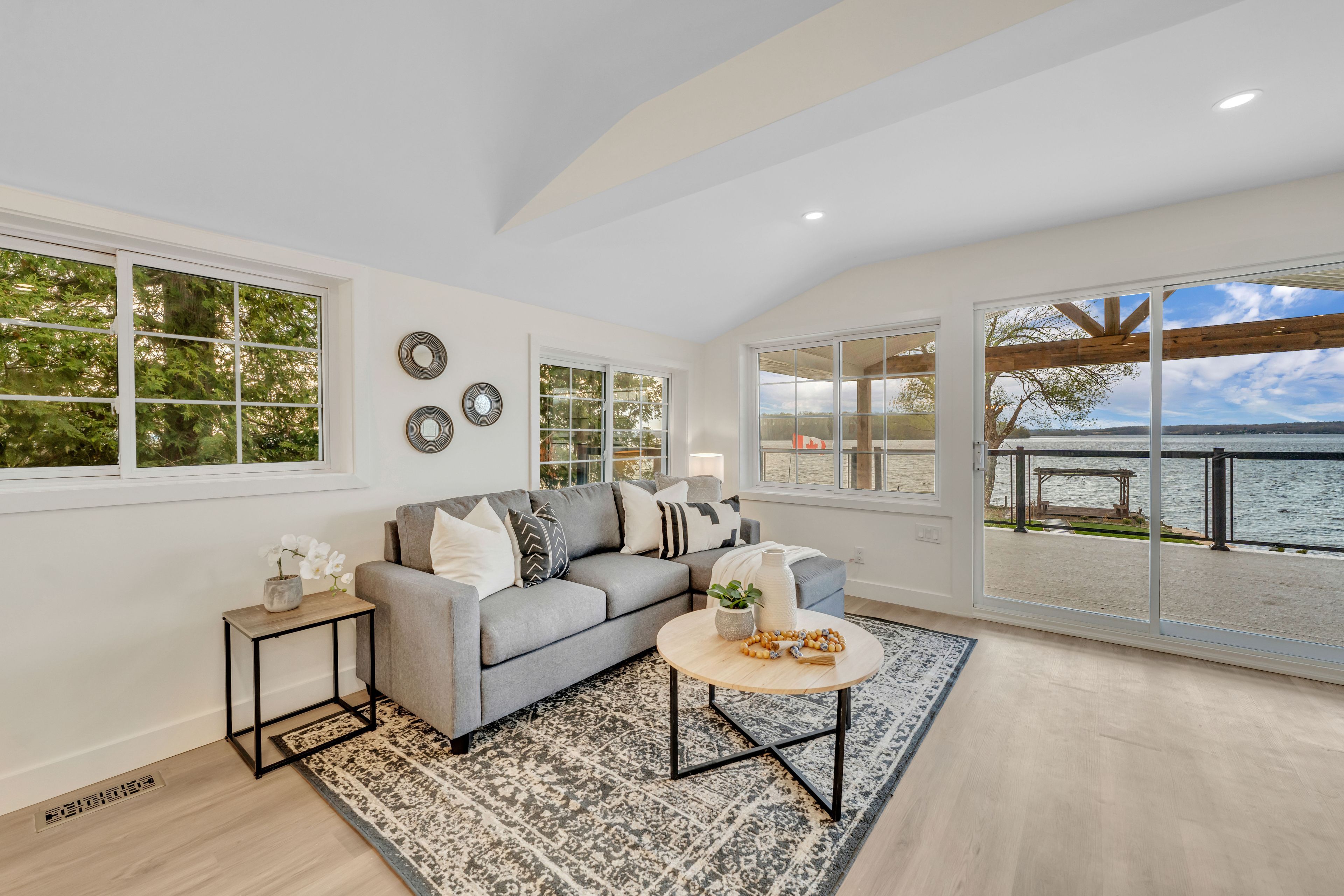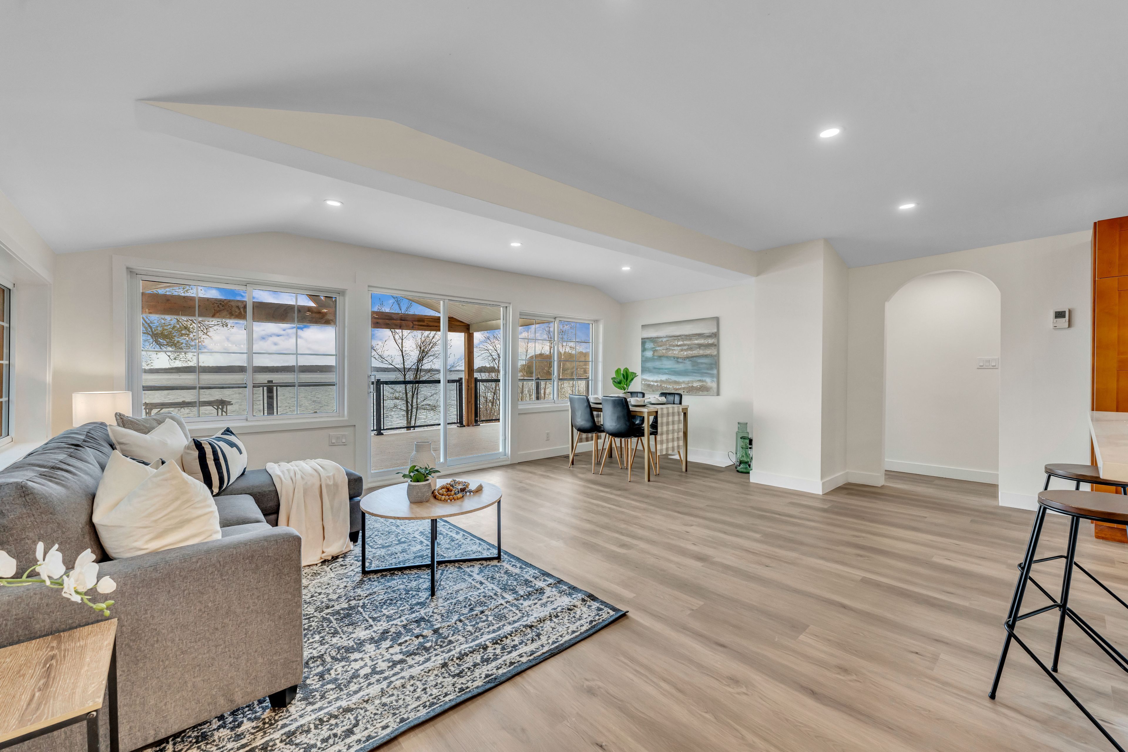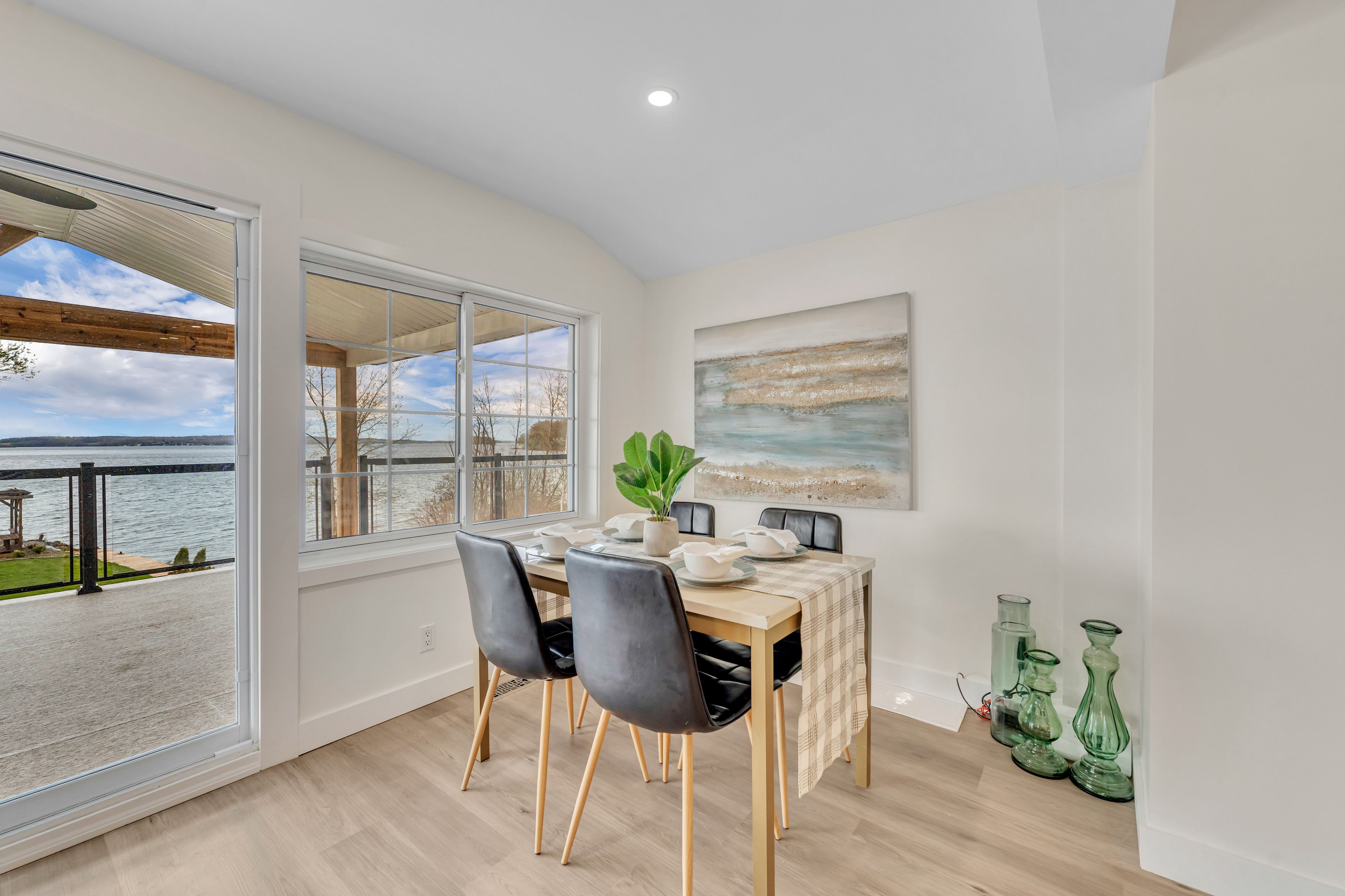 • Turn-key home with stunning panoramic lake views and private water access.