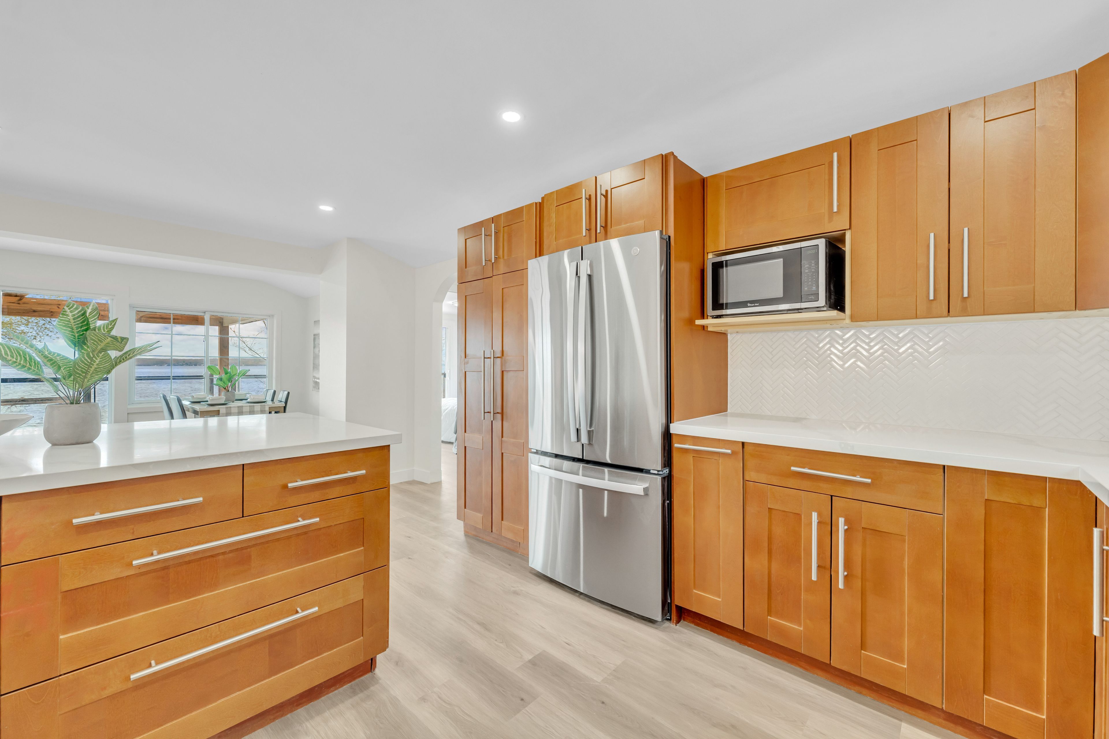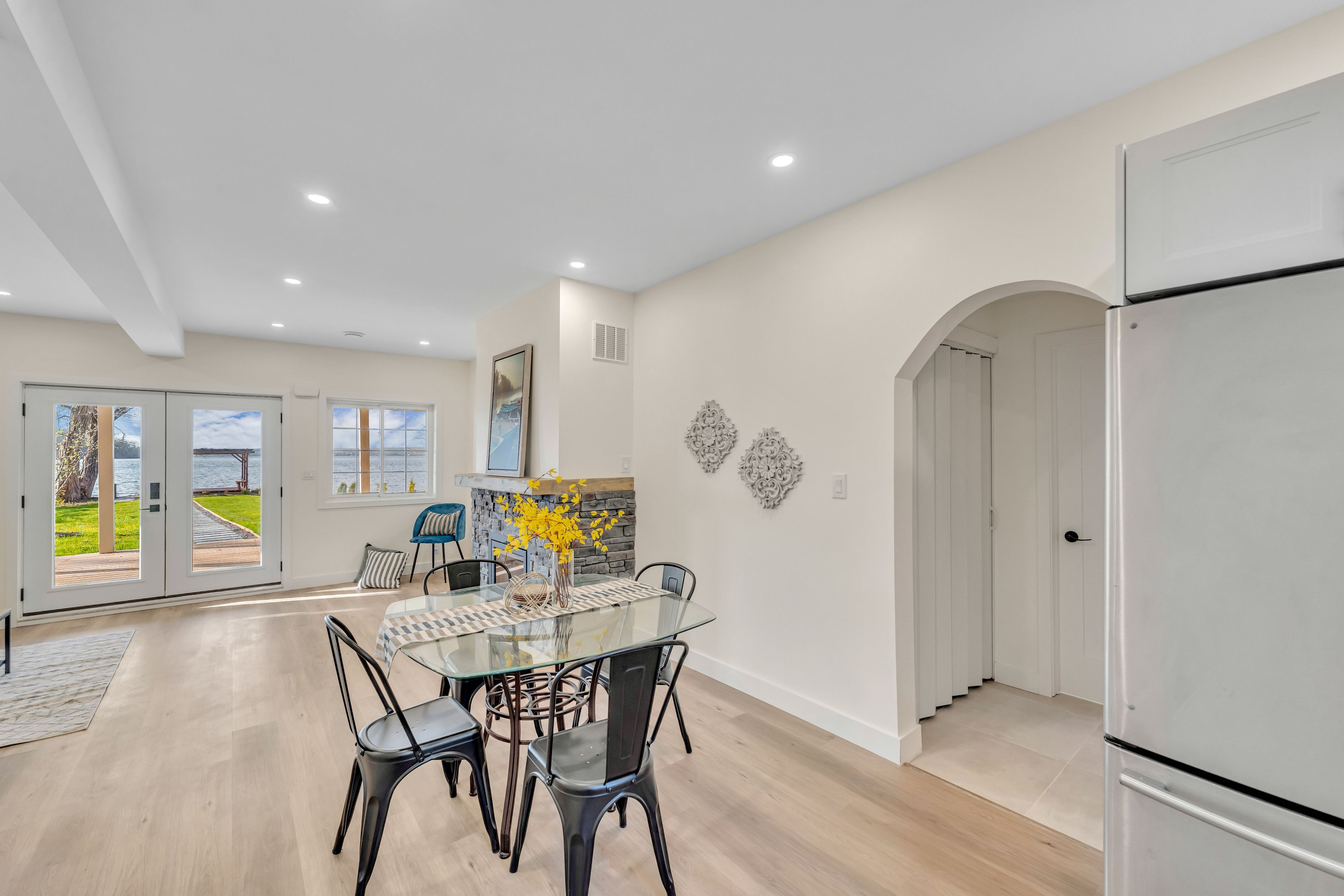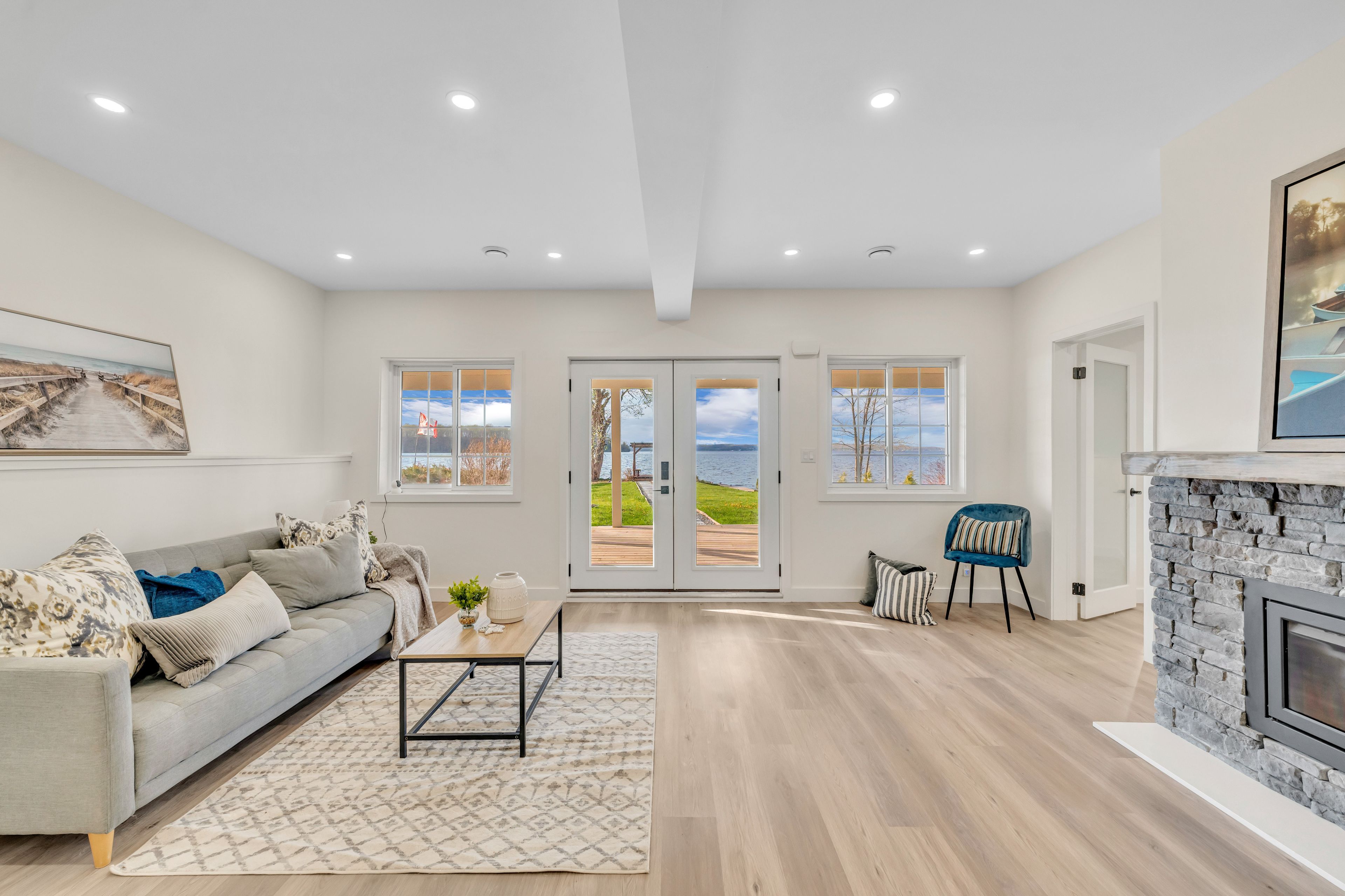 • Turn-key home with stunning panoramic lake views and private water access.