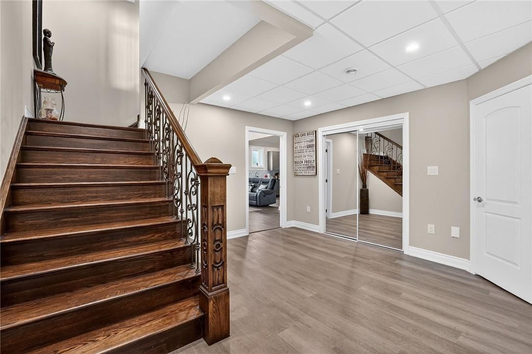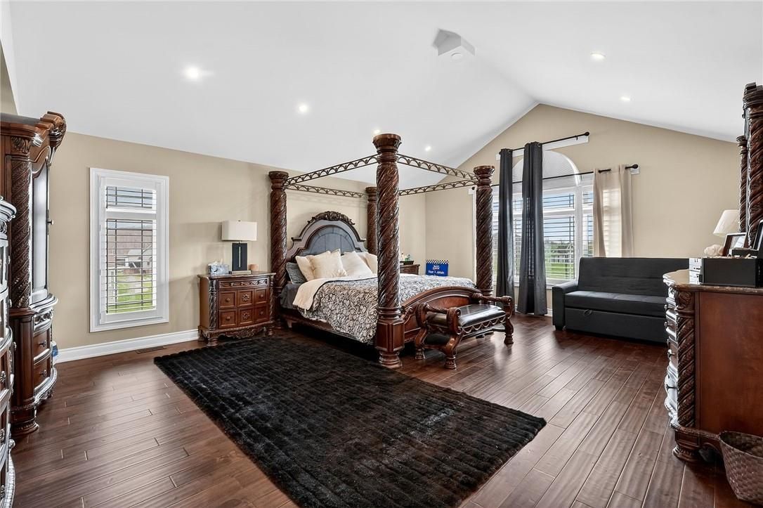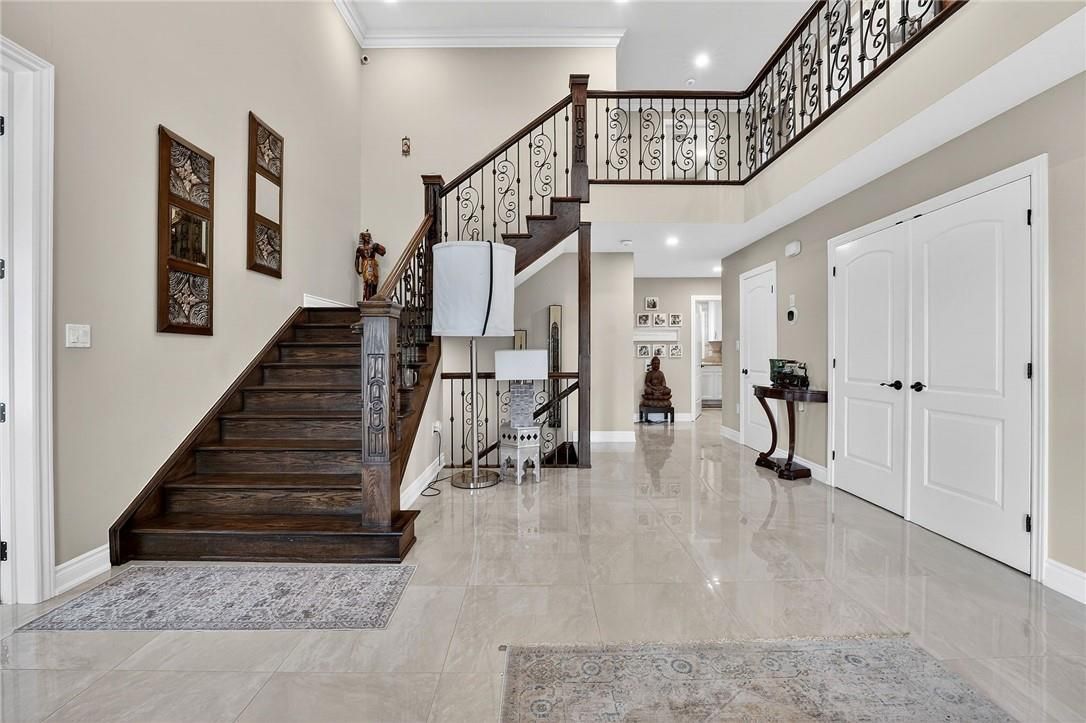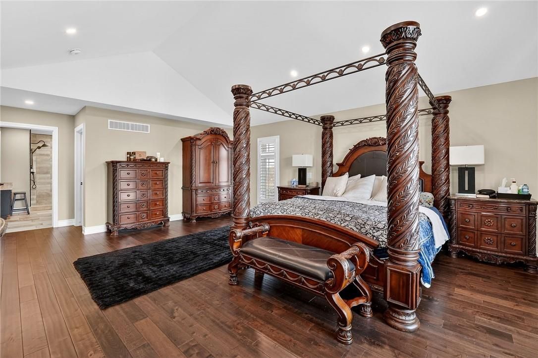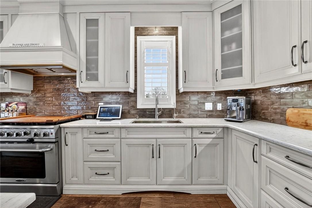 This custom built home commands attention. Set on a spacious 1 acre lot in the community of st. Anns, this stunning 2-storey home delivers over 6,500 sq ft of living space and two in-law suites that are ideal for multi-generational living. This home combines scale, craftsmanship, and a level of interior finish rarely found at any price point in west lincoln. From the moment you step inside, the level of craftsmanship is evident. A grand two-storey foyer features polished tile and a dark hardwood staircase with iron spindles. The main level flows seamlessly between the great room, kitchen, and dining area. The chef's kitchen is a true showpiece: custom soft-grey cabinetry, a large quartz island, professional-grade gas range, double wall oven, and built-in fridge/freezer - with direct walk-out access to a covered outdoor sitting area. Inside or outside, this space was built to entertain. The family room is anchored by a cathedral ceiling, arched transom window, gas fireplace, and built-in media cabinetry. The main floor also features a dedicated home office, den, 3-piece bathroom, laundry room & mud room. The generous primary suite has engineered hardwood floors and a spa-quality ensuite complete with a freestanding soaker tub, frameless glass shower with dual shower heads, a double vanity with dark cabinetry and granite counters. Additional bedrooms are well-sized with engineered hardwood floors and quality finishes. A 5-piece bathroom serves the upper level with a tub and shower combination and double vanity. The finished walk-out basement is home to two completely self-contained in-law suites - each featuring a private kitchen, open-concept living area, bedroom, and full bathroom. The property also includes an attached garage with parking for 3 cars, a large private driveway, a covered front porch, and a shed. Two furnaces service different portions of the home, while one tankless hot water tank services the whole home.