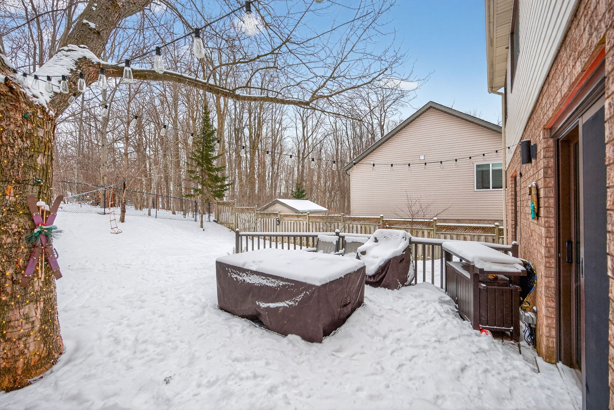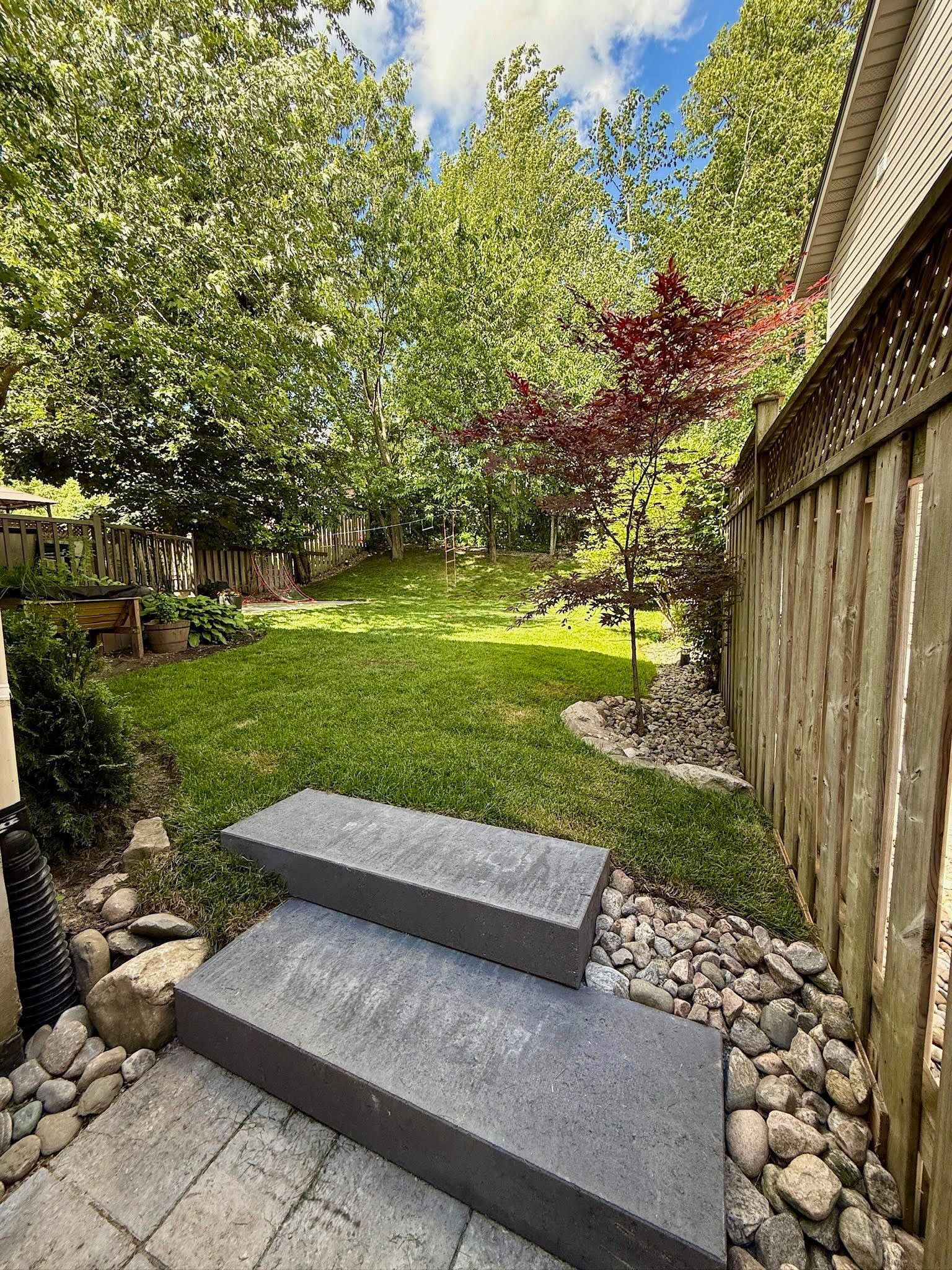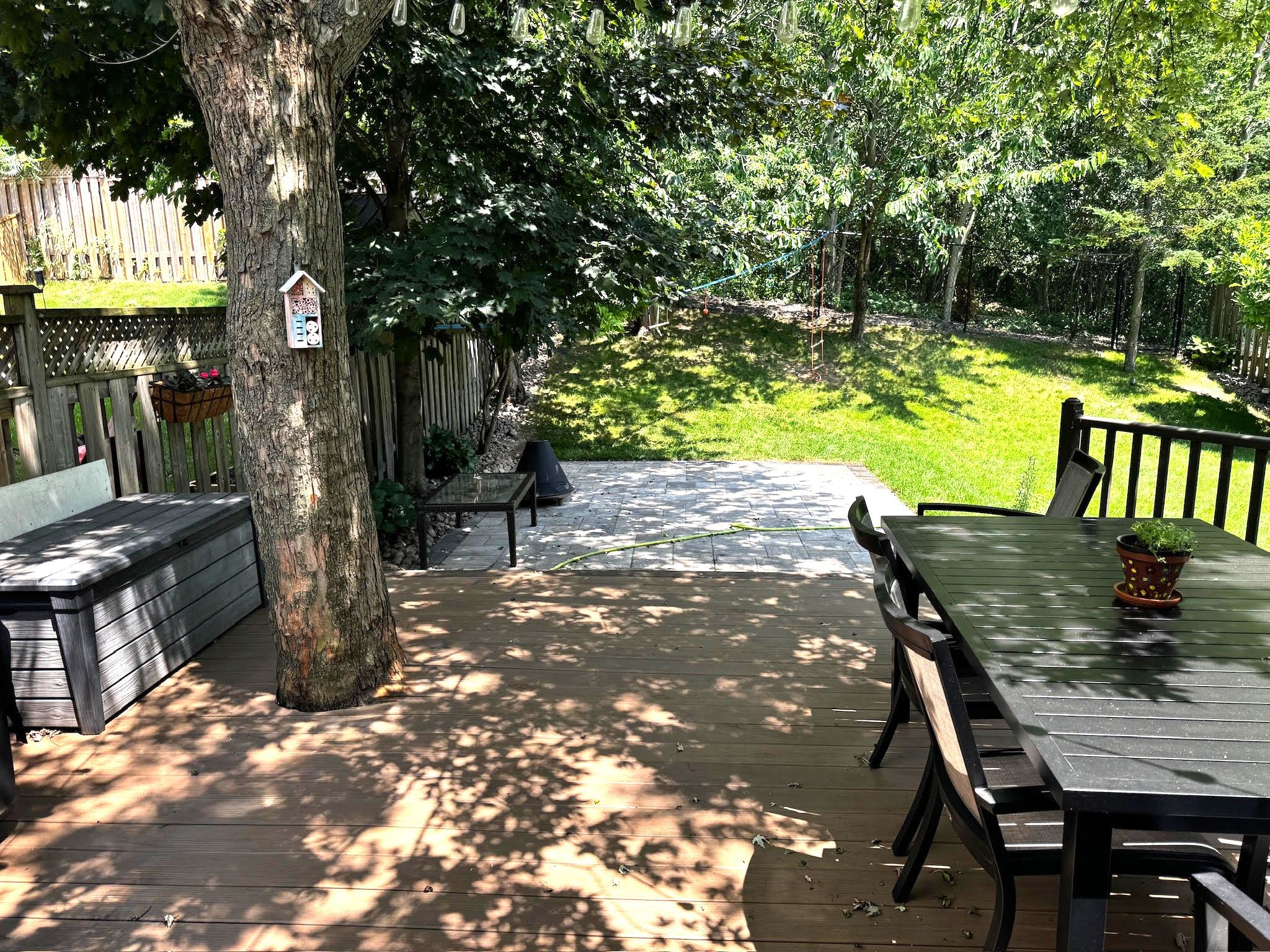 • Beautifully landscaped backyard with a composite deck and stone patio.