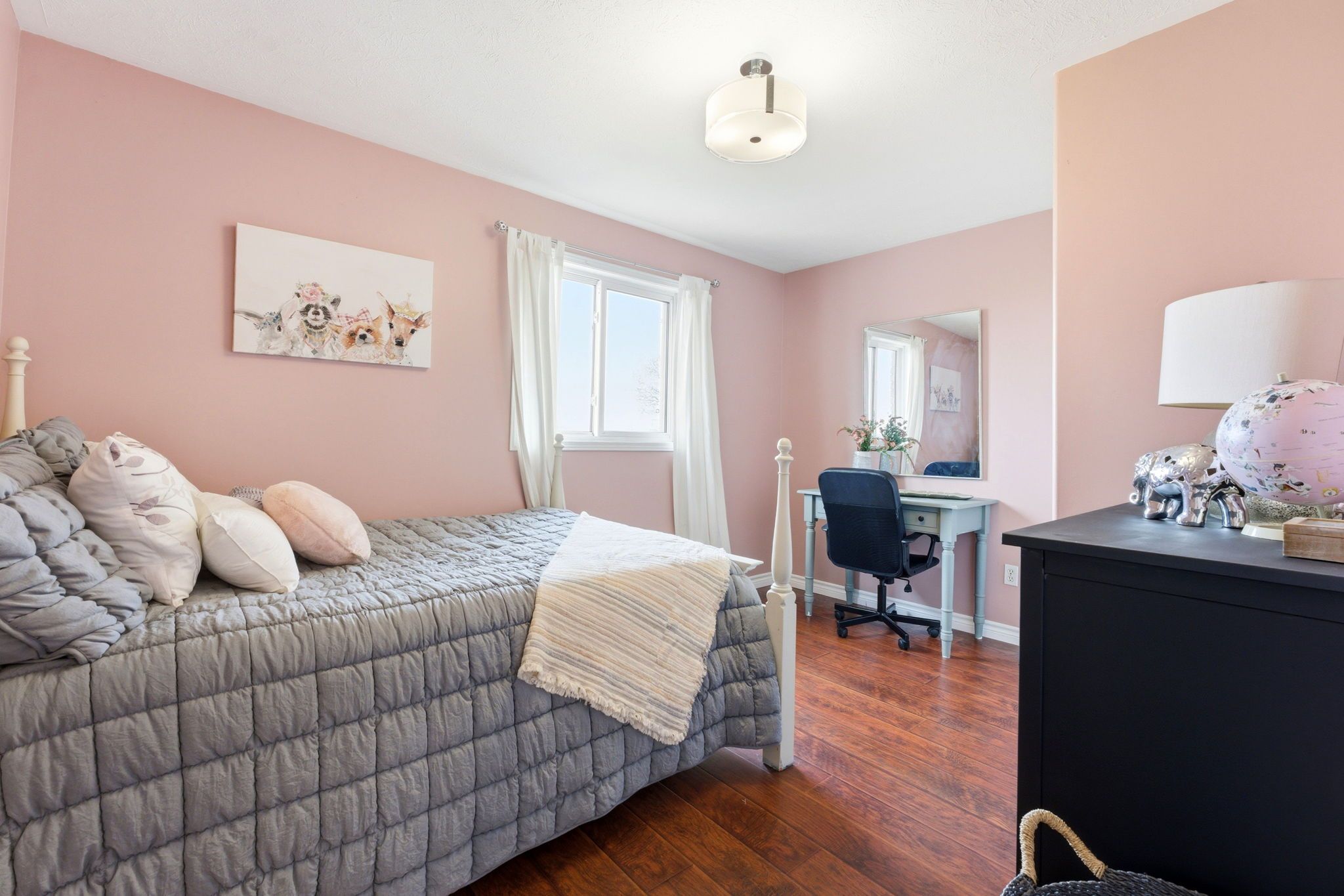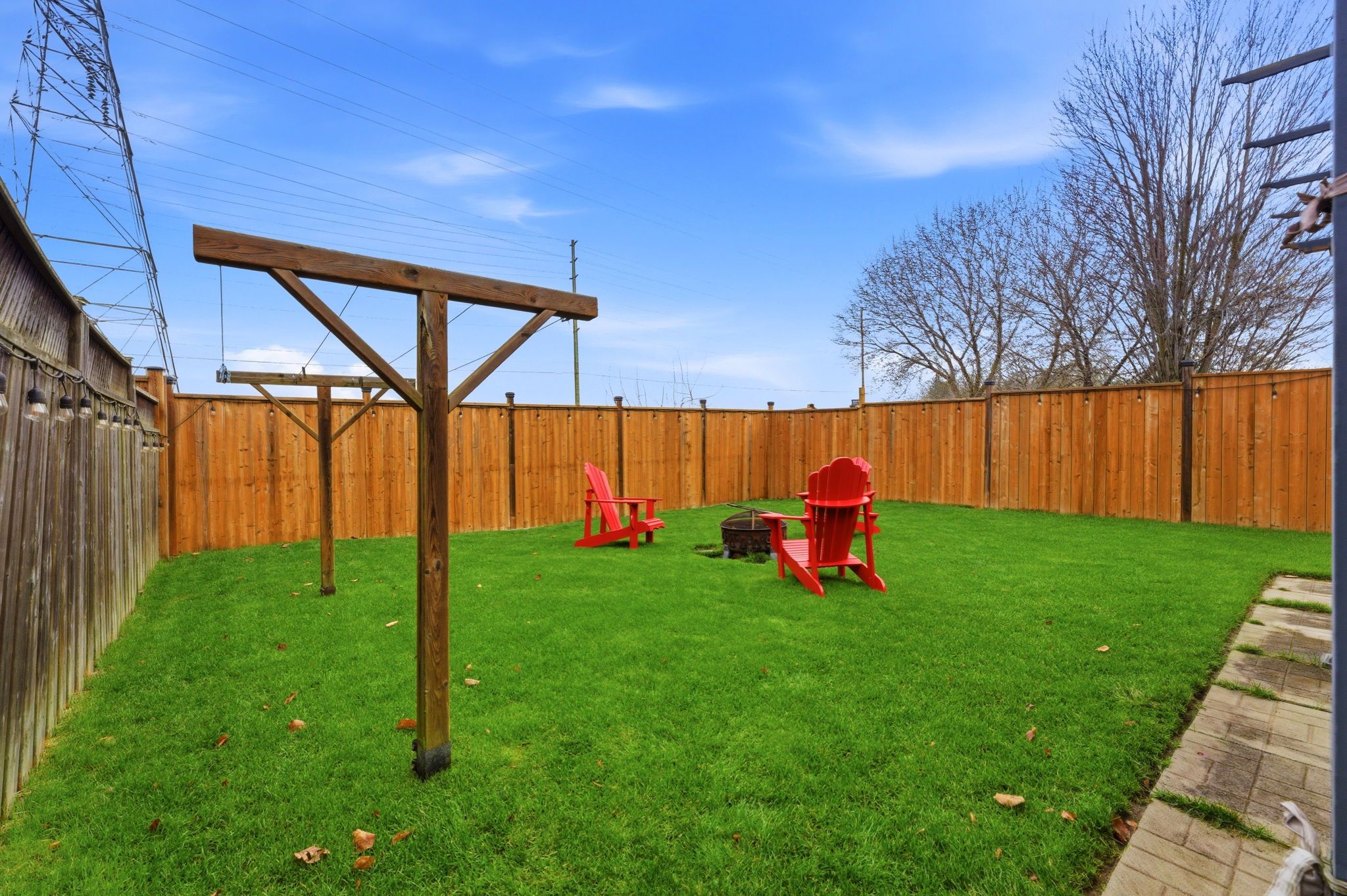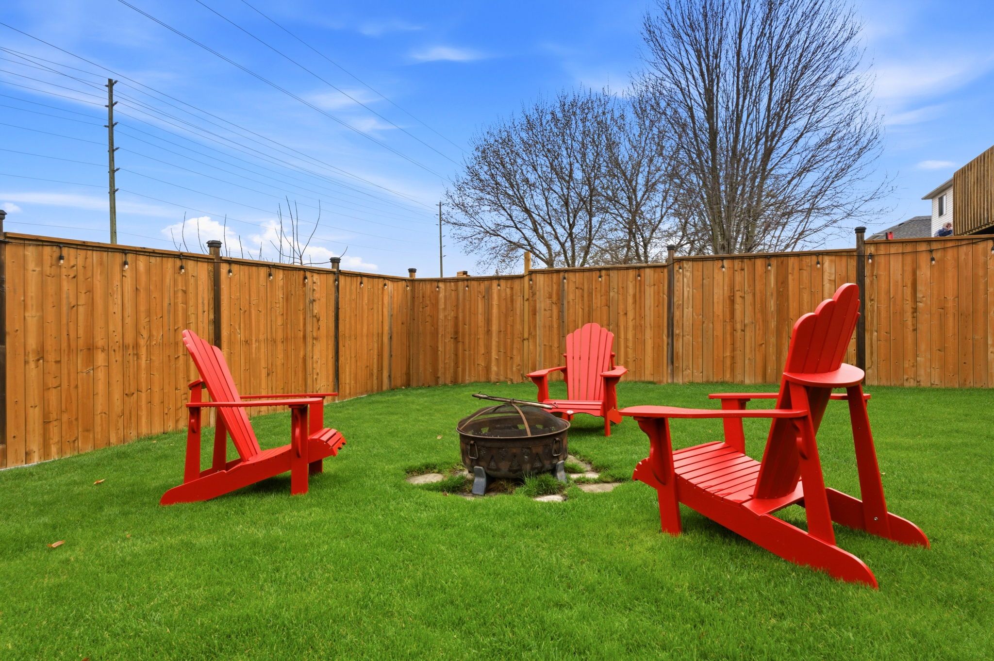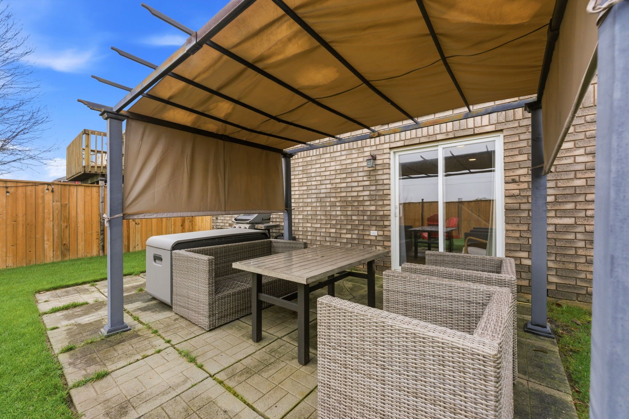 • Fully fenced backyard with lush grass, great for kids and pets.