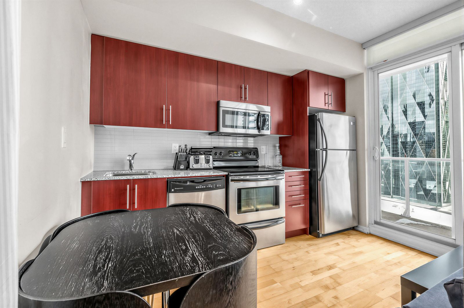 • Stainless steel appliances and hardwood floors for modern living.