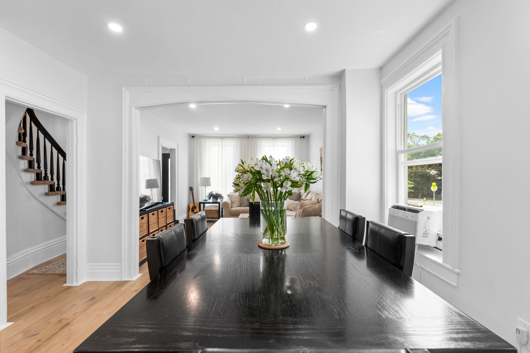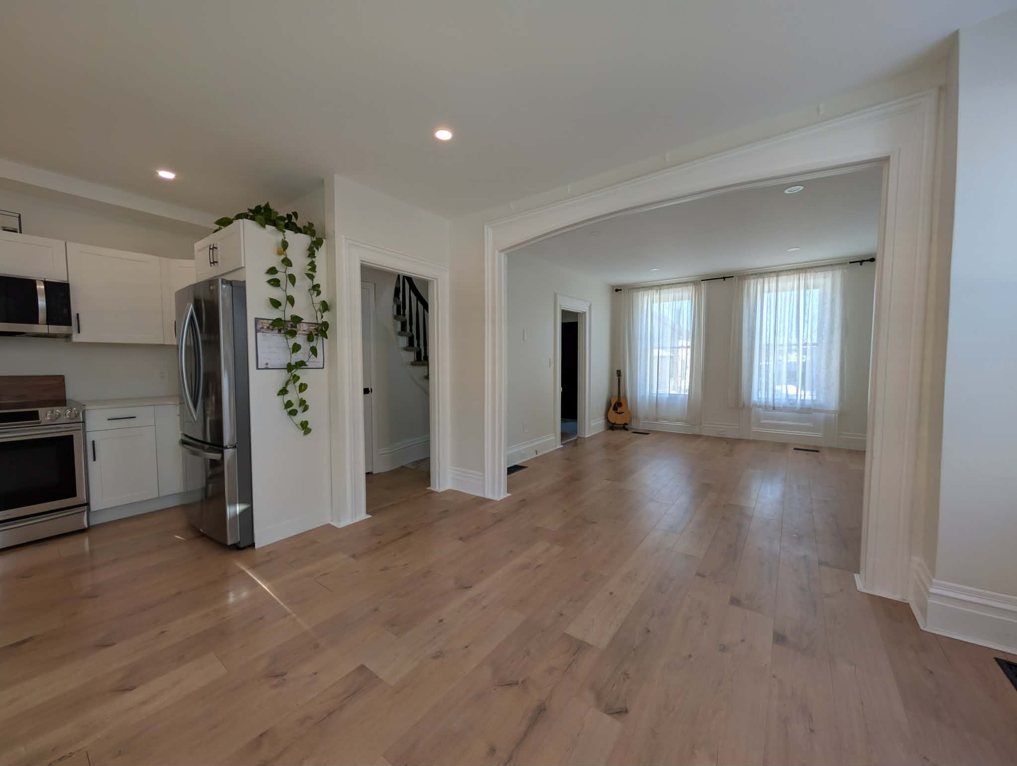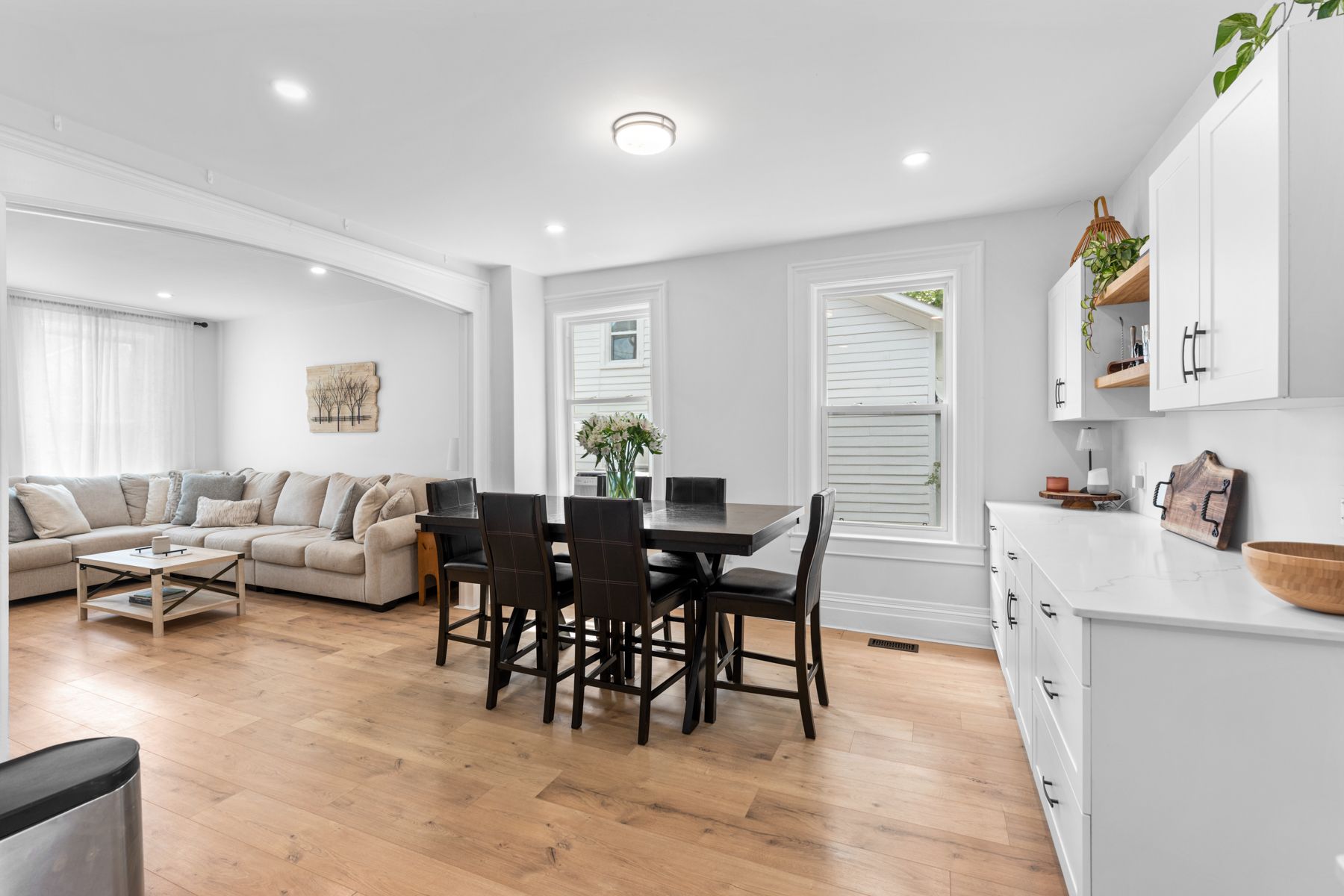 • Bright main floor with open concept kitchen, dining, and living areas.