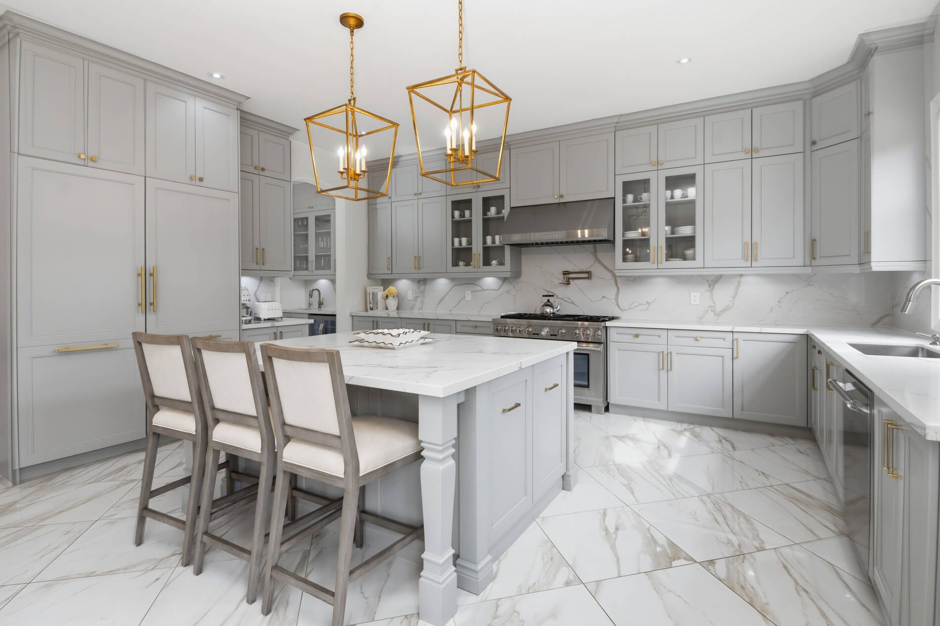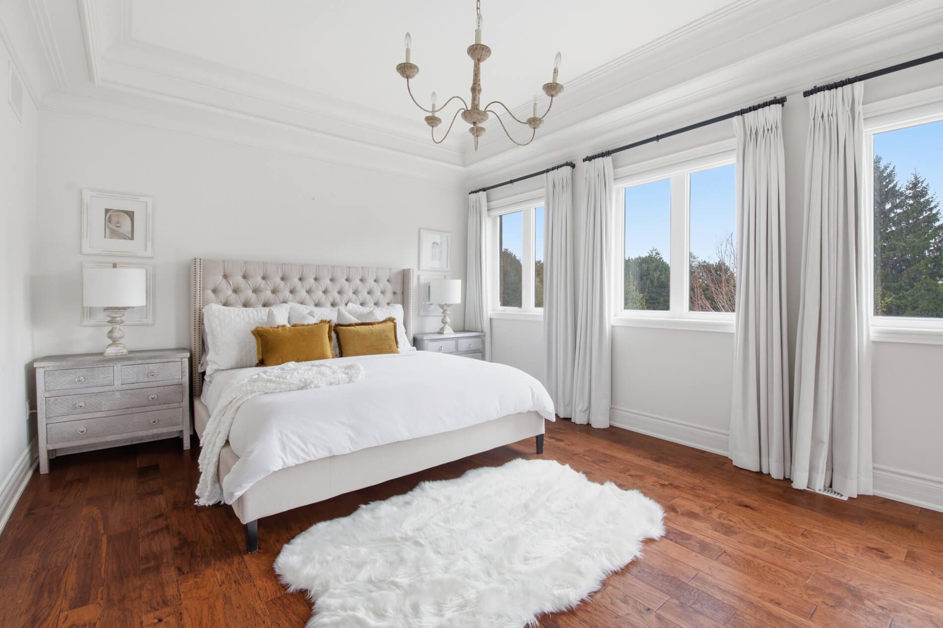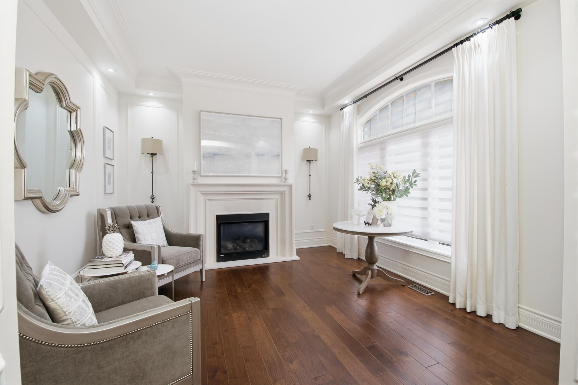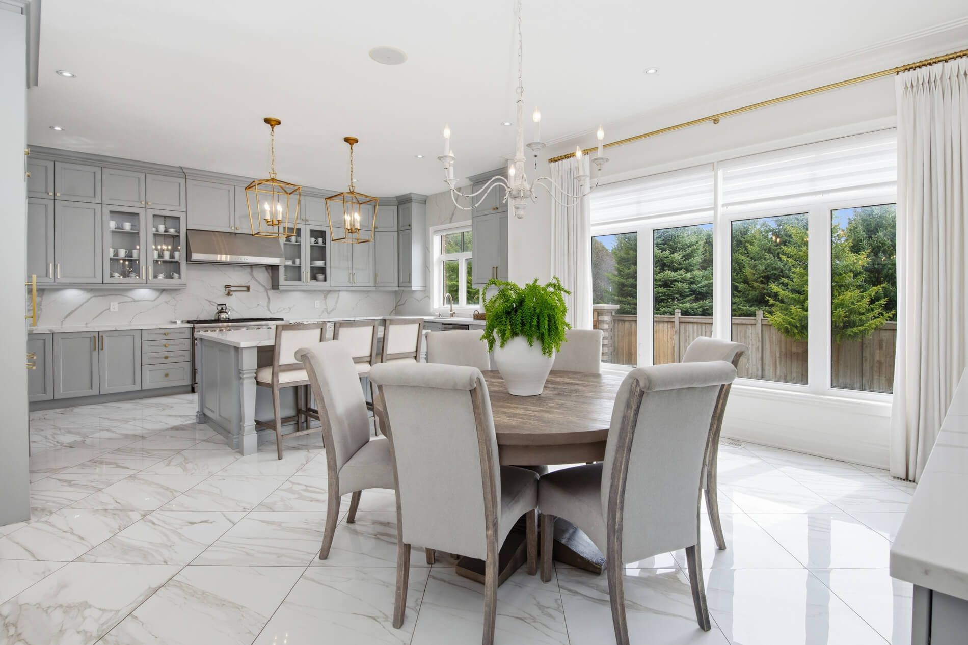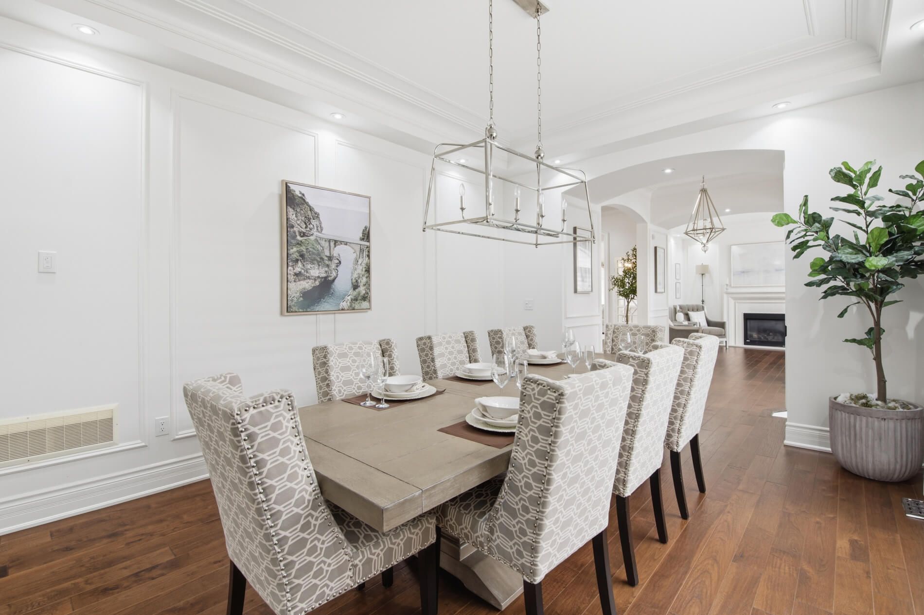 • Elegant design with high-end features like coffered ceilings and gas fireplaces.