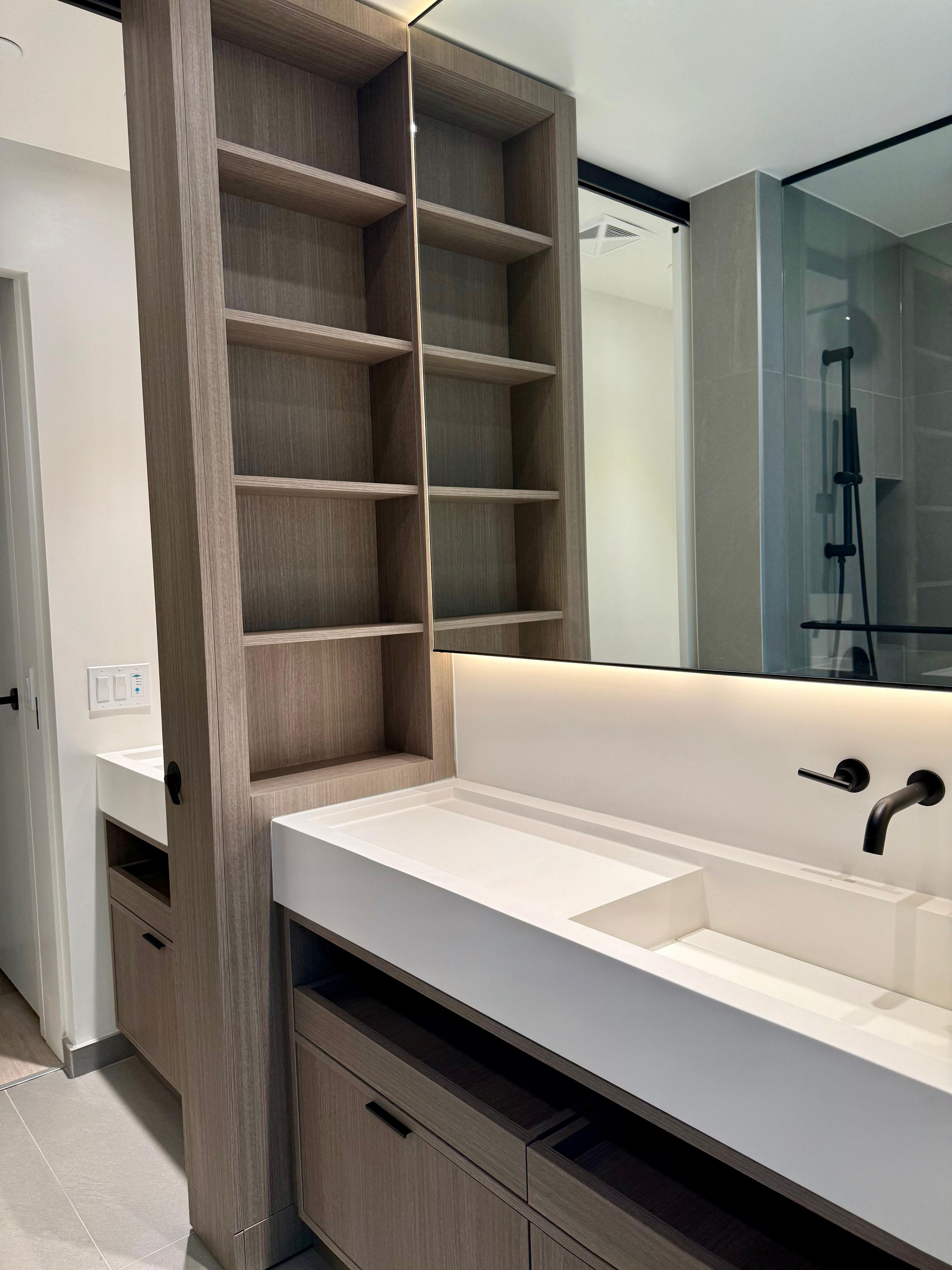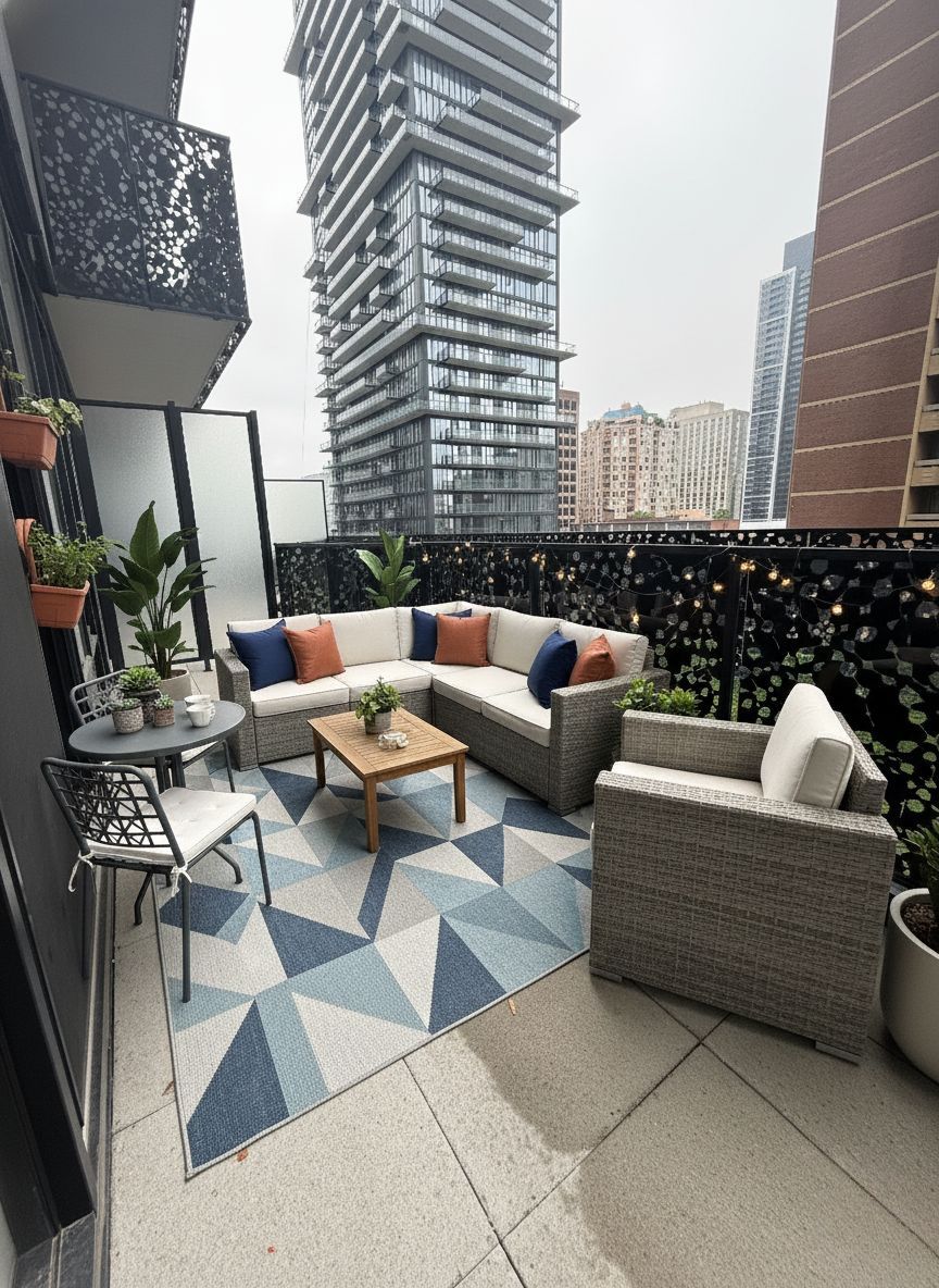 • Open-concept living space with floor-to-ceiling windows and city views.