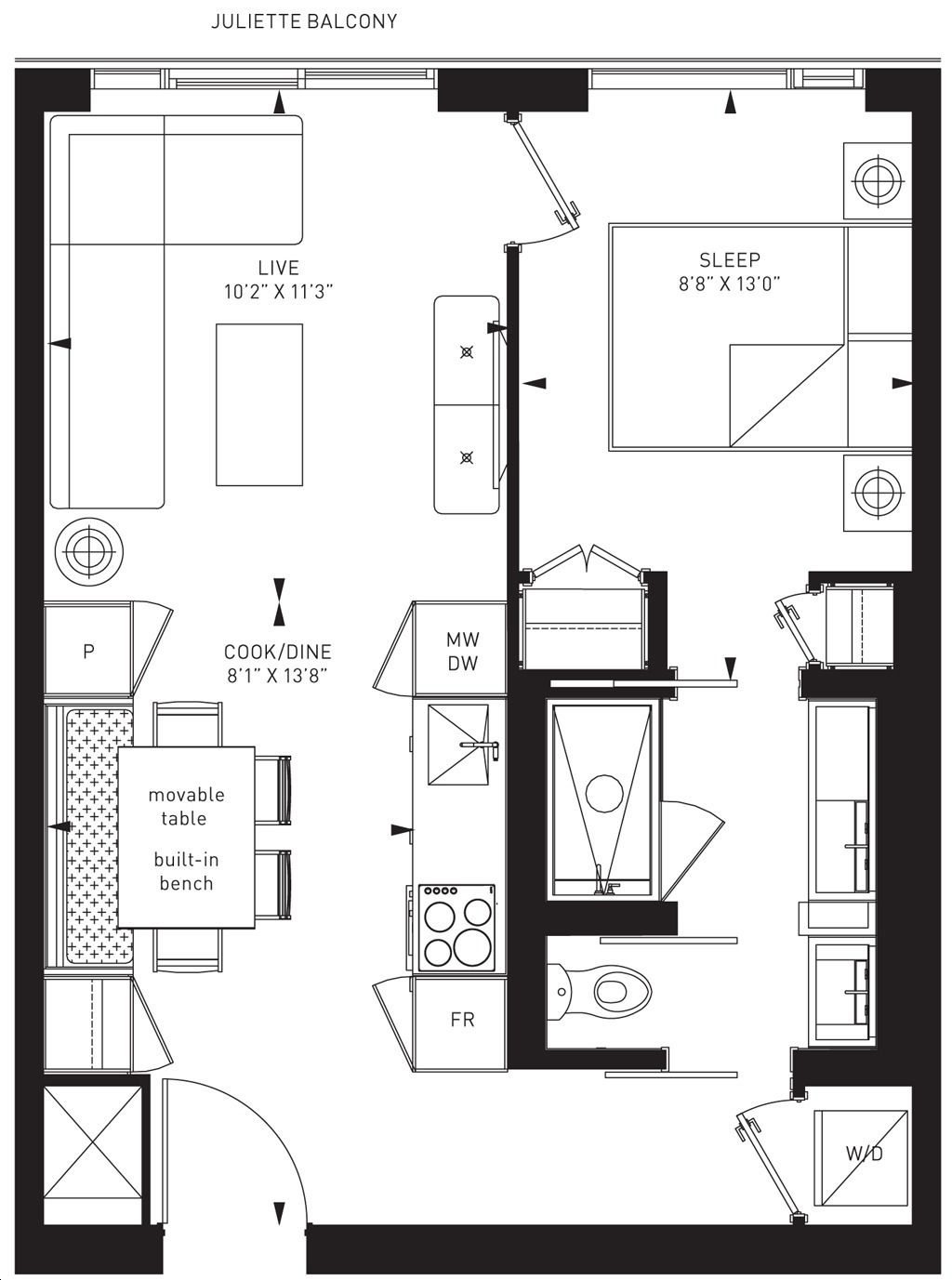 • Spacious 1-bedroom layout with functional semi-ensuite and custom millwork.