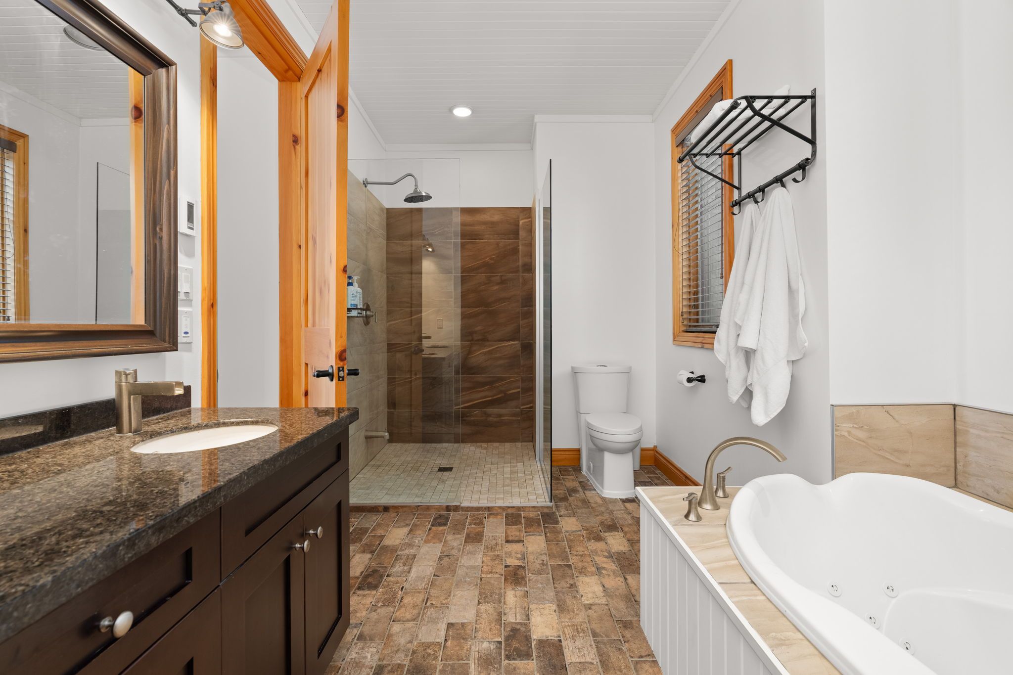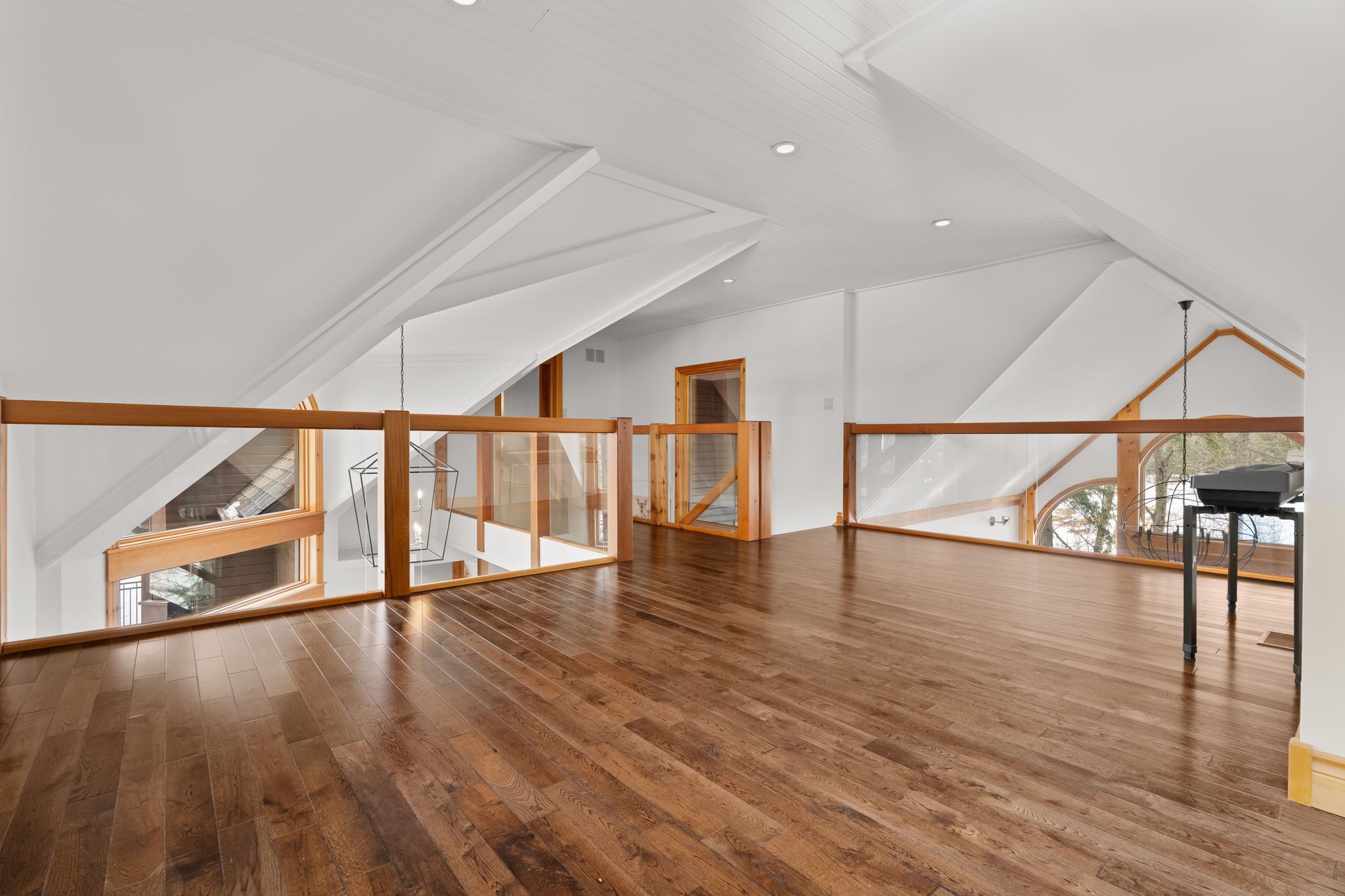 Experience elevated living in this 4 bed, 5 bath custom upscale home, perfectly positioned to capture views of the deerhurst highlands golf course. Set back from the road on a private lot, this impressive 3400sqft residence boasts a modern design and thoughtful functionality, complemented by a warm muskoka feel. The main floor showcases an inviting open-concept layout anchored by an updated kitchen with a convenient new pantry and ample storage throughout. The spacious living area, highlighted by a gas fireplace, provides the perfect setting for gathering with family and friends. Expansive windows flood the interior with natural light and frame the lush fairway backdrop, while the screened muskoka room extends the living space. The primary bedroom is conveniently located on the main level, featuring a luxurious 5-piece ensuite and walkout access to the tranquil outdoors. On the second level, two additional bedrooms offer privacy and comfort, each thoughtfully designed with a 3-piece ensuite bathroom and a multipurpose loft space that is ideal as an office, tv room, or games room. The walkout lower level expands your living space with a family room featuring a second gas fireplace, direct access to the hot tub and yard, an additional bedroom and full bath, plus in-floor heating available (not currently connected). Additional highlights include municipal water and sewer, natural gas forced-air heating, a wired generator, a double-car attached garage, full outdoor irrigation system and a fenced front yard. Live just minutes from skiing, golf, and lake access, and enjoy a practical, well-designed home in a sought-after muskoka setting.