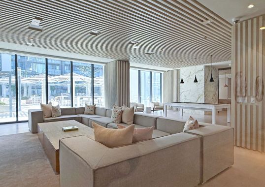• Amenities include fitness center, yoga studio, indoor pool, and co-working spaces.