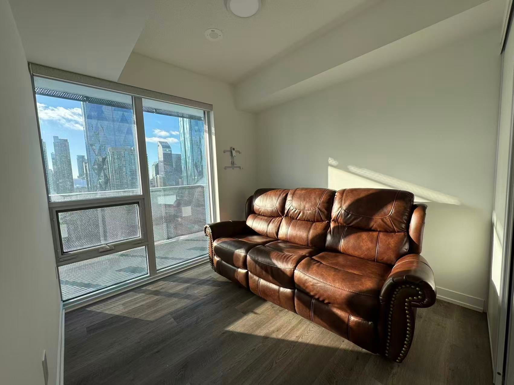 • Bright interior with large windows enhancing city living experience.