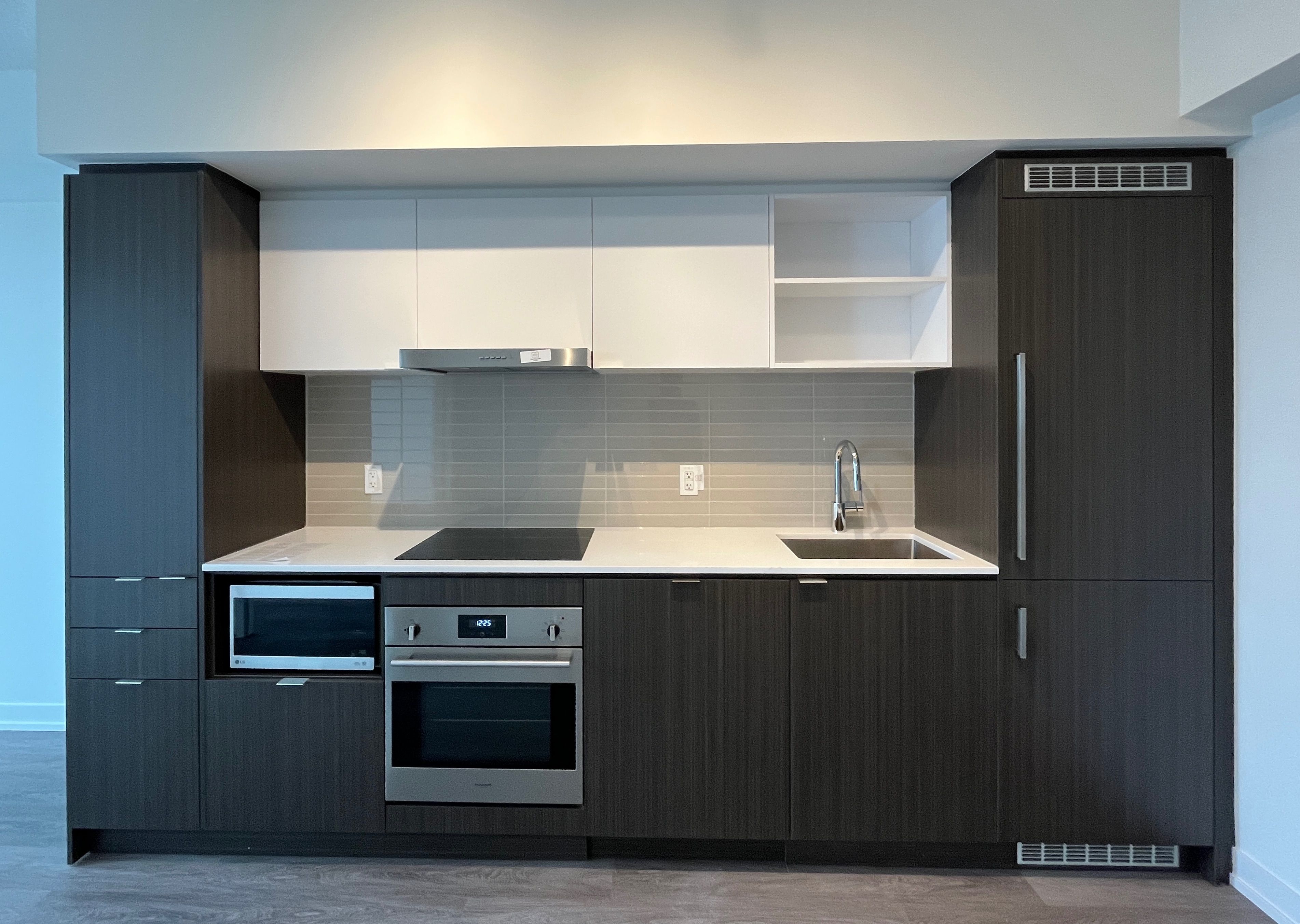 • Modern kitchen equipped with stainless steel appliances and ample space.