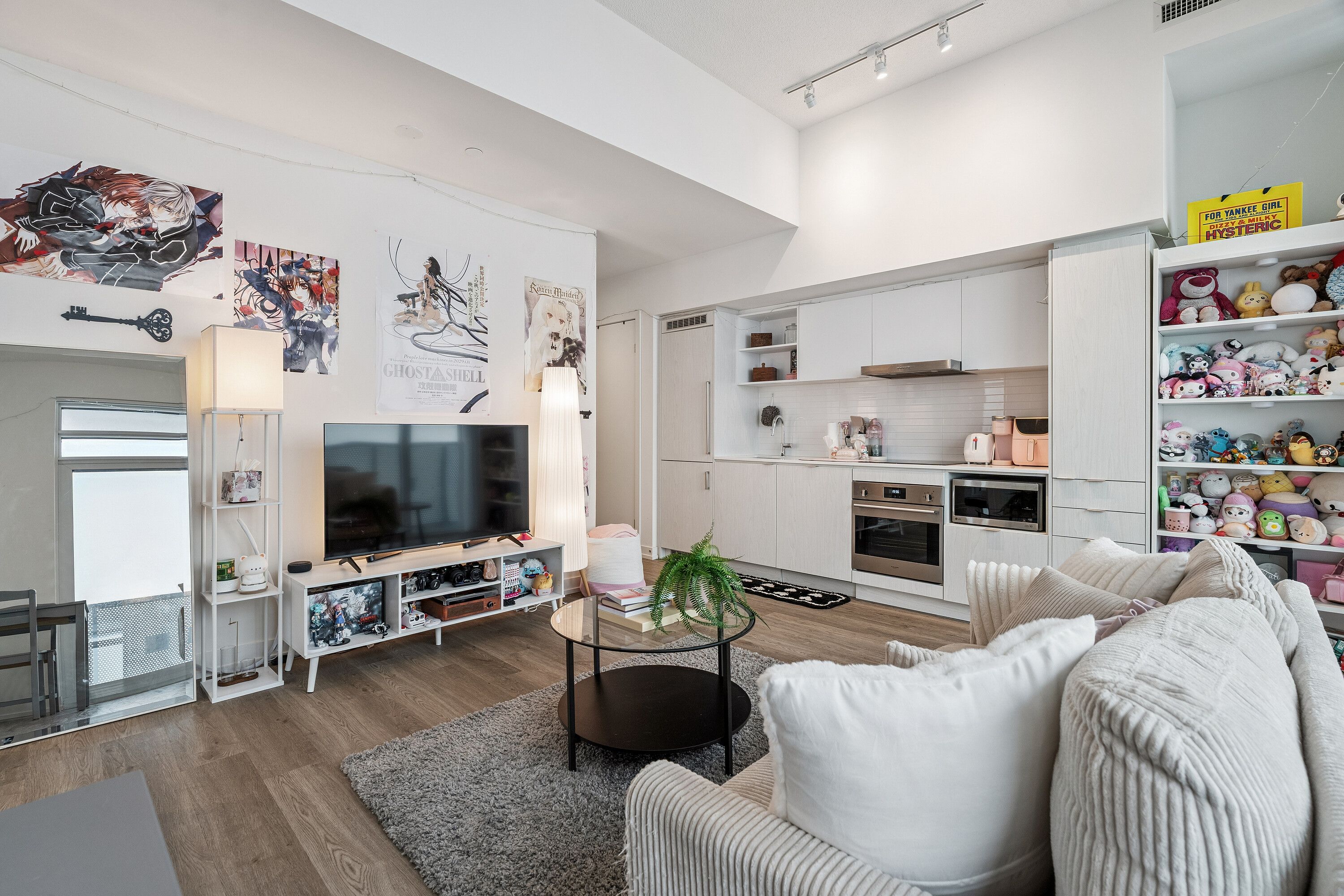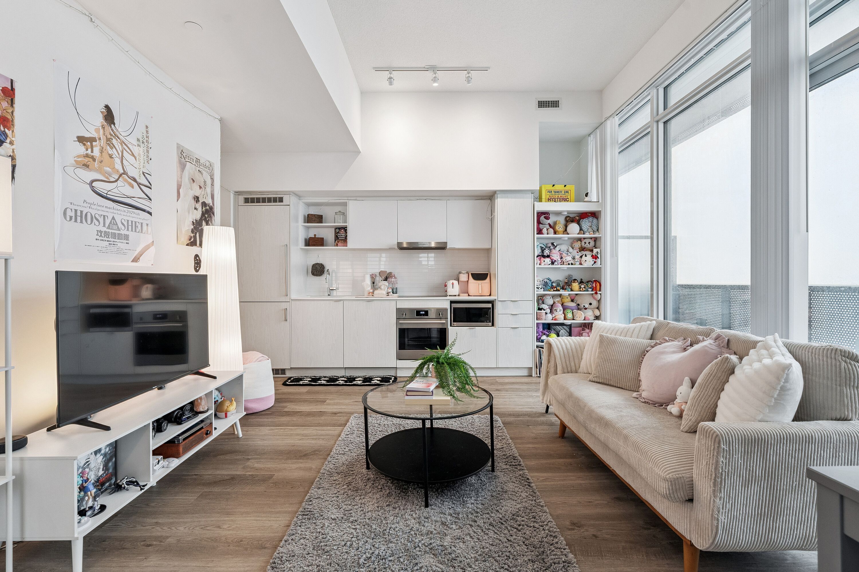 • Spacious open-concept layout with 9' ceilings and floor-to-ceiling windows.