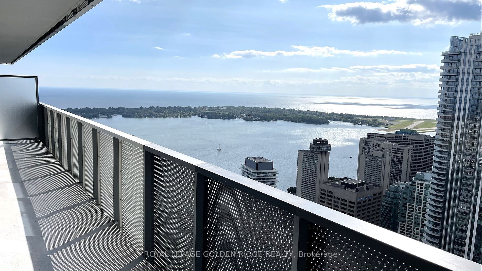 • Expansive balcony offers unobstructed views of the city and lake.