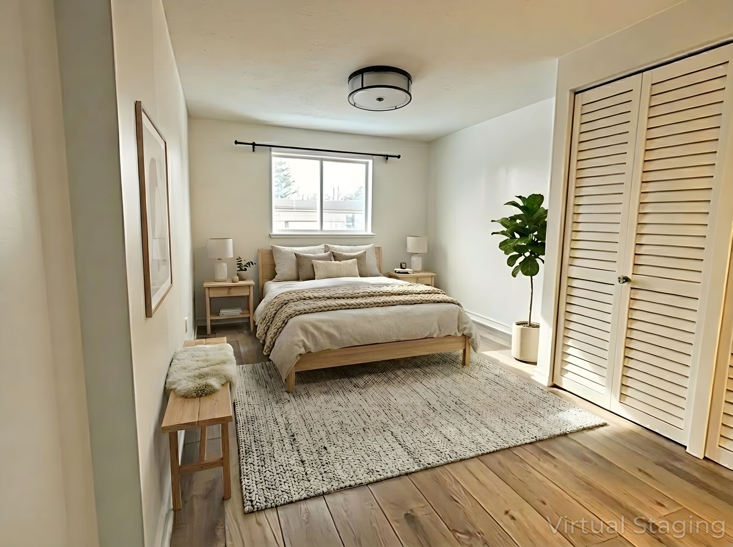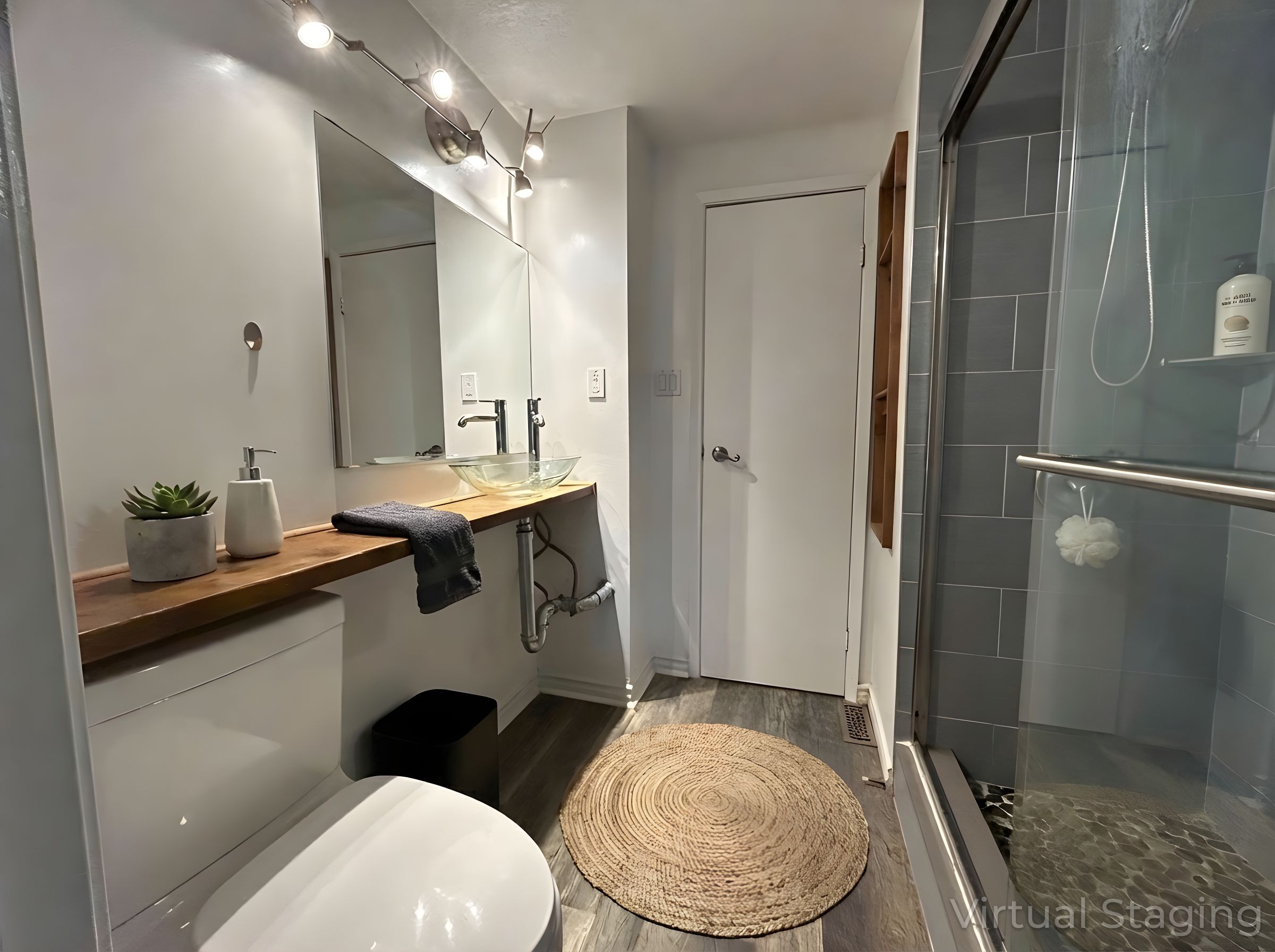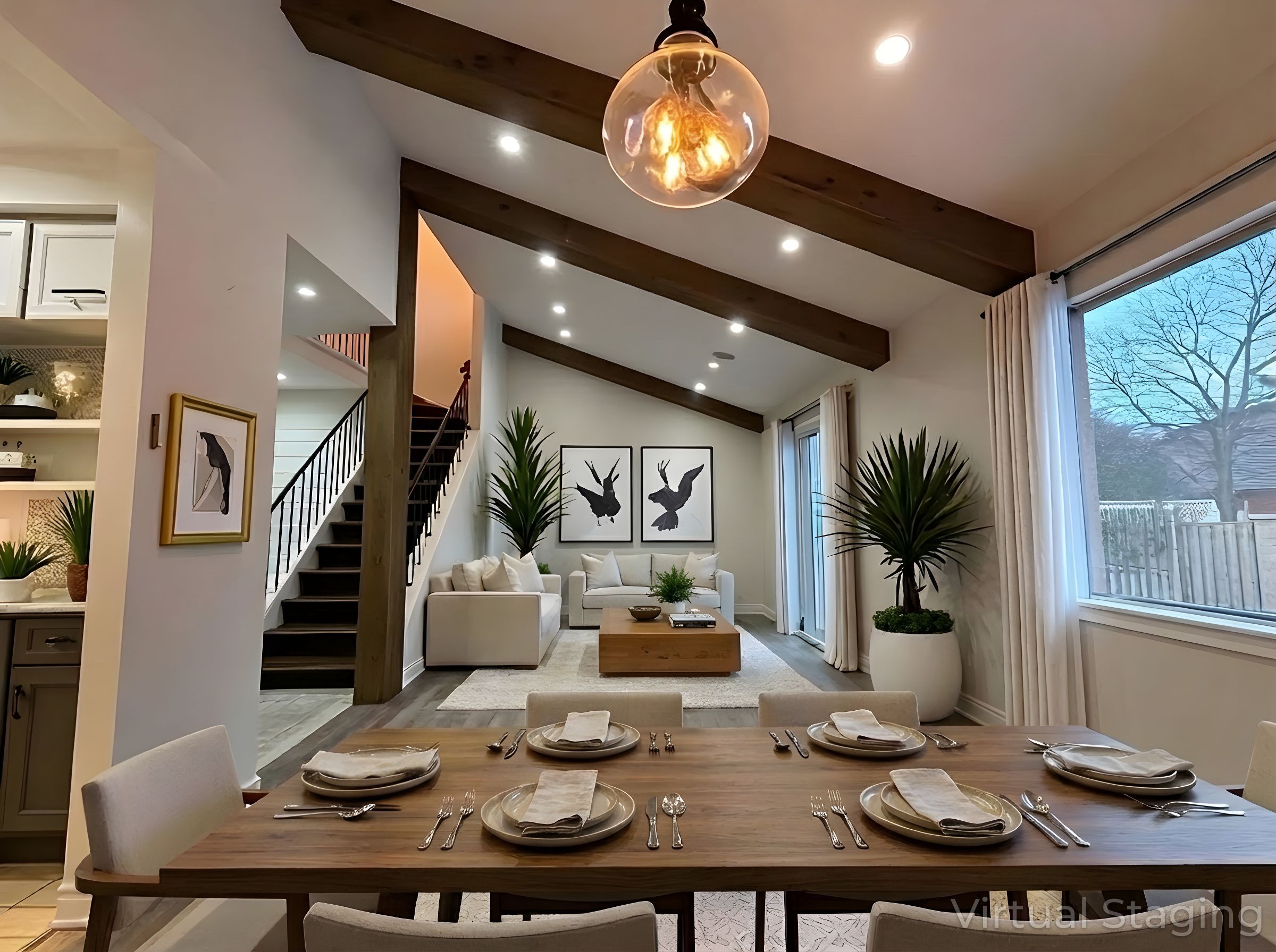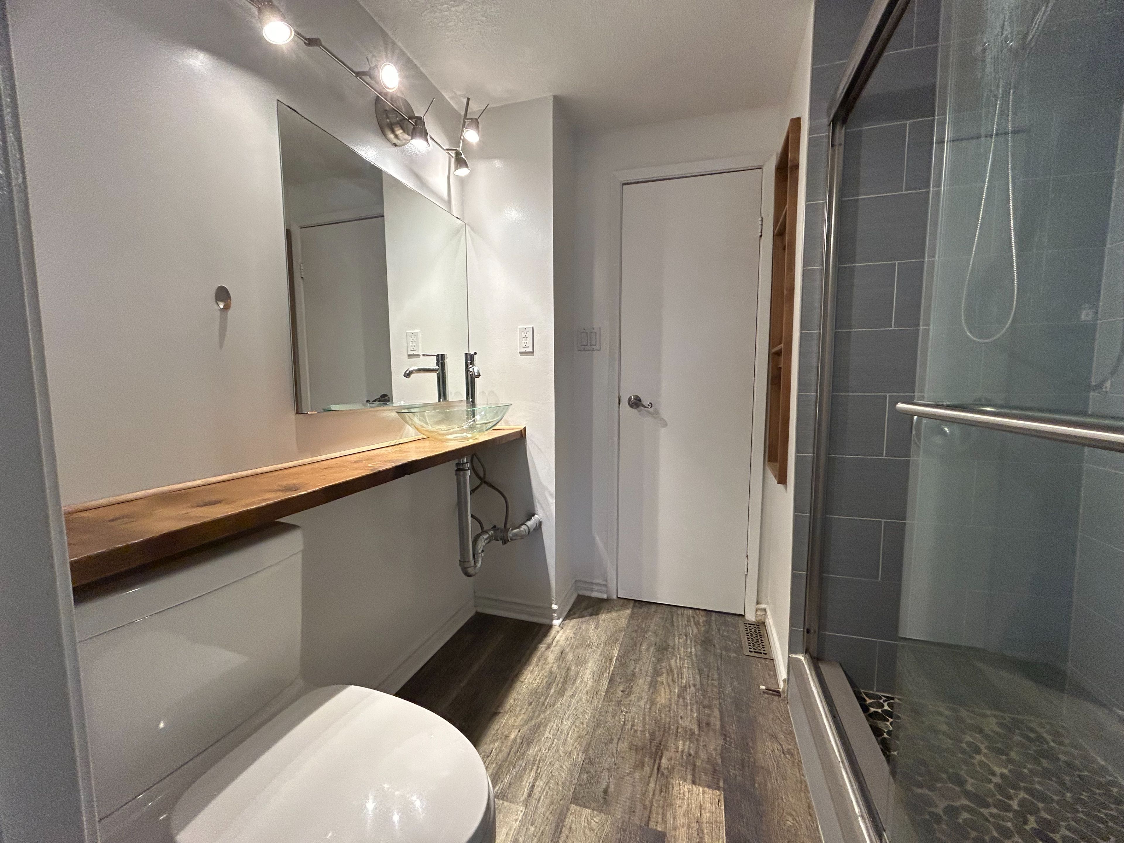 • Renovated home with modern laminate flooring and vaulted ceilings.