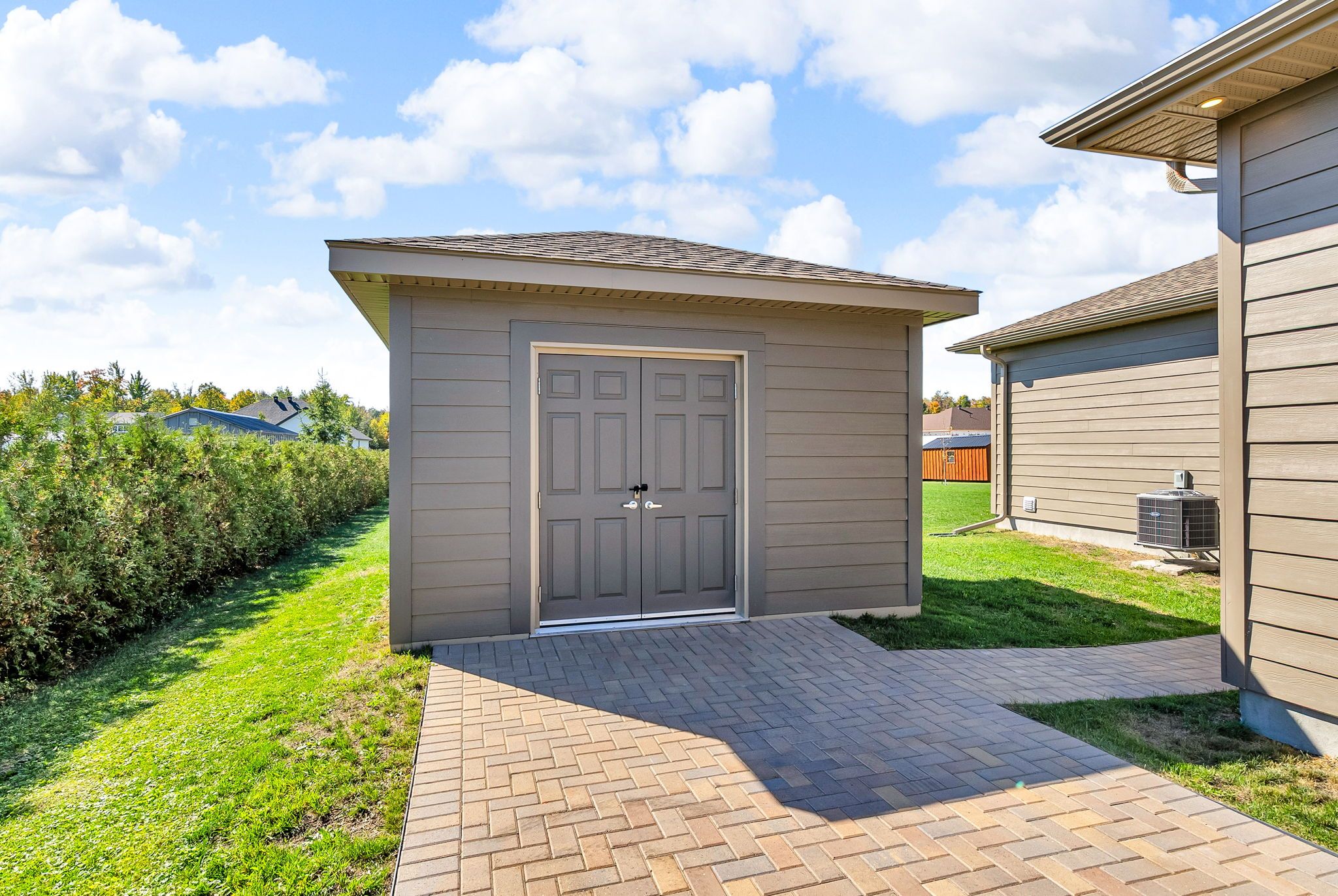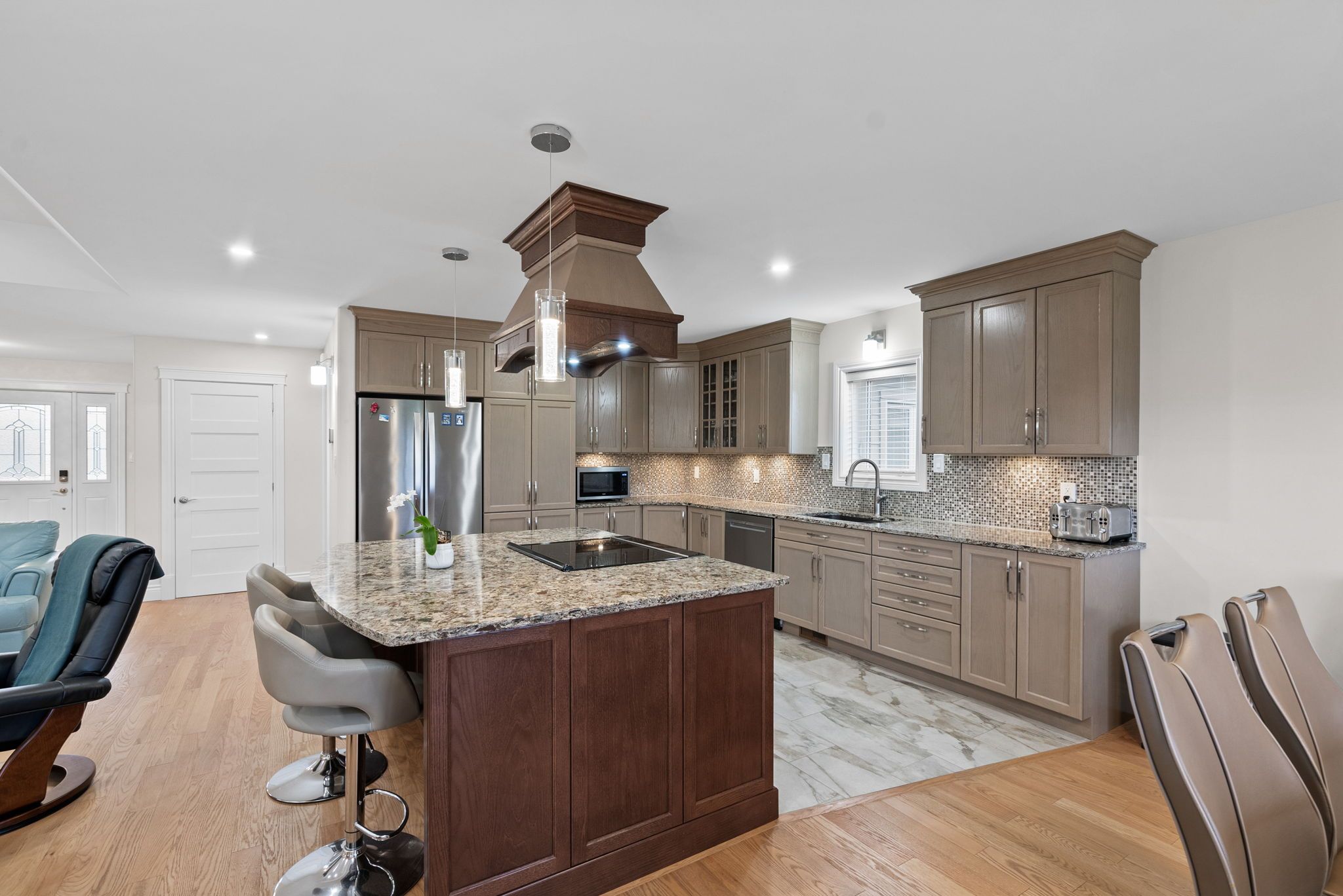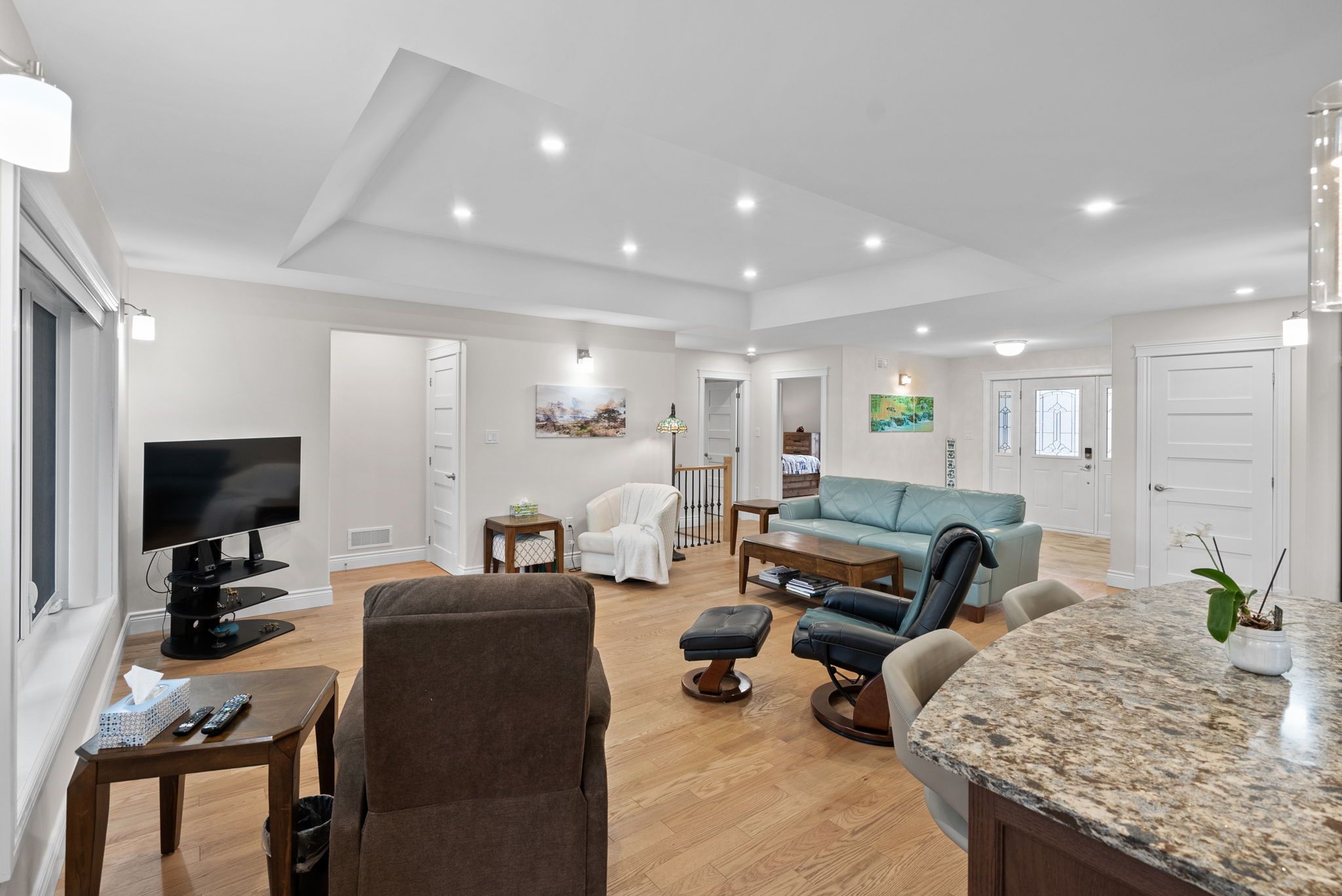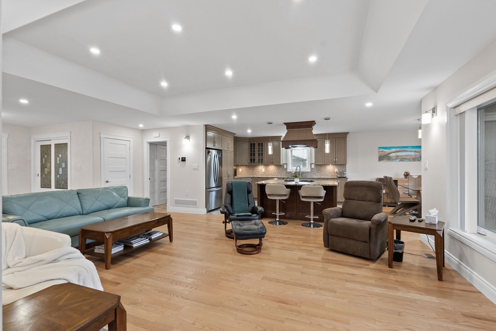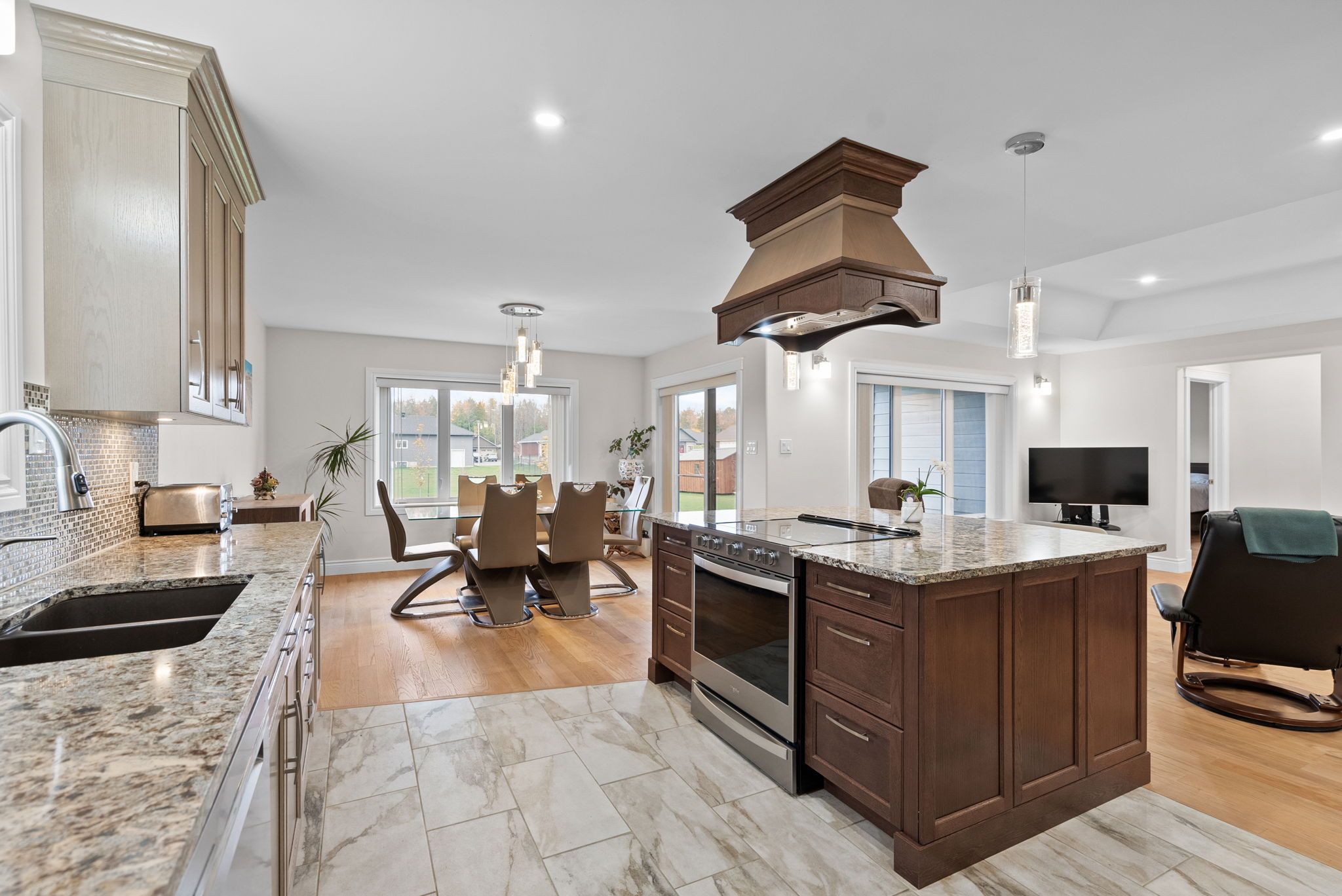 Stunning executive style bungalow. This custom-built 2+2 bedroom bungalow seamlessly blends luxury and solid construction in a prime, desirable location. It features a roomy tiled entrance a spacious open-concept layout with high-end finishes like hardwood and tile flooring, inviting living room with tray ceiling, a chef's dream kitchen with breakfast island, quartz counters and stainless appliances, and a primary suite with a spa-like ensuite and a walk in closet. A generous size 2nd bedroom. 3pc bathroom with tiled shower and storage vanity with plenty of storage. The fully finished basement with in law suite potential provides additional space ideal for a multi generational living arrangement. It boasts a rec room, 3rd bedroom with 3pc ensuite and walk in closet with built in storage, 4th bedroom , 4pc bathroom, den, area for possible bar/kitchenette and utility room. While the exterior offers a covered trex transcends resin deck with privacy panels, expansive yard and conveniences like a 2-car garage (570 sq ft) with l shaped workshop/man cave (270sq ft), interlocking driveway leading to the shed to add to the overall appeal and functionality. Other notables: james hardie cement board siding, icf from footings to underside roof trusses, main floor laundry, garden shed, external gas line for bbq, the front ditch has been filled in with engineered approved permit (work completed by david brown construction). The parks of the st. Lawrence and other amenities nearby. *some photos have been virtually staged. *as per seller direction allow 24 hour irrevocable on offers.