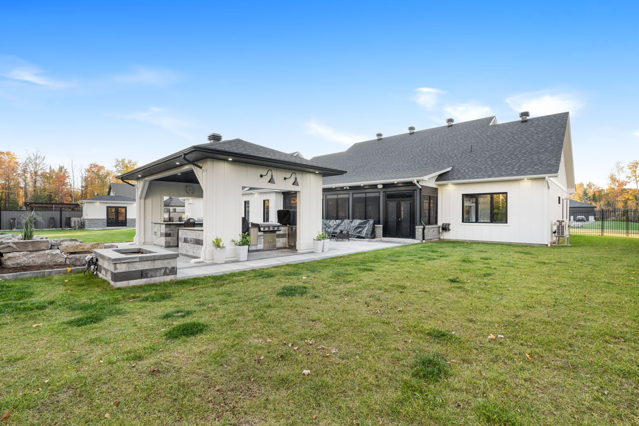 A modern farmhouse masterpiece domaine la seigneurie, lorignalwelcome to your forever home where modern luxury meets farmhouse charm. Nestled in the prestigious domaine la seigneurie, this residence was designed to impress from every angle, with top-of-the-line finishes and warm inviting spaces that will make you fall in love the moment you step inside. Strategically located only 1 hour from montreal, ottawa, and mont-tremblant, youll enjoy the best of all worlds peaceful countryside living with quick access to the city, skiing, dining, and entertainment. Property features:style: modern farmhouse bungalow with loftgarage: oversized 3-car garage with wood-style doorsbedrooms: 3+1 spacious bedroomsbathrooms: 3 full bathrooms + 1 powder roomliving area: approx. 3,700 sq. Ft. Of refined comfortlot: expansive landscaped grounds in an exclusive communityinterior highlights:a grand open-concept living area with soaring cathedral ceilings, wood beams, and a statement brick fireplace perfect for cozy evenings or elegant entertaining. A dream chefs kitchen featuring premium appliances, a massive island, and custom cabinetry built to host unforgettable gatherings. Spa-inspired bathrooms with freestanding tubs, rain showers, and double vanities designed for pure relaxation. A luxurious primary suite with walk-in closet and ensuite that feels like your private retreat. Practicality meets beauty with a mudroom and laundry room complete with built-ins and abundant storage. Exterior & lifestyle:a covered outdoor kitchen & entertainment space with granite counters and built-in appliances your own backyard paradise for family barbecues and evenings under the stars. Charming front porch perfect for morning coffee or evening sunsets. Large paved driveway with plenty of parking for guests. A serene setting in domaine la seigneurie, combining privacy, elegance, and proximity to all amenitie